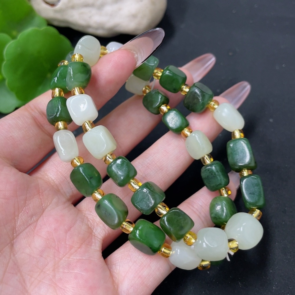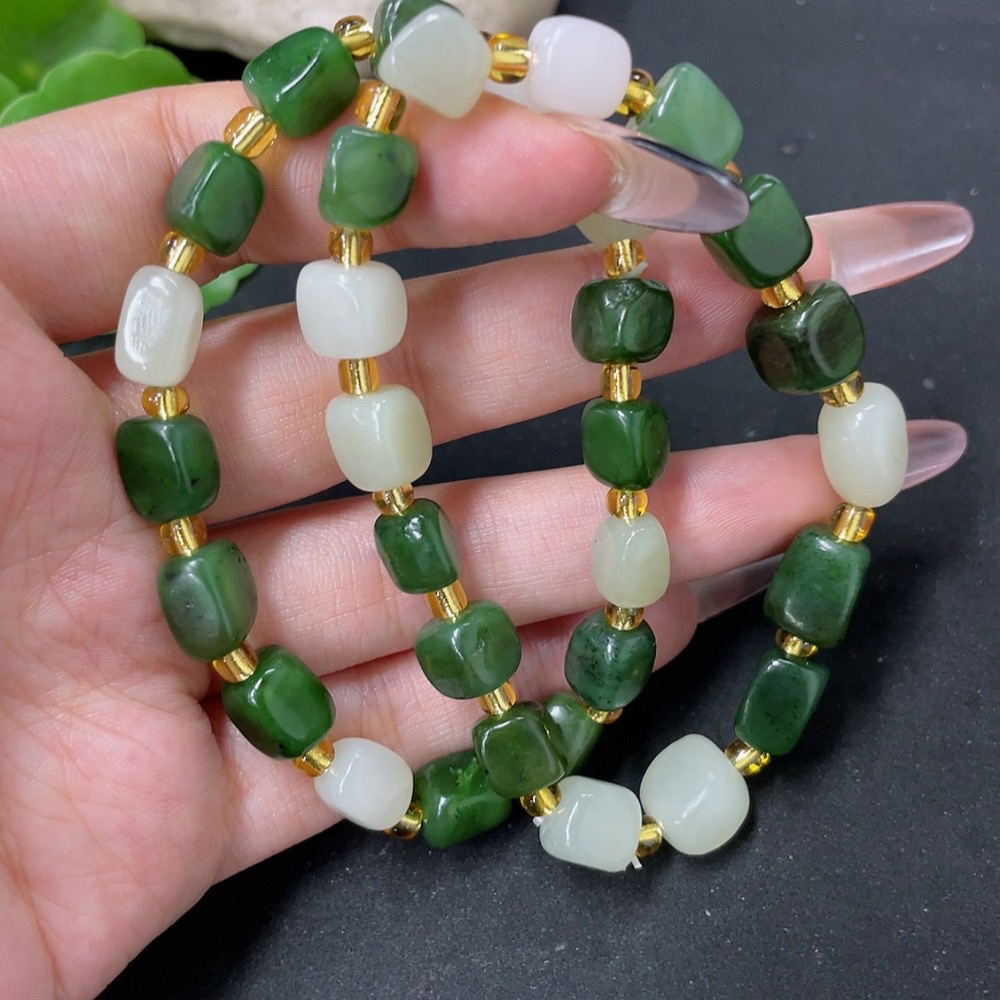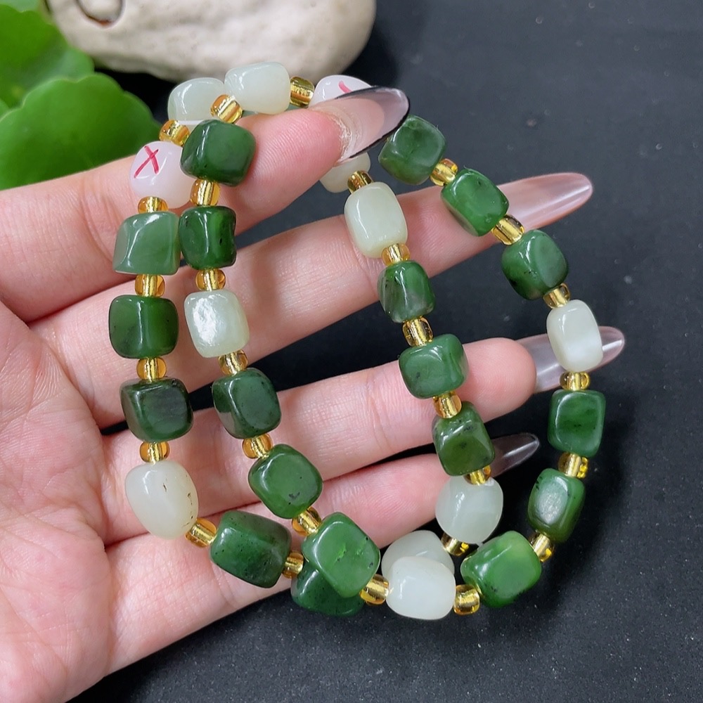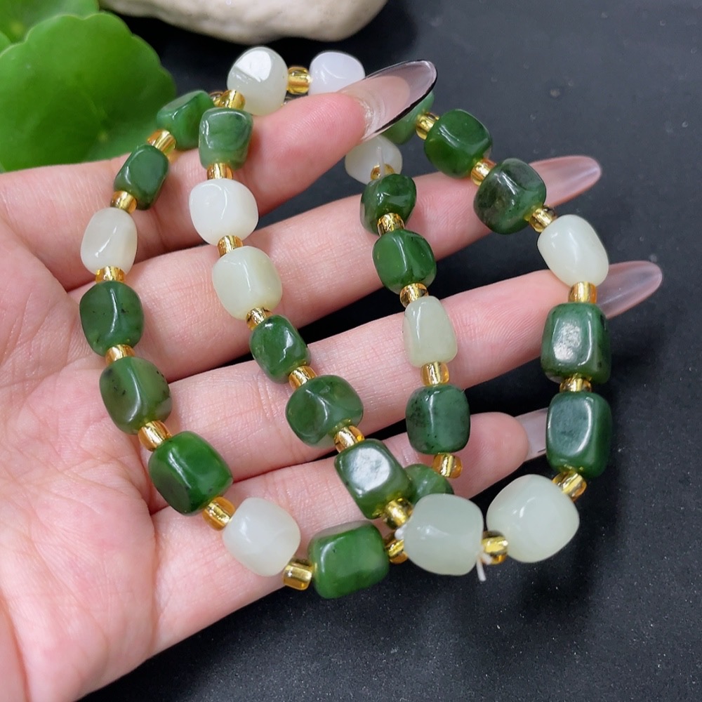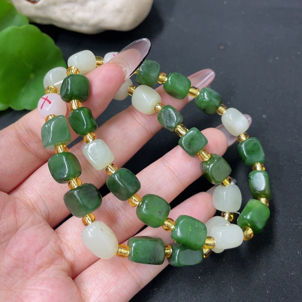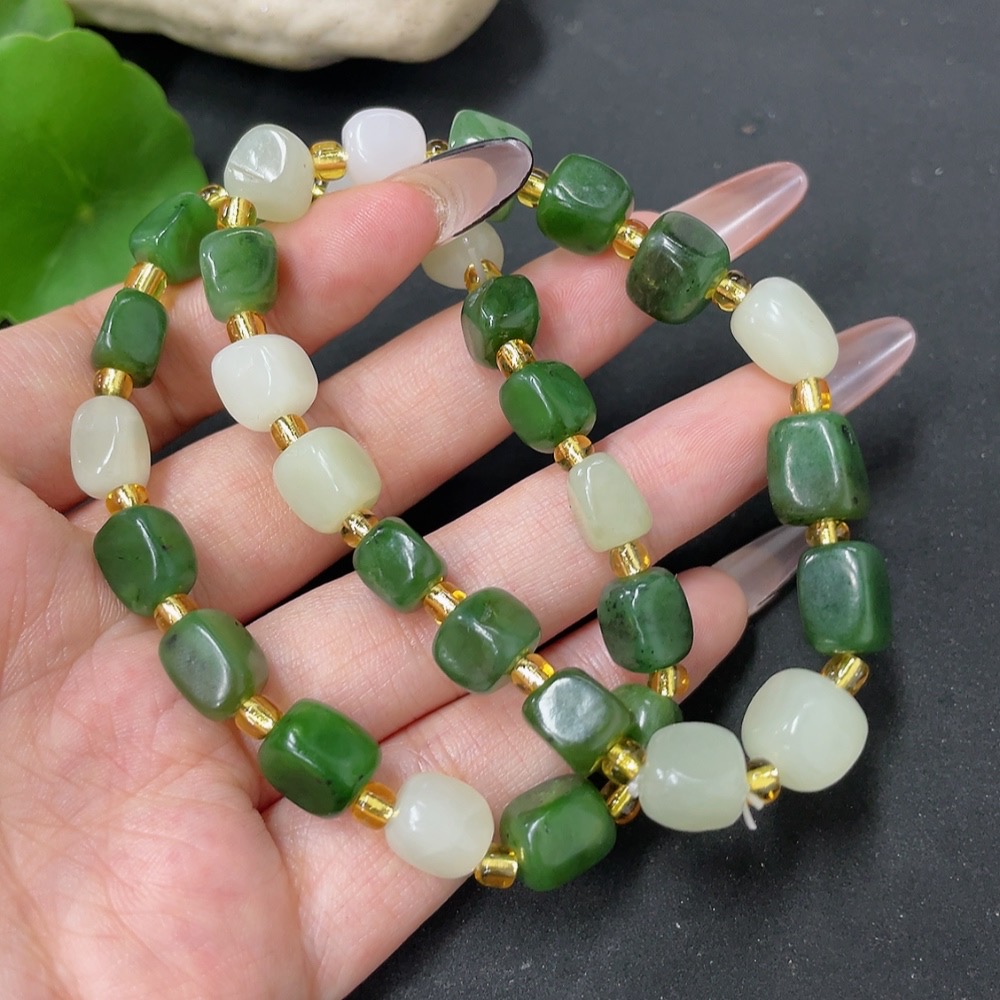Hetian Jade Bracelet with Non-Hetian Jade Beads, Total Weight Approx. 42.3g
