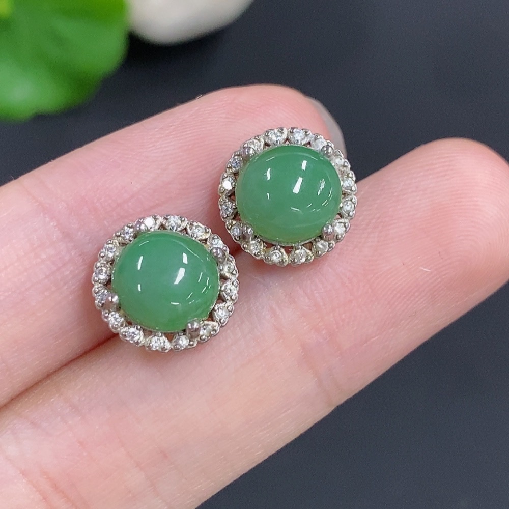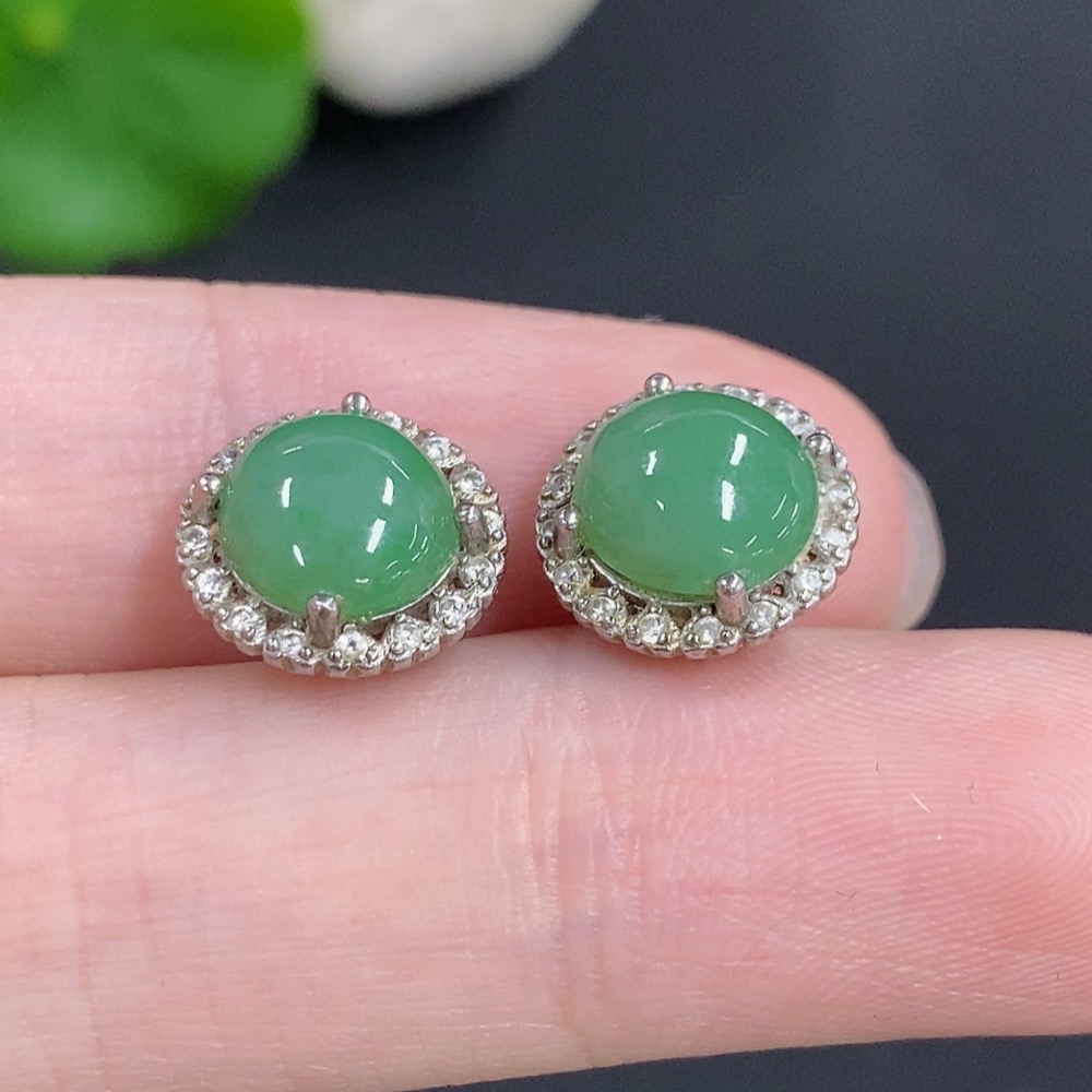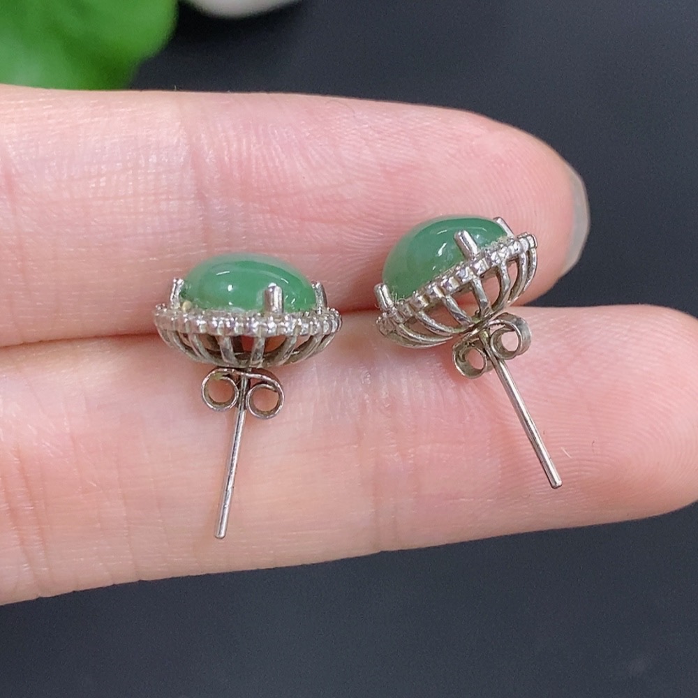 Jadeite Cabochon Stud Earrings Non-Gold Total Weight Approx. 2.4g