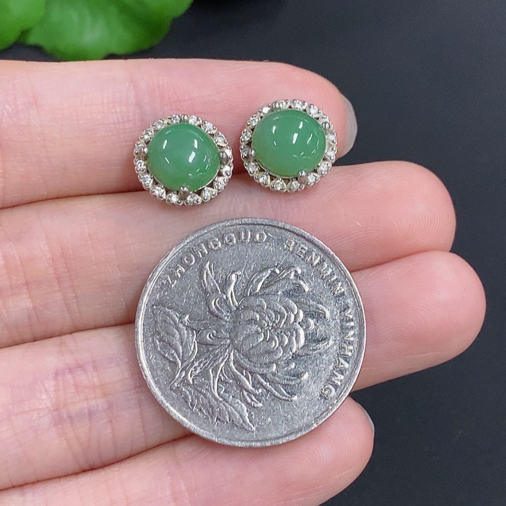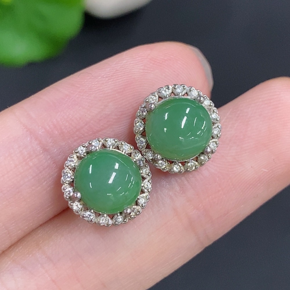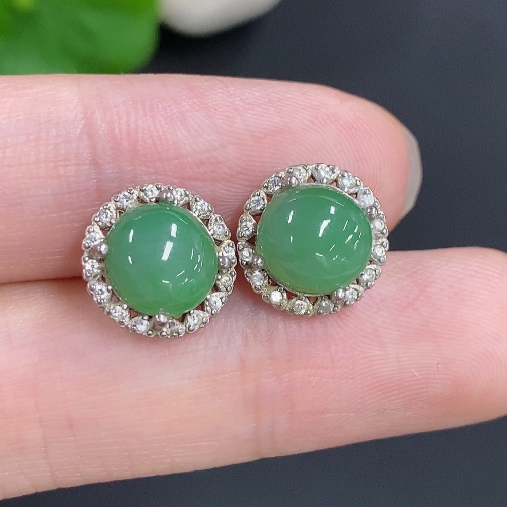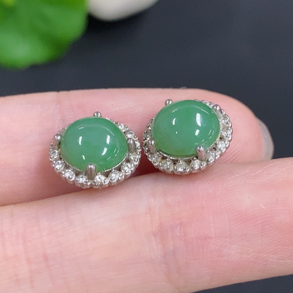Jadeite Cabochon Stud Earrings Non-Gold Total Weight Approx. 2.4g