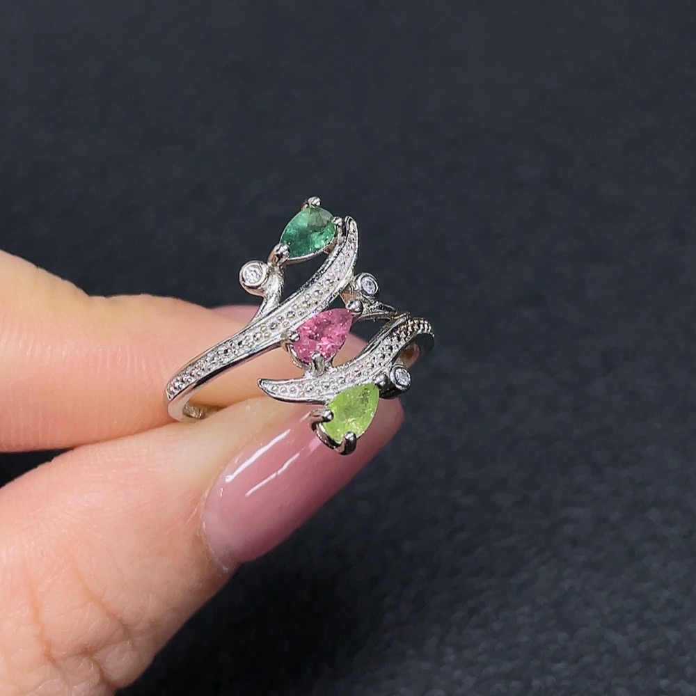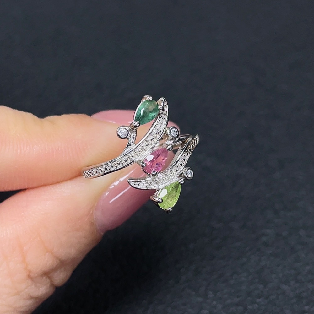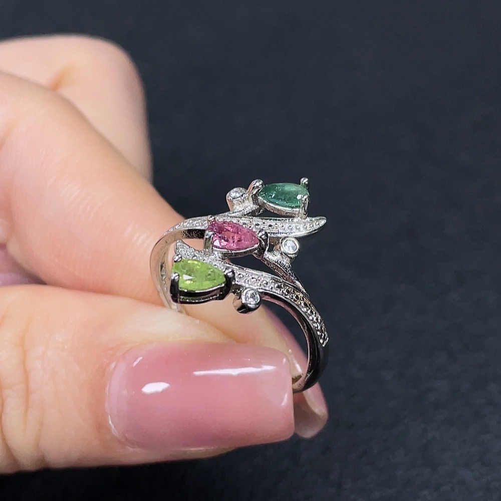 Tourmaline Inlaid Ring Non-Gold Setting Adjustable Total Weight Approx. 2.27g
