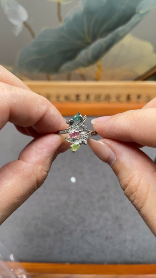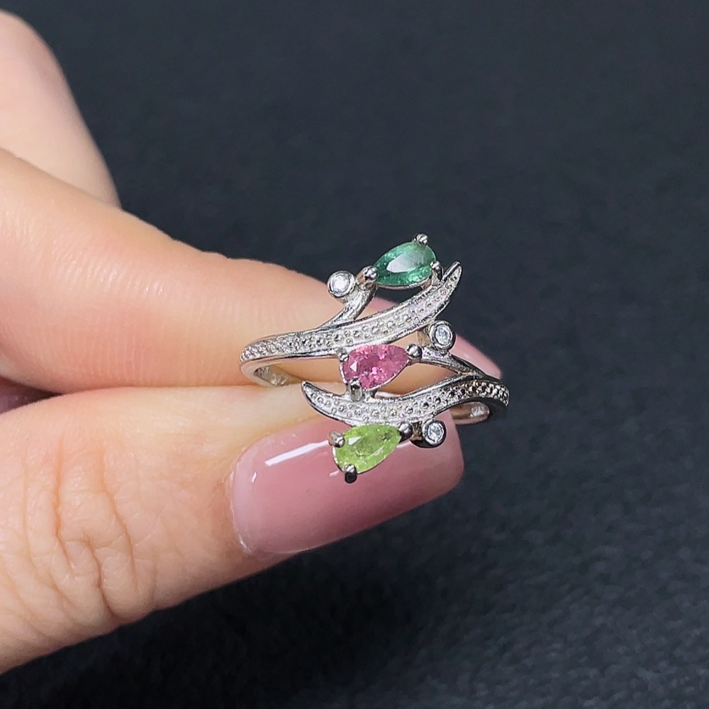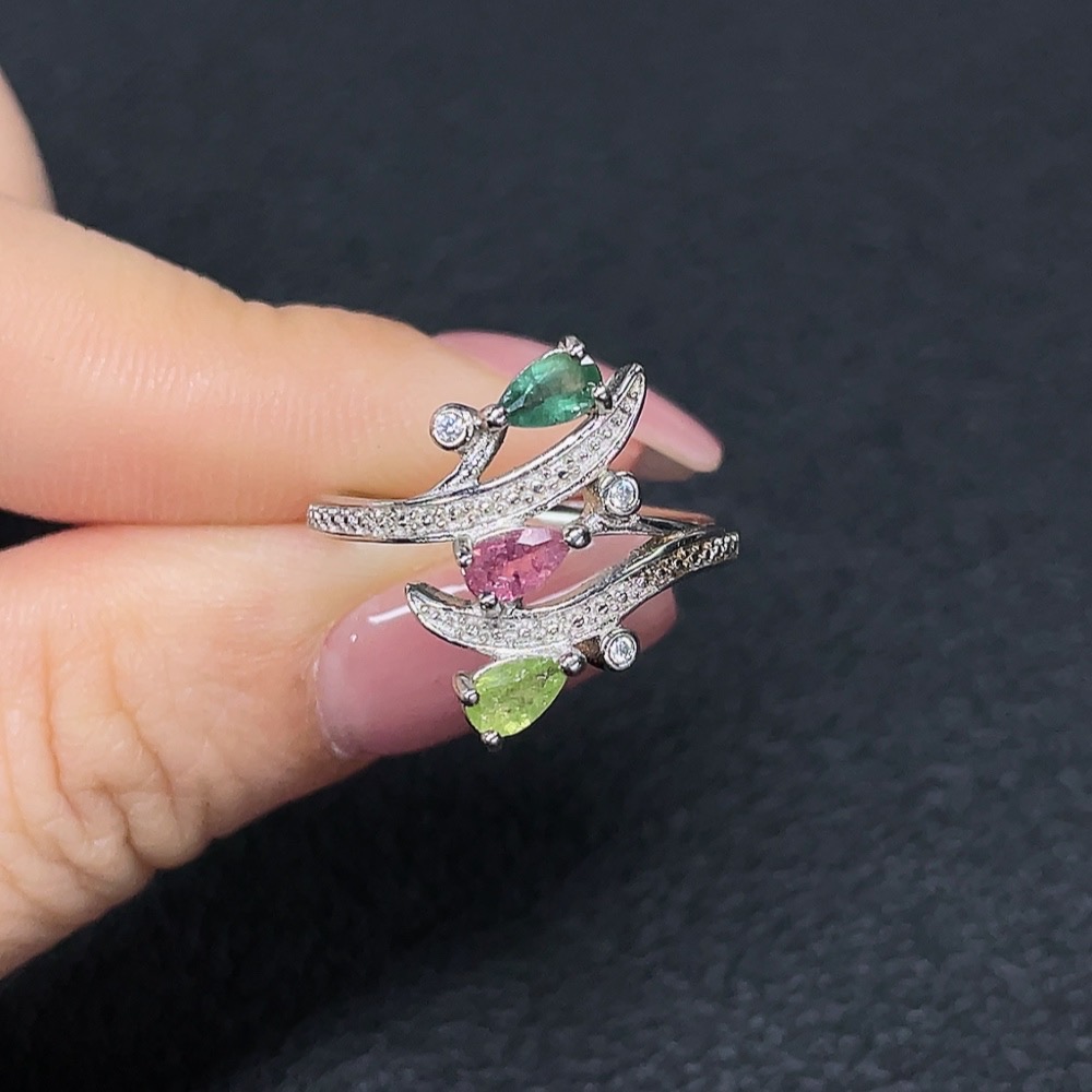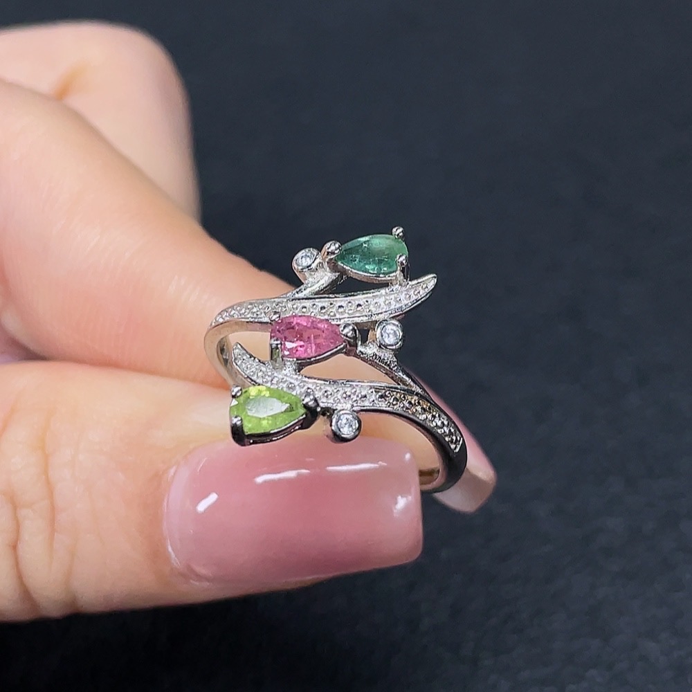 Tourmaline Inlaid Ring Non-Gold Setting Adjustable Total Weight Approx. 2.27g