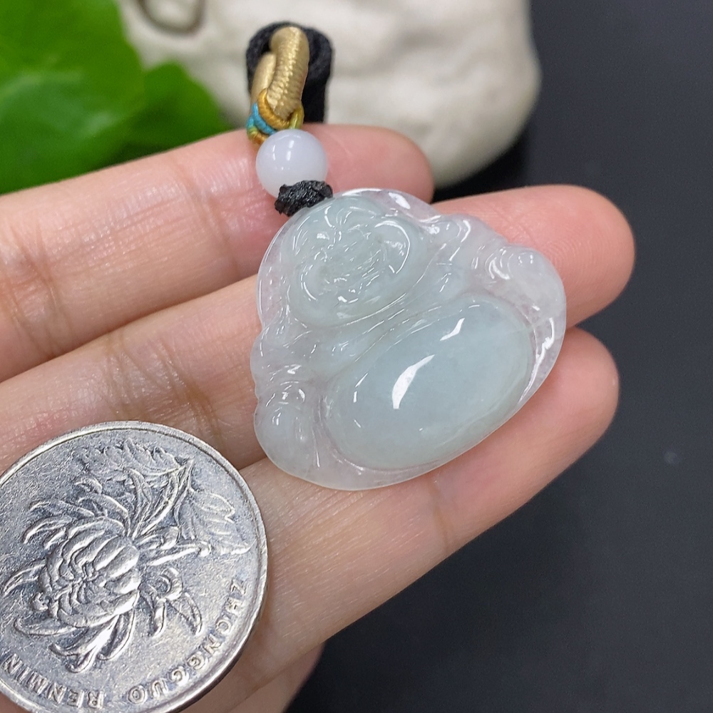 Jadeite Buddha Pendant Total Weight Including Rope Approximately 7.7g