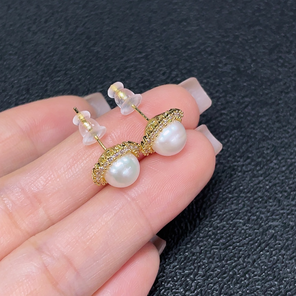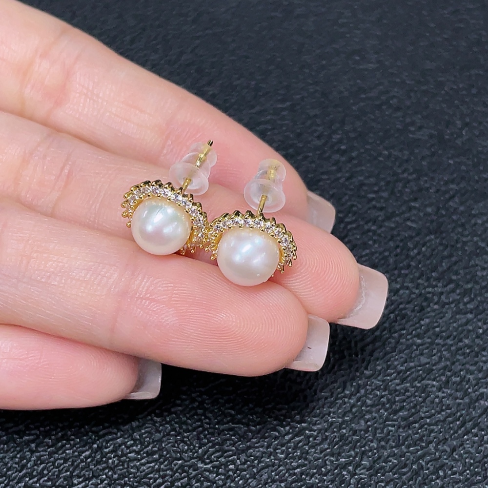 Seawater Pearl Earrings Non-Gold Total Weight Approx. 3.09g Size About 7.5mm