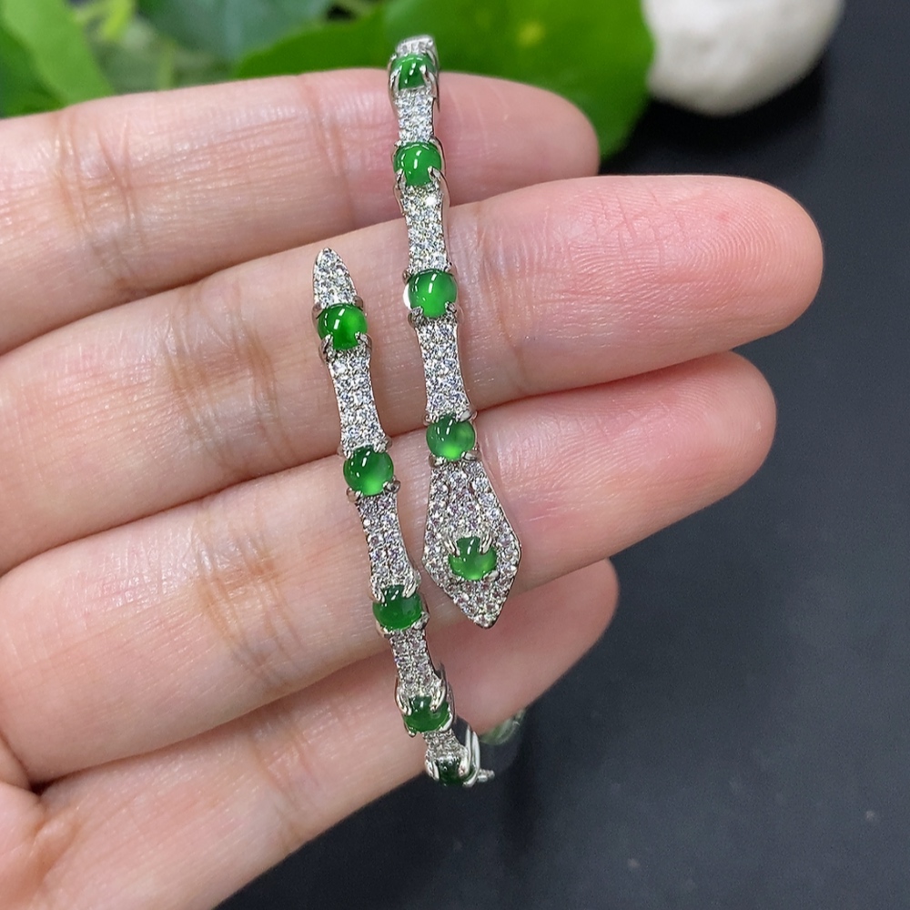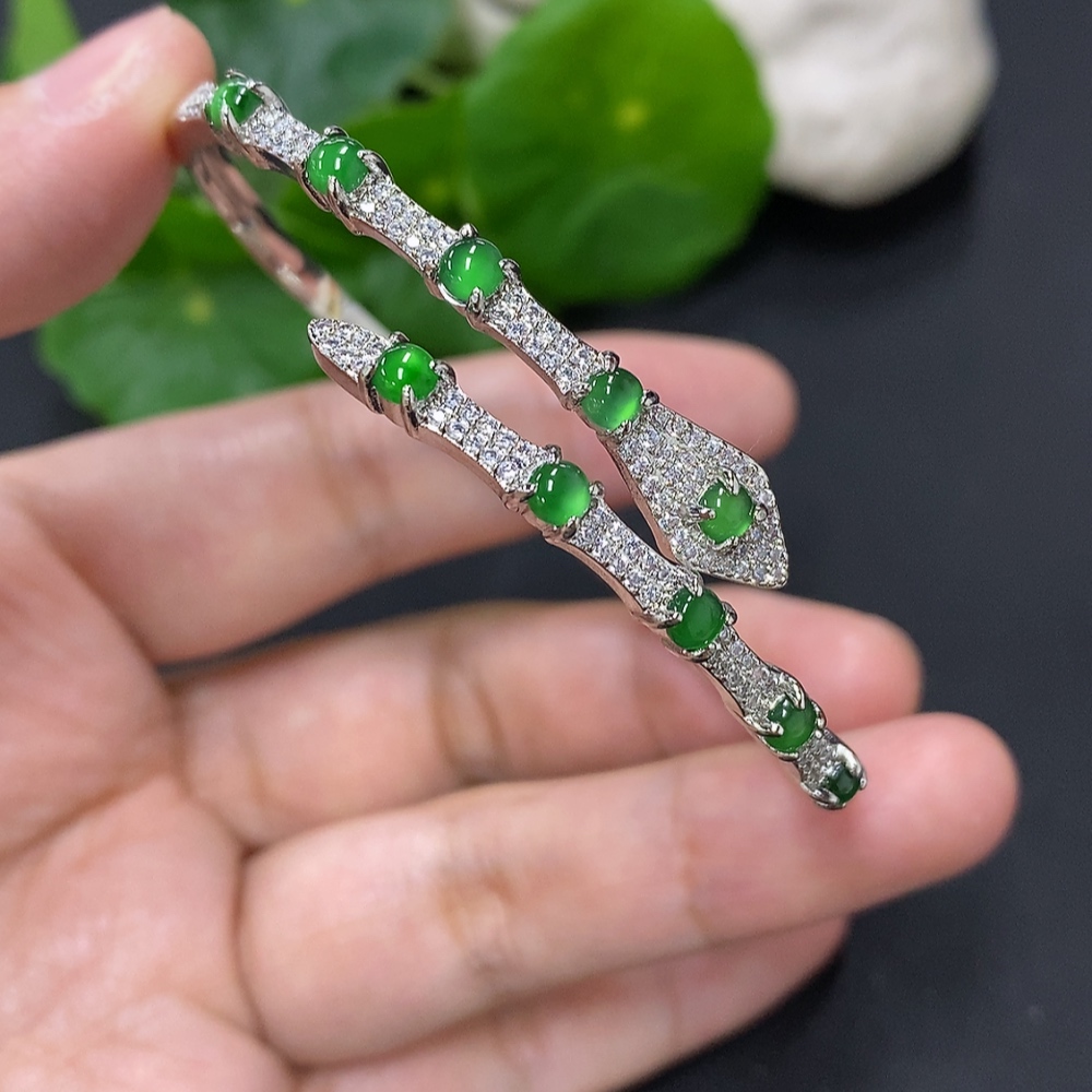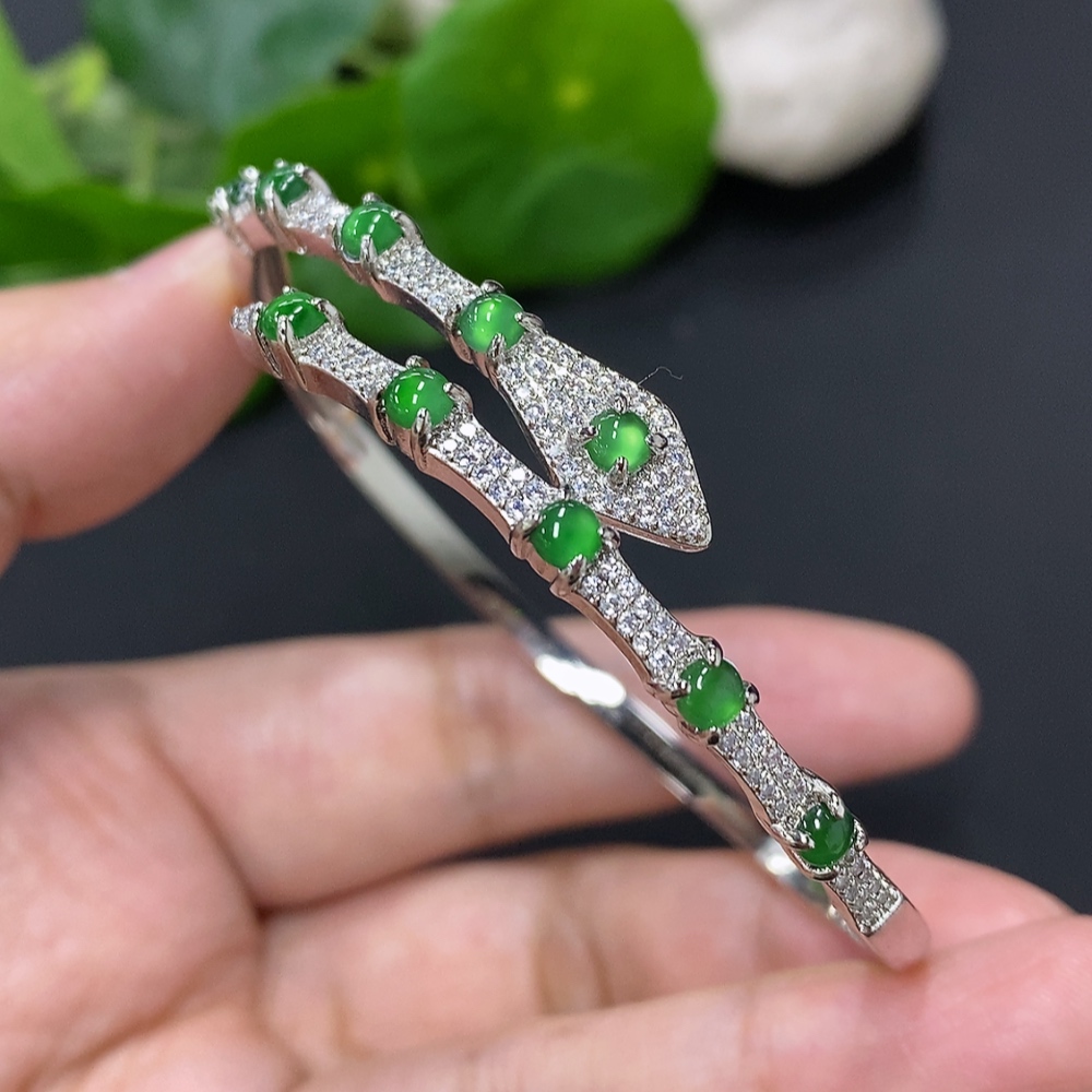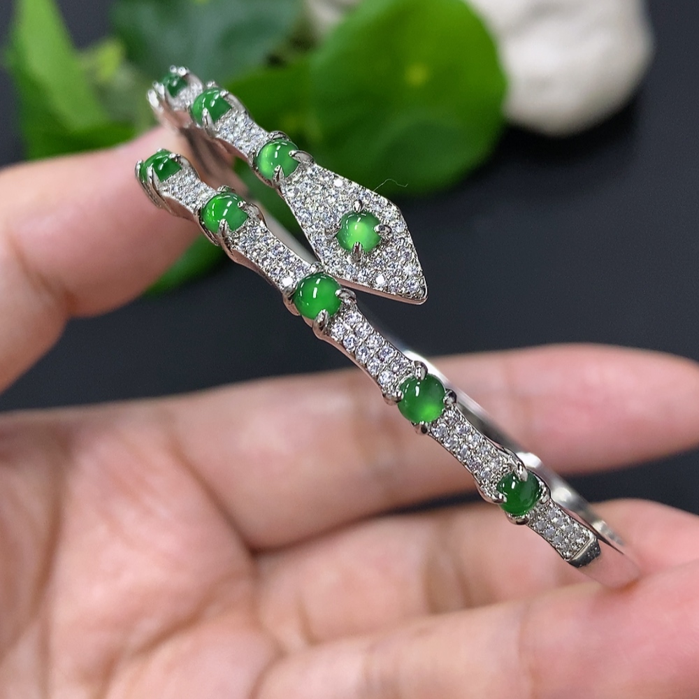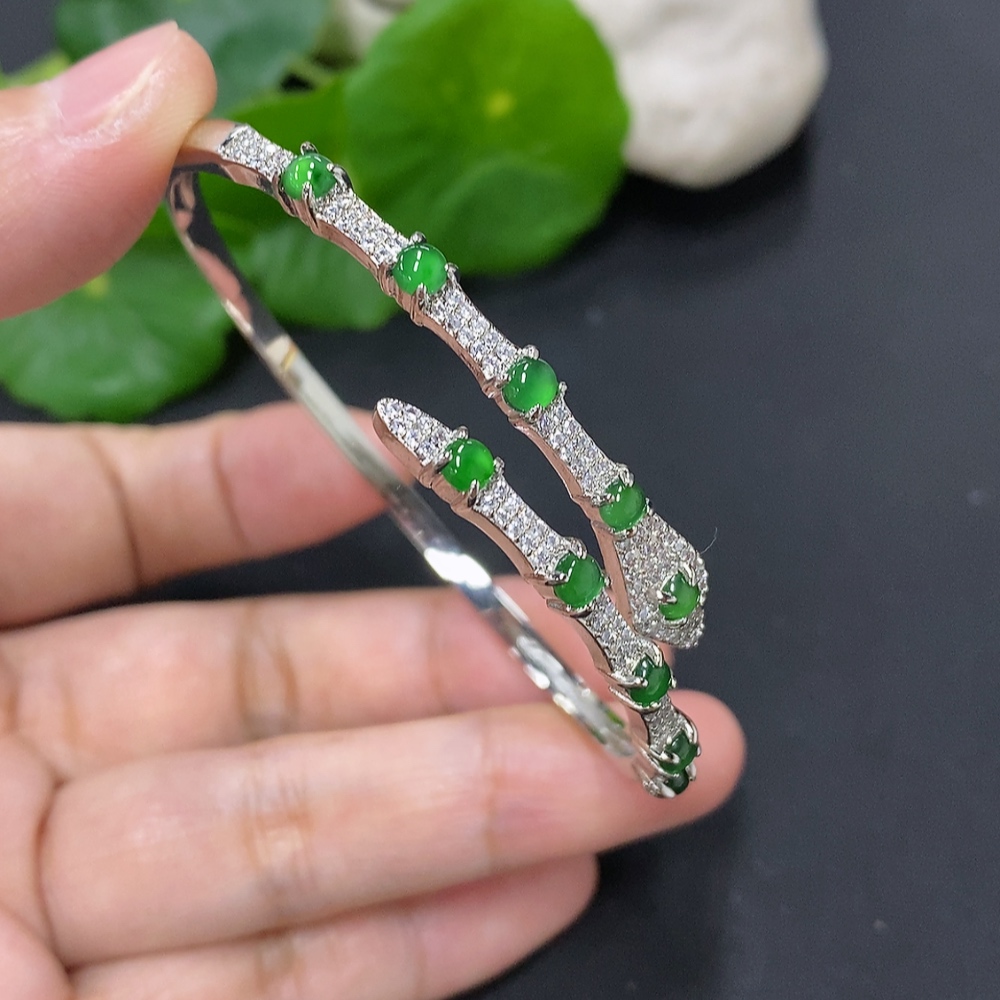 Jadeite cabochon inlaid bracelet, non-gold inlaid, total weight approx. 11.7g