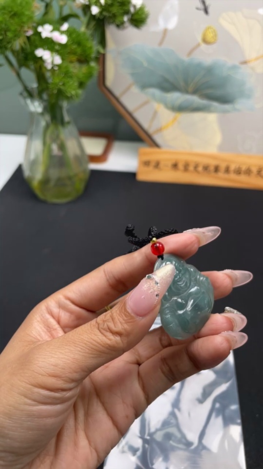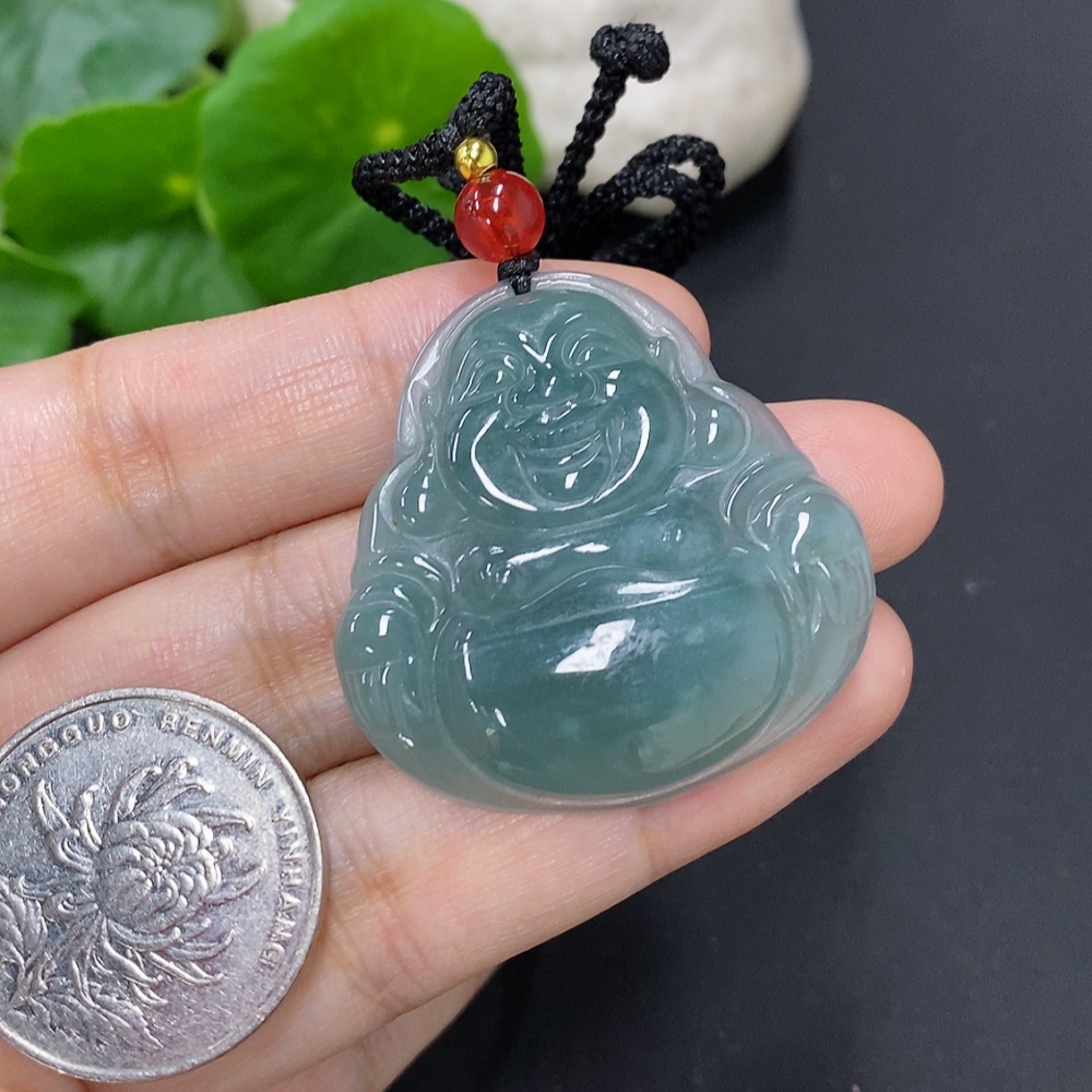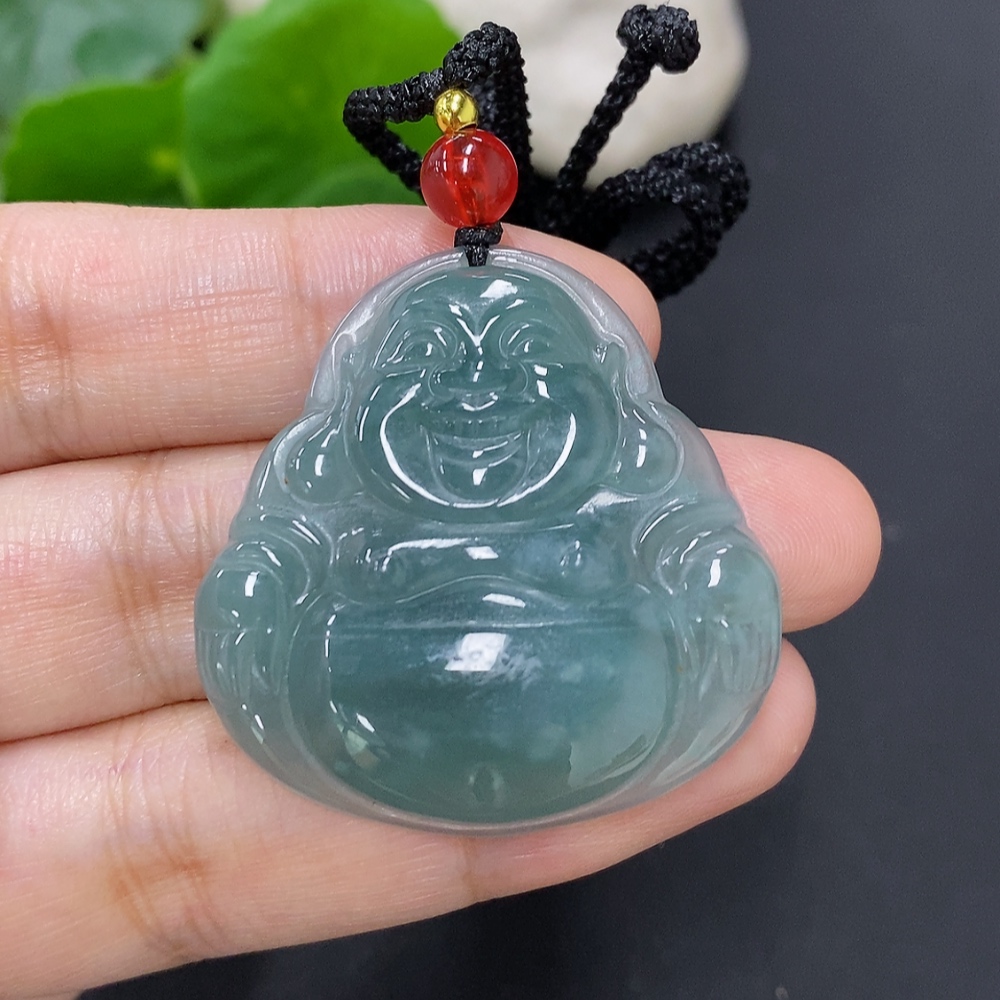 Jadeite Buddha Pendant Total Weight Including Rope Approximately 12.9g