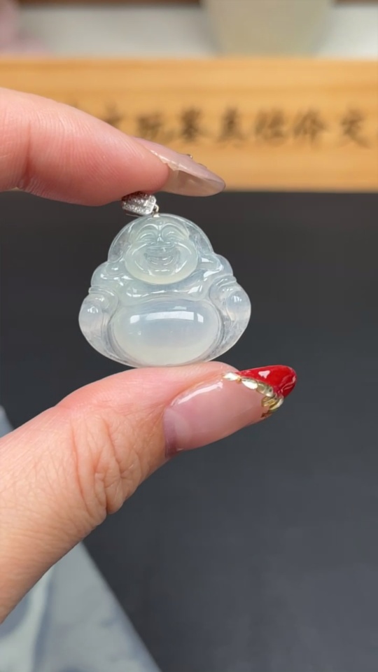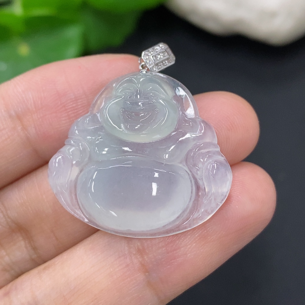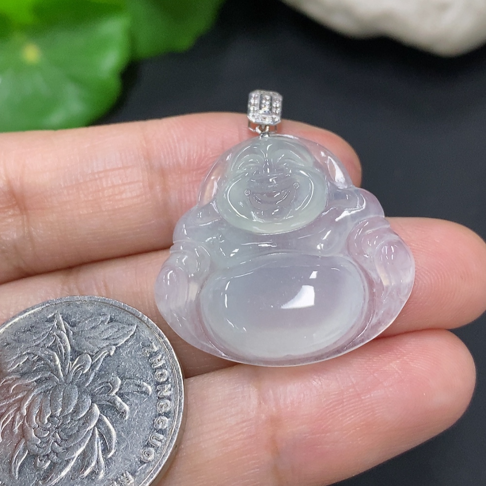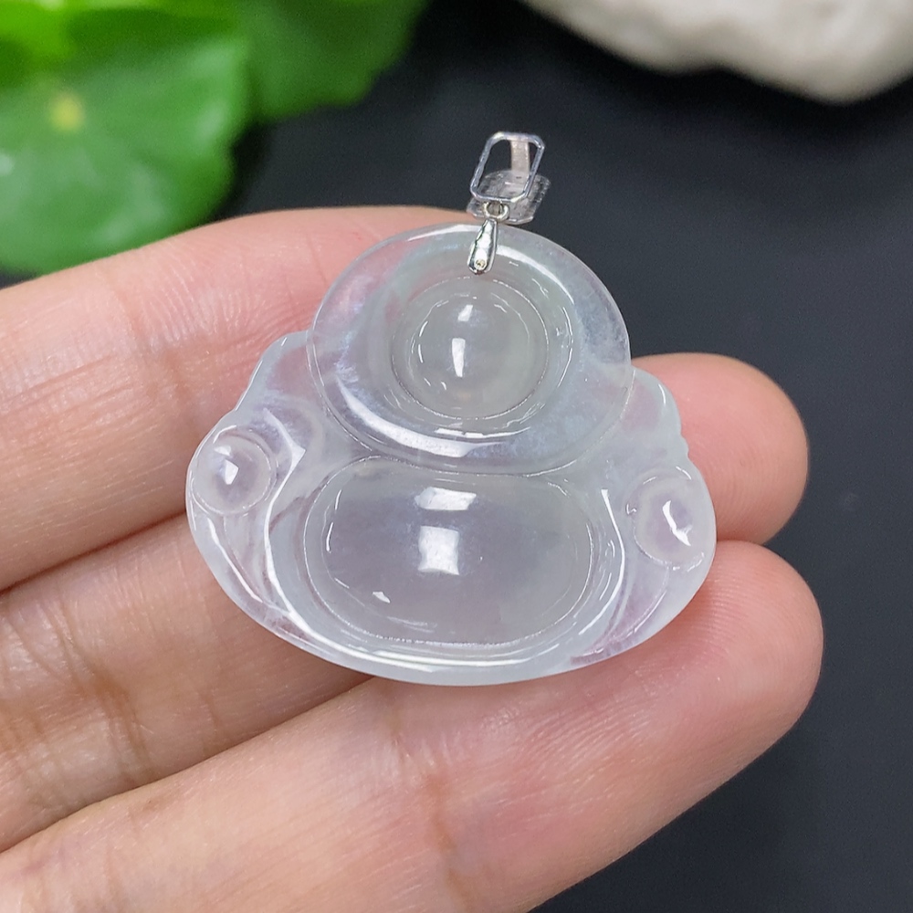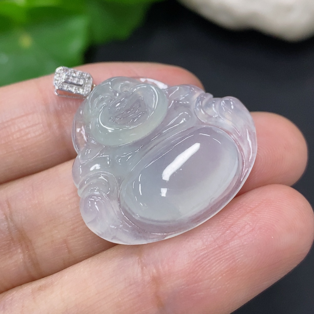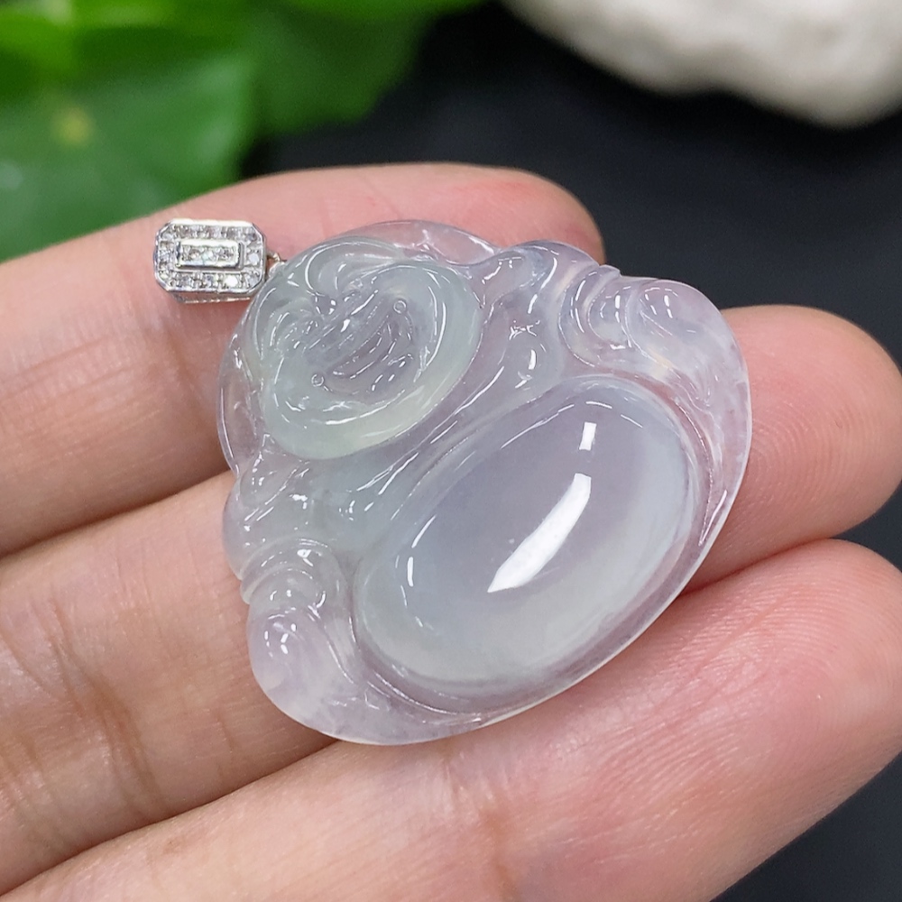 Jadeite Buddha Pendant with 18K Gold Clasp, Total Weight Approx. 5.8g (Diamond Accented)