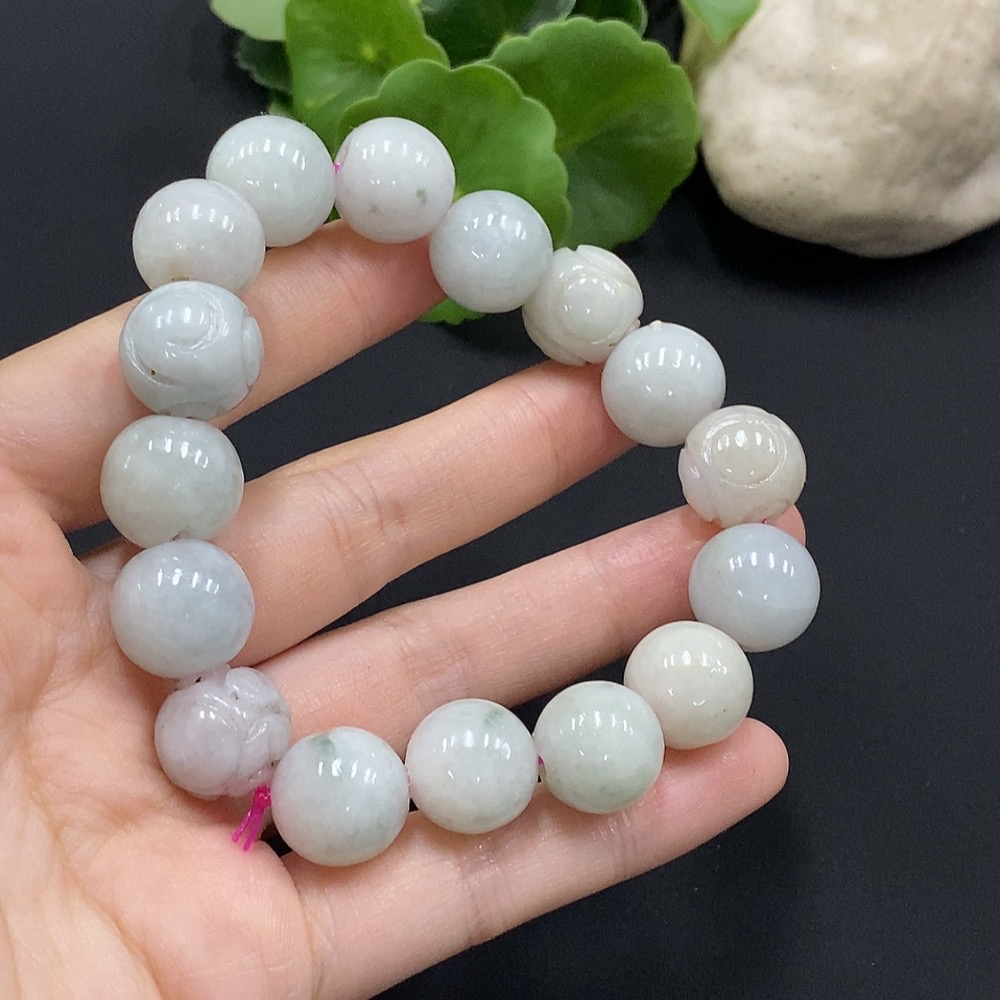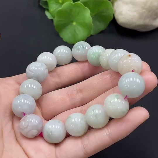 Jadeite Beads Bracelet Approx. 13.8mm Total Weight Approx. 72.11g
