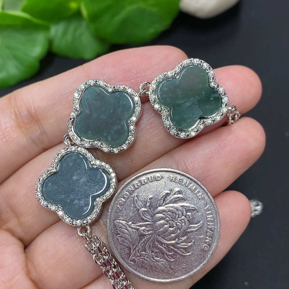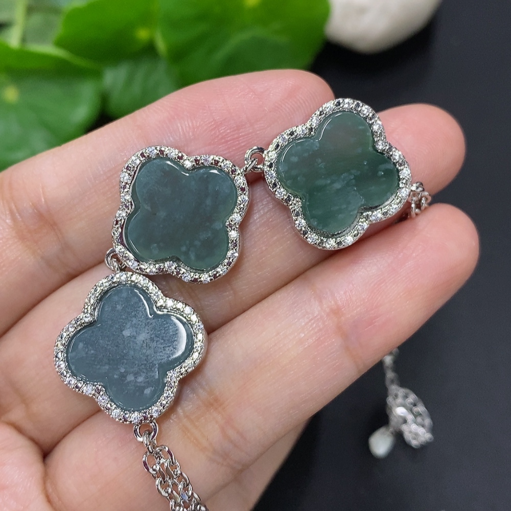 Jadeite Inlaid Bracelet Non-Gold Inlaid Total Weight Approx. 15.2g