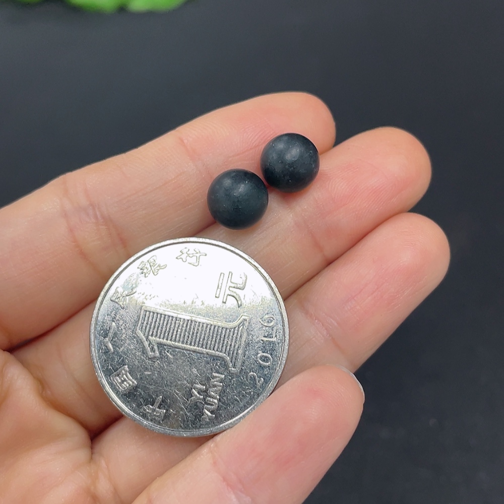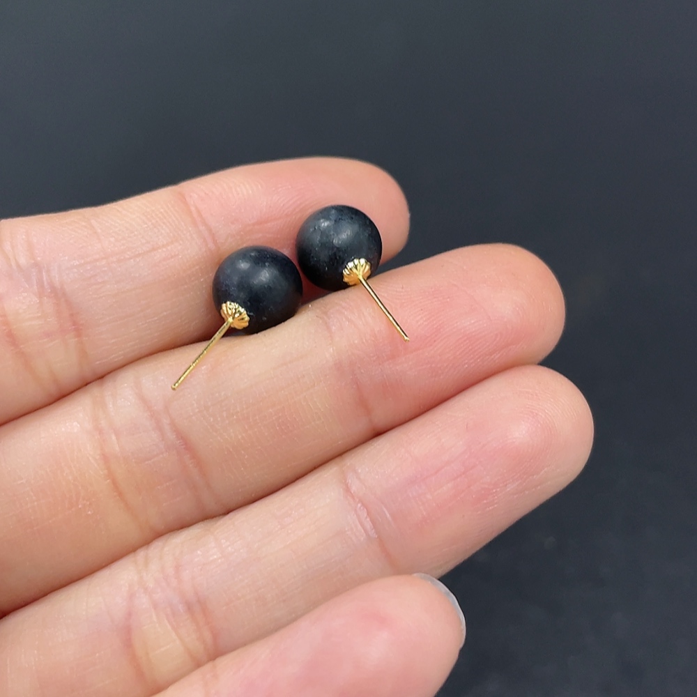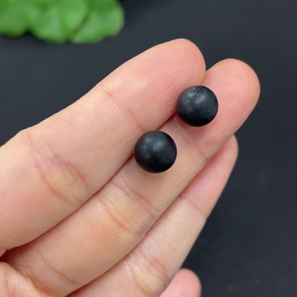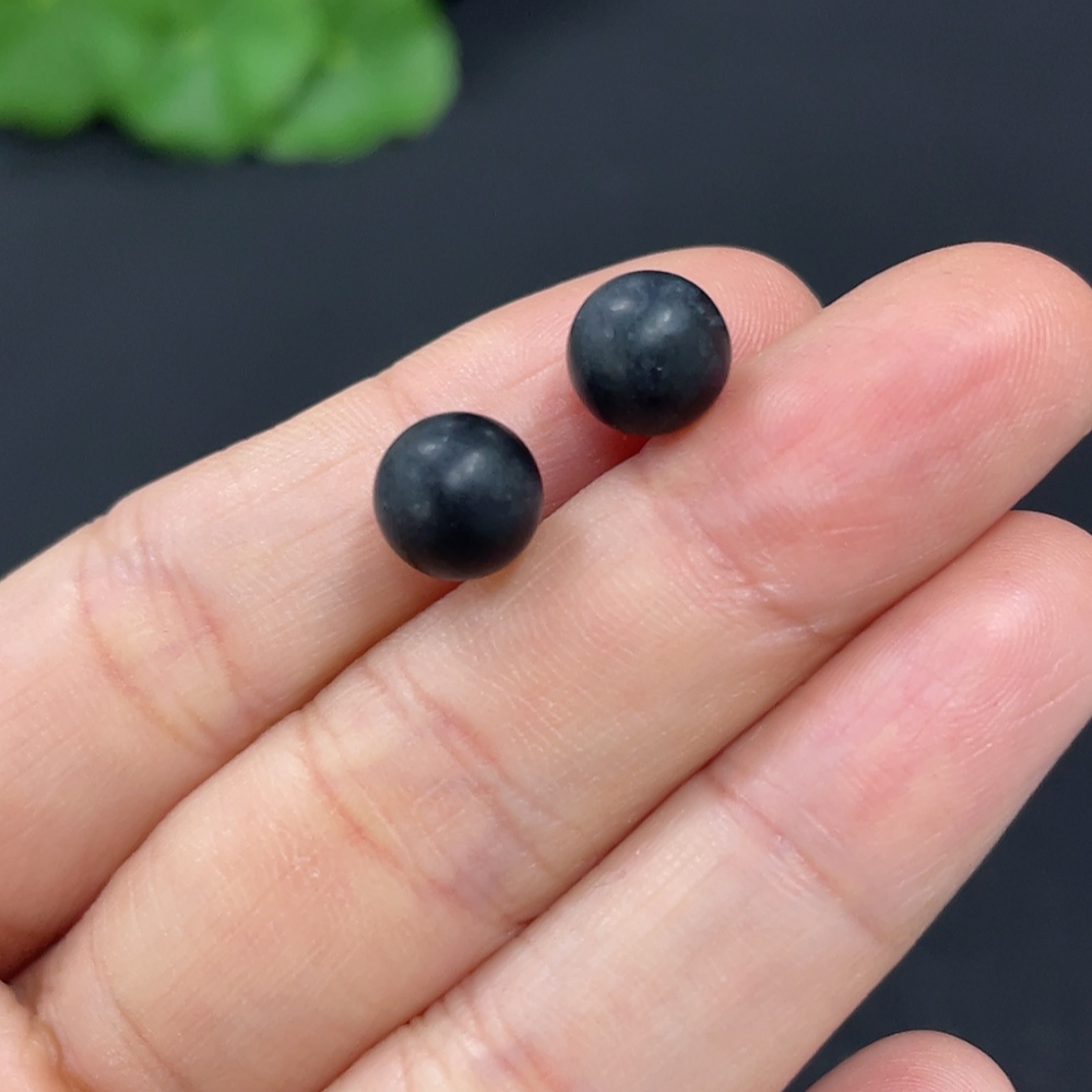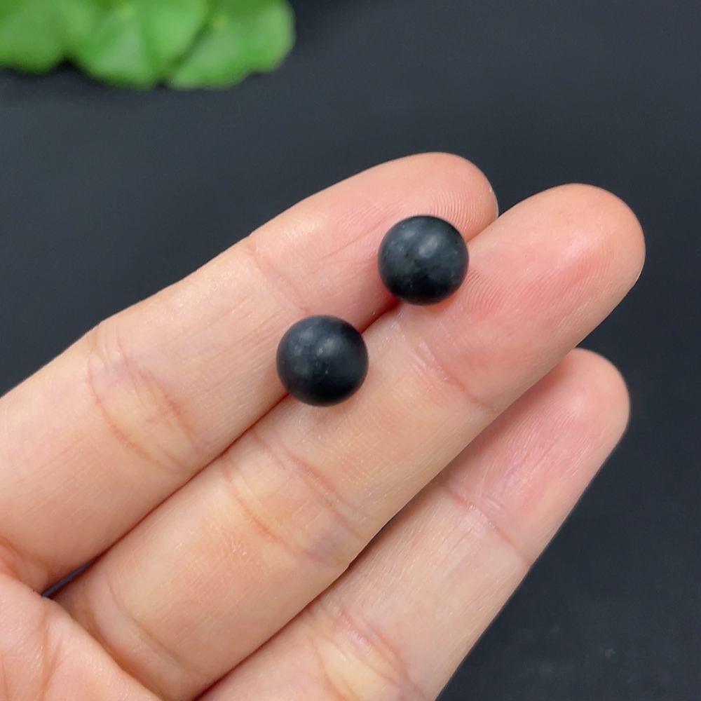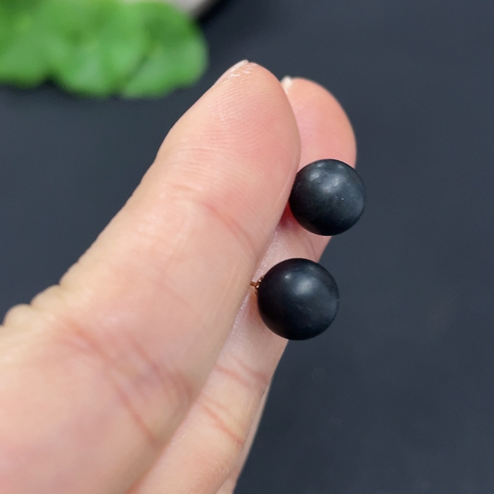 Hetian Jade Bead Earrings, approximately 7.6mm, 18k gold, total weight about 1.4g, color origin undetermined, contains other mineral components