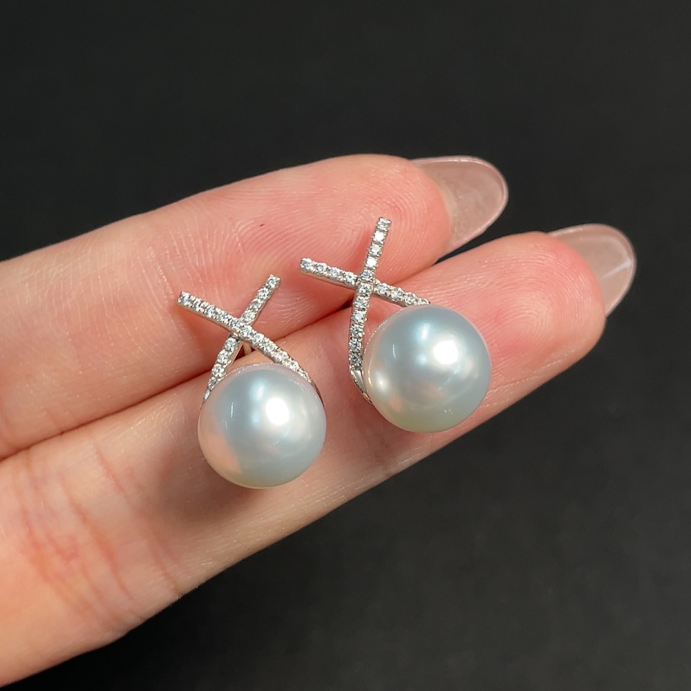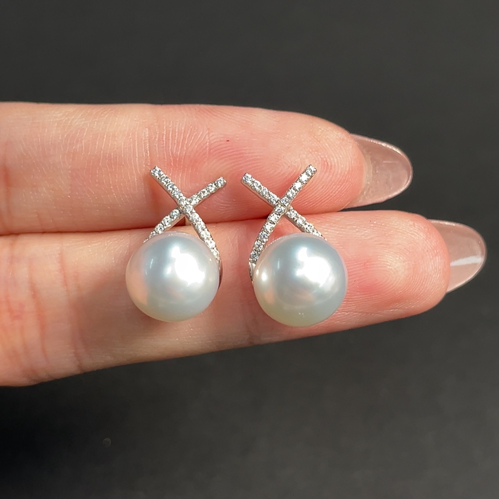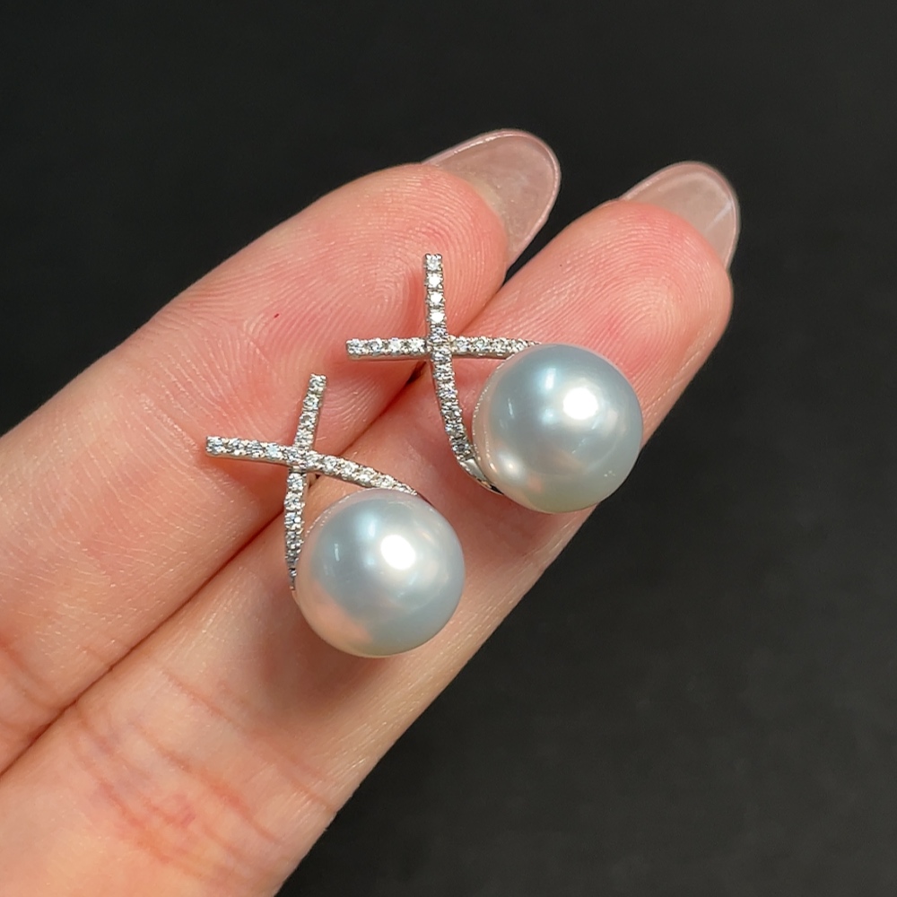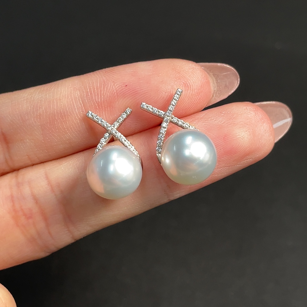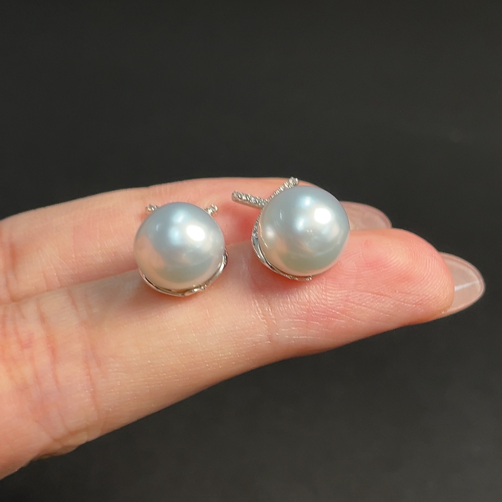 18K Sea Water Pearl Earrings (Non-Diamond) Total Weight Approx. 3.92g Size About 9.7mm