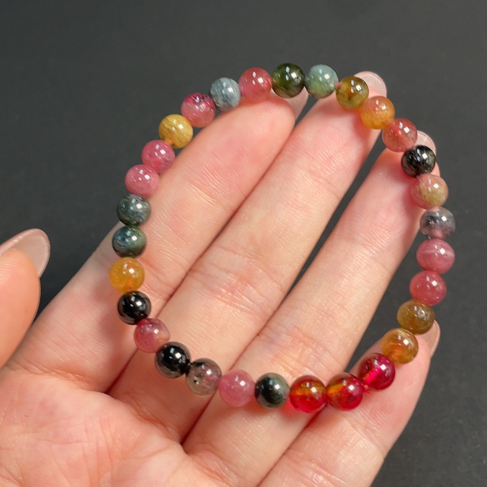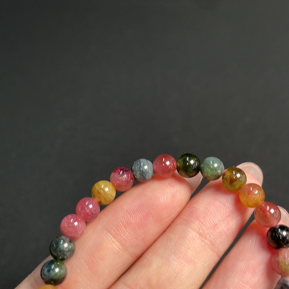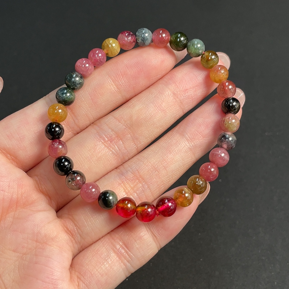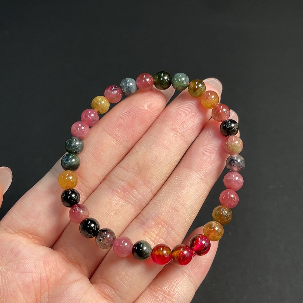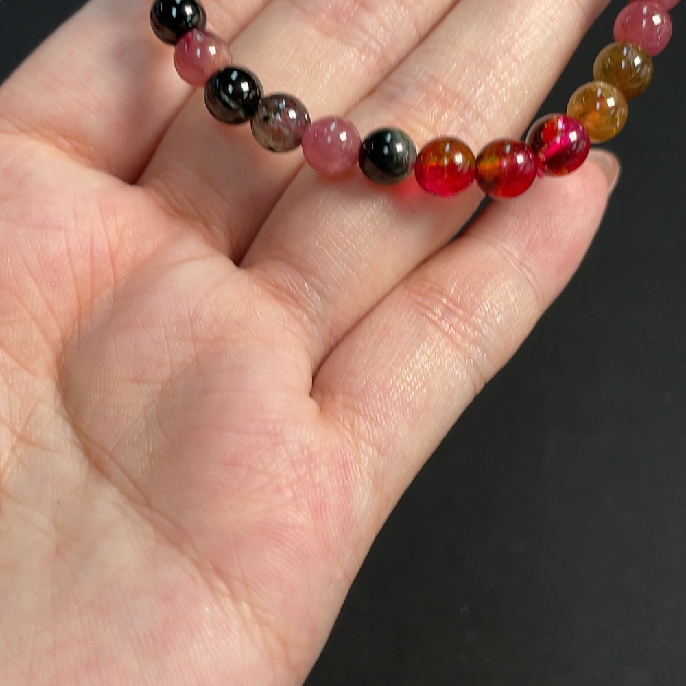 Tourmaline bracelet with visible organic matter, non-natural accent stones, total weight approx. 10.2g, size approx. 6.2mm (with impurities)