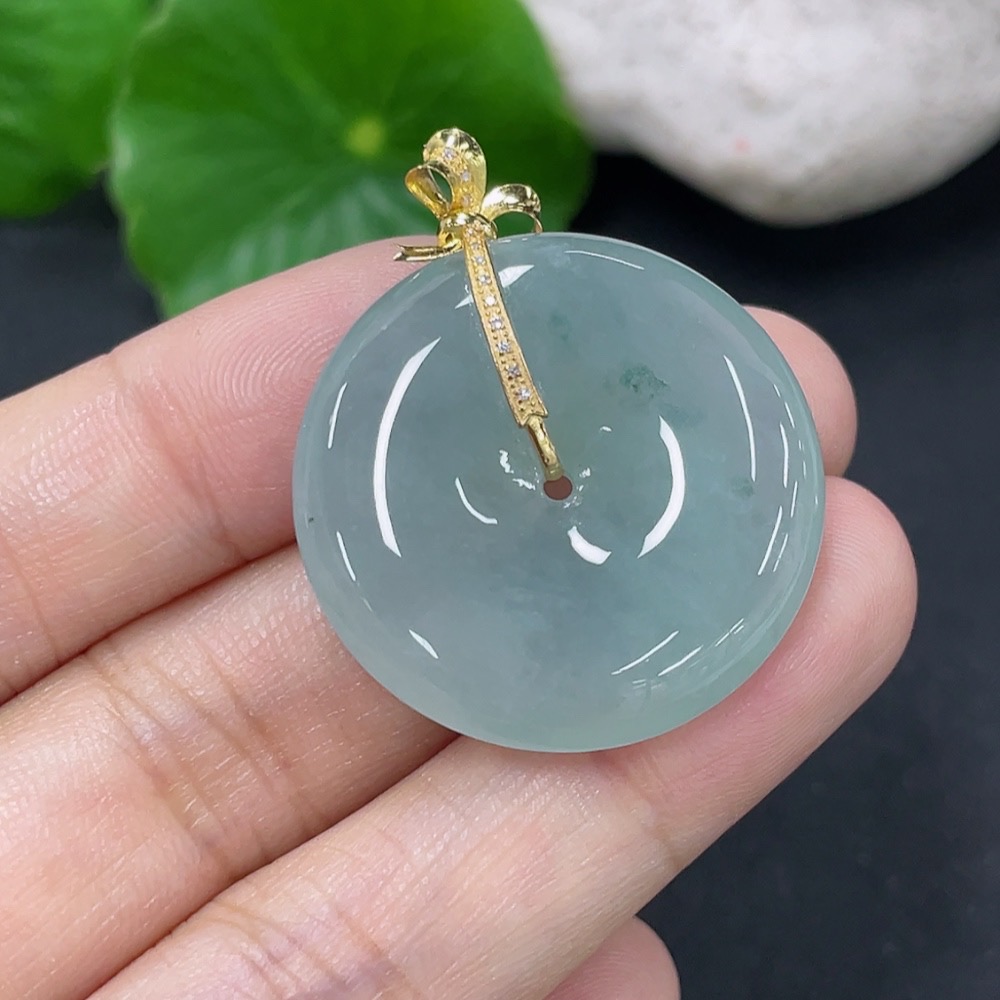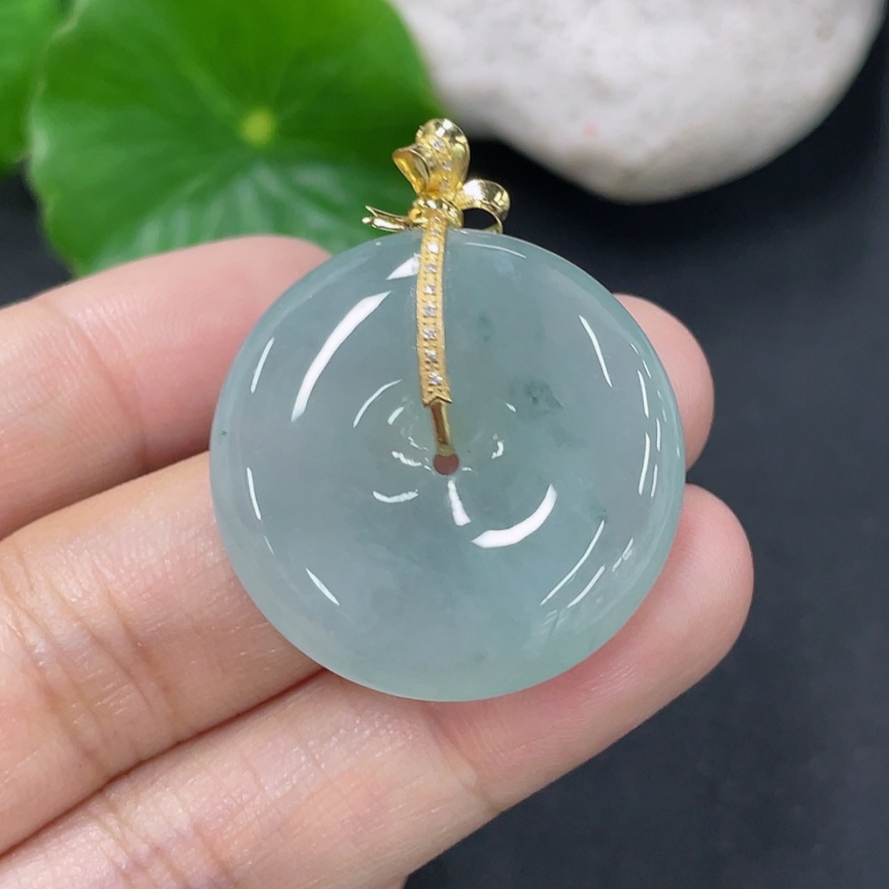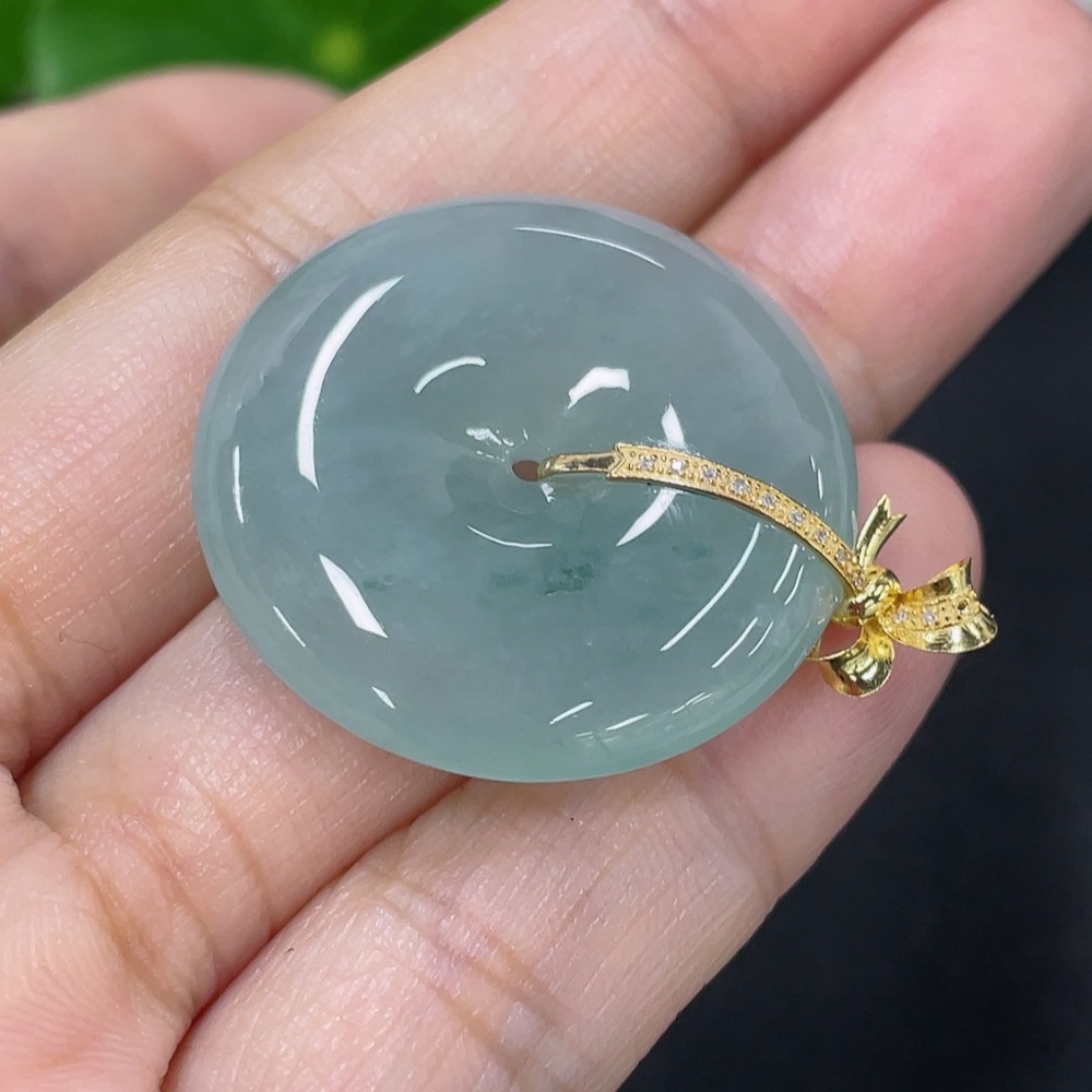 Jadeite Pendant Peace Knot with 18K Gold and Diamond Accents, Total Weight Approximately 9.24g