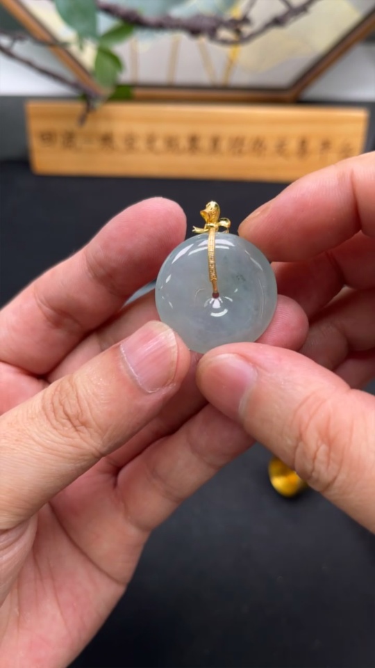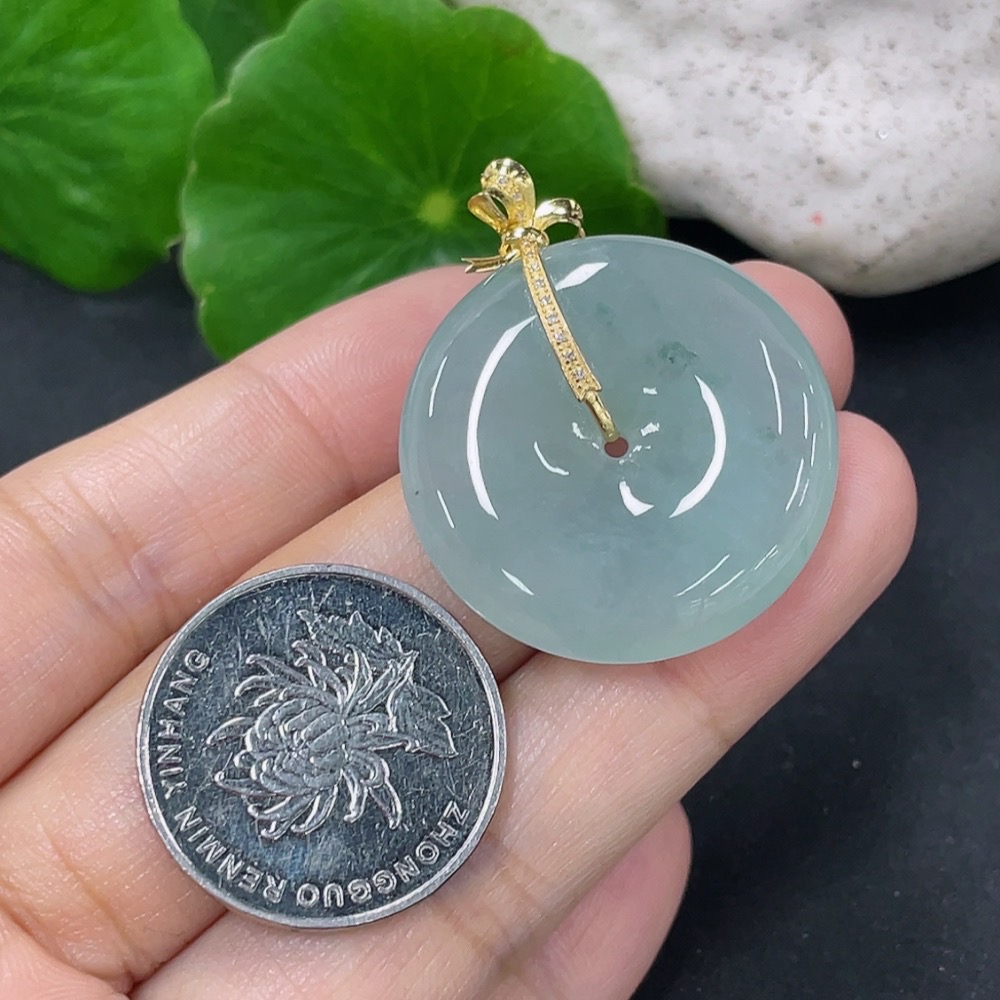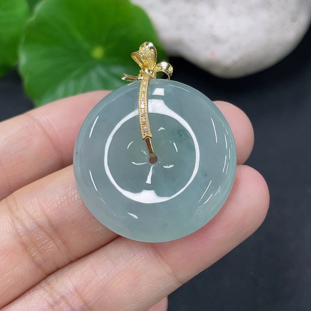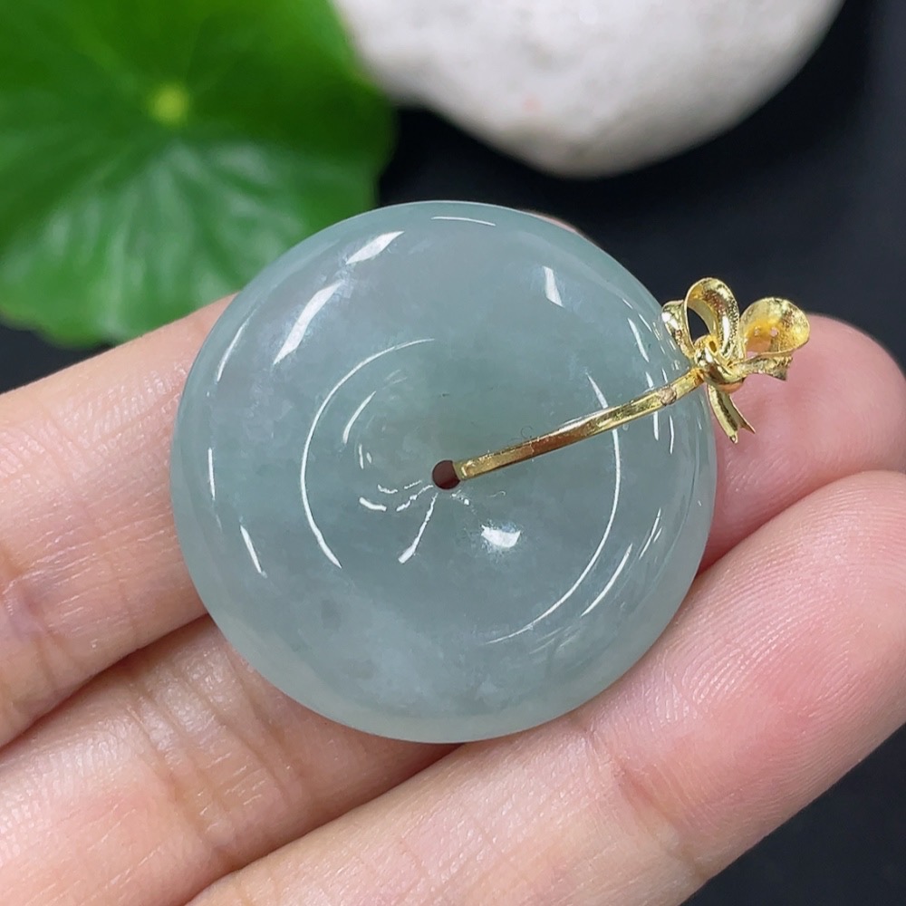 Jadeite Pendant Peace Knot with 18K Gold and Diamond Accents, Total Weight Approximately 9.24g