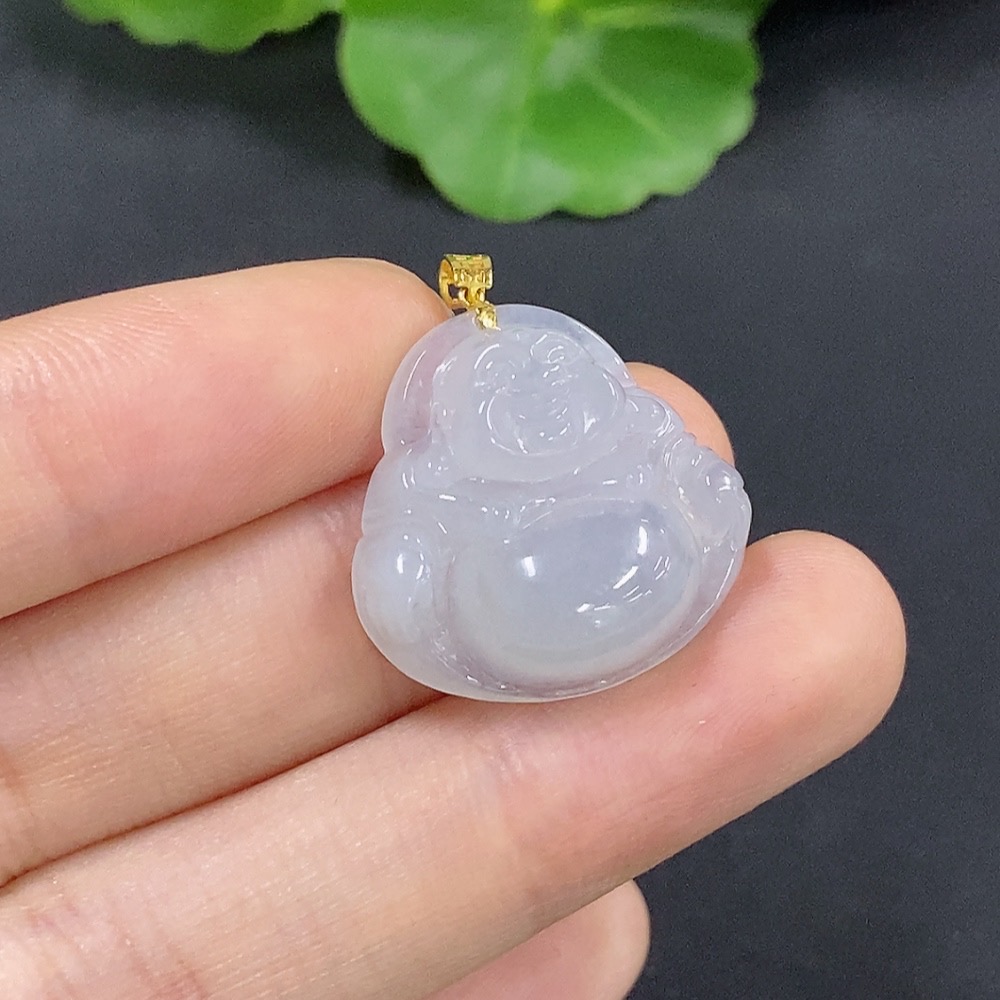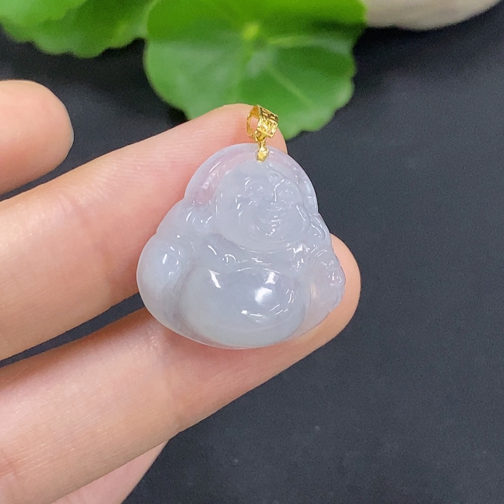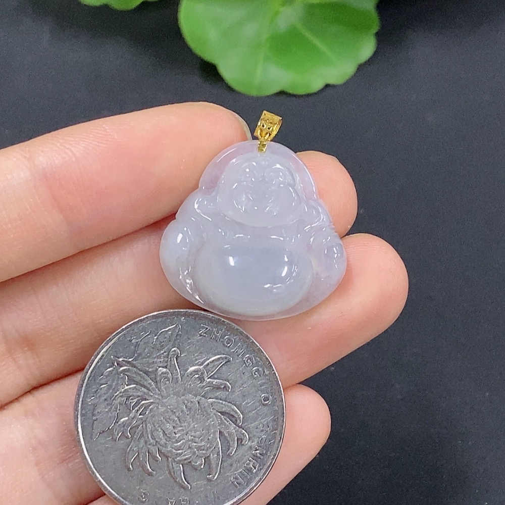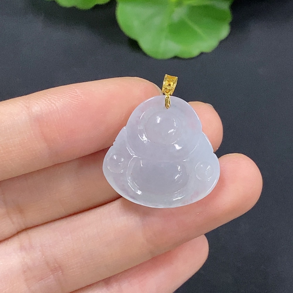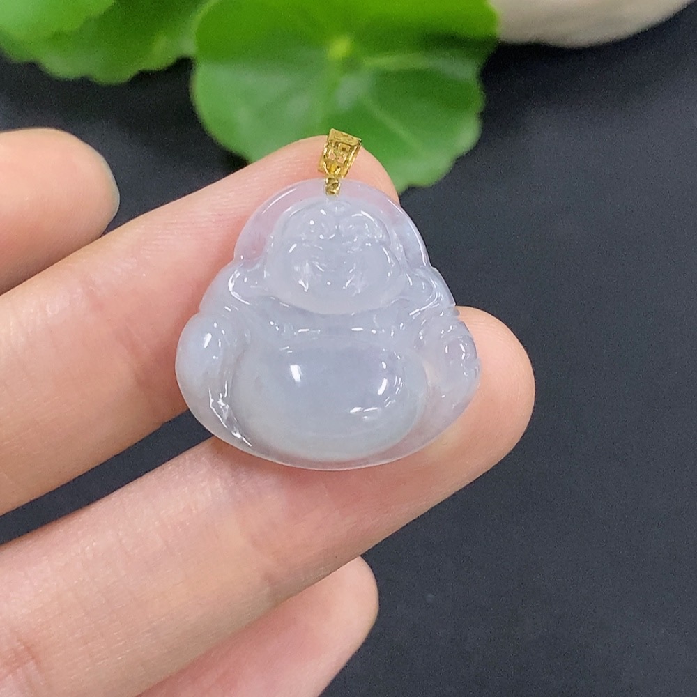 Jadeite Buddha Pendant 18K Gold Total Weight Approx. 5.2g