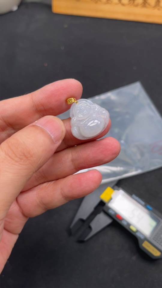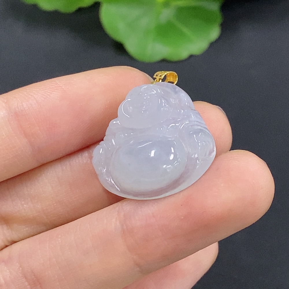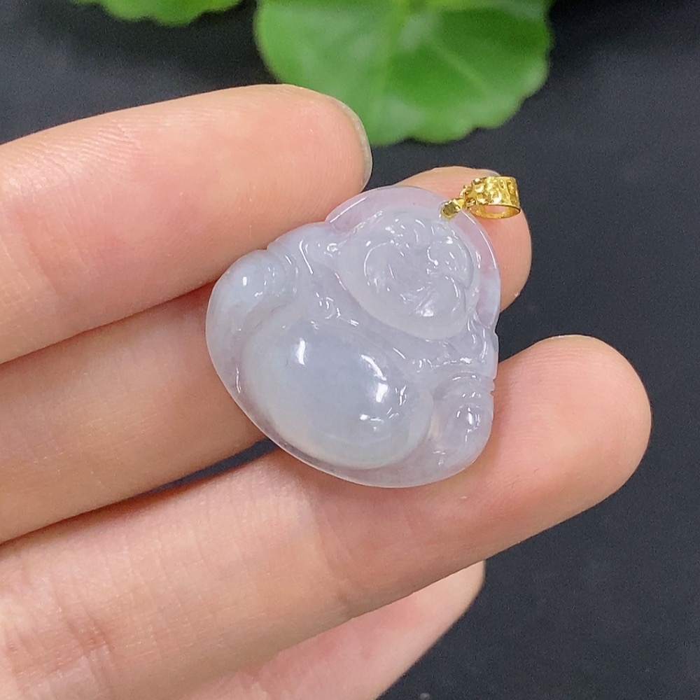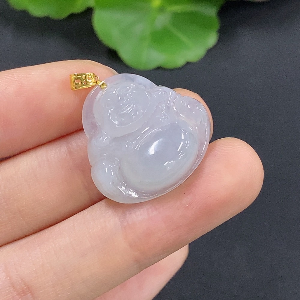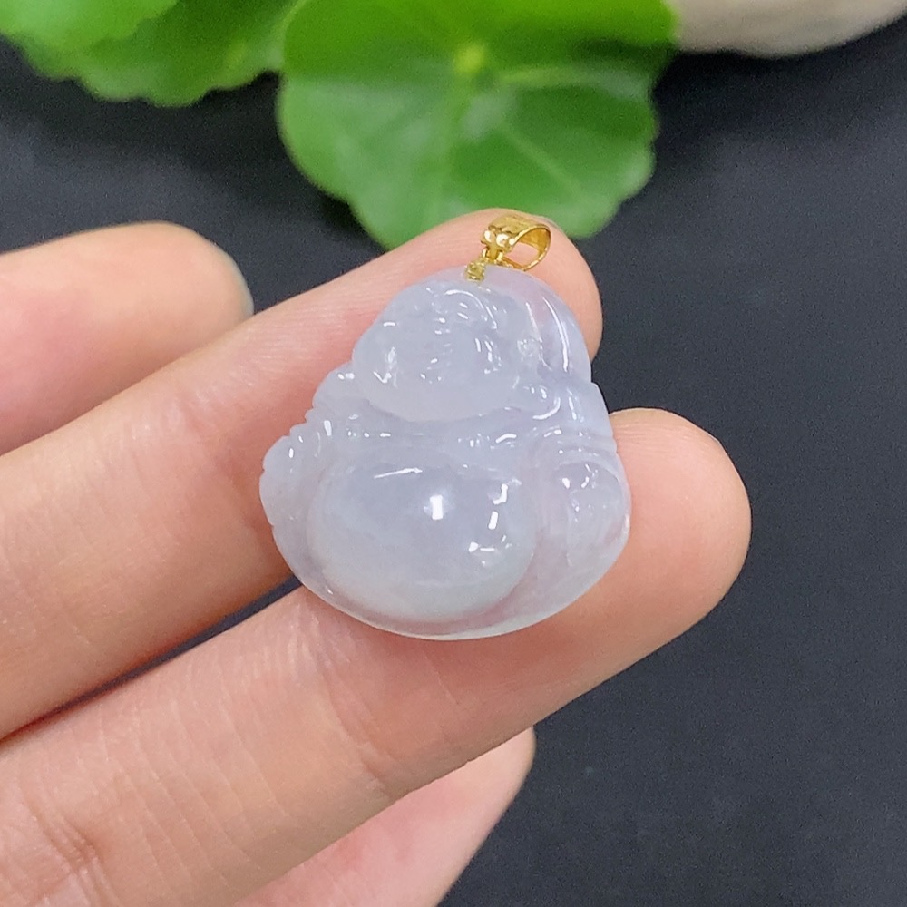 Jadeite Buddha Pendant 18K Gold Total Weight Approx. 5.2g