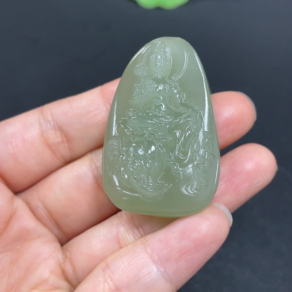 Hetian Jade Pendant - Samantabhadra Bodhisattva, Total Weight Approx. 25.9g