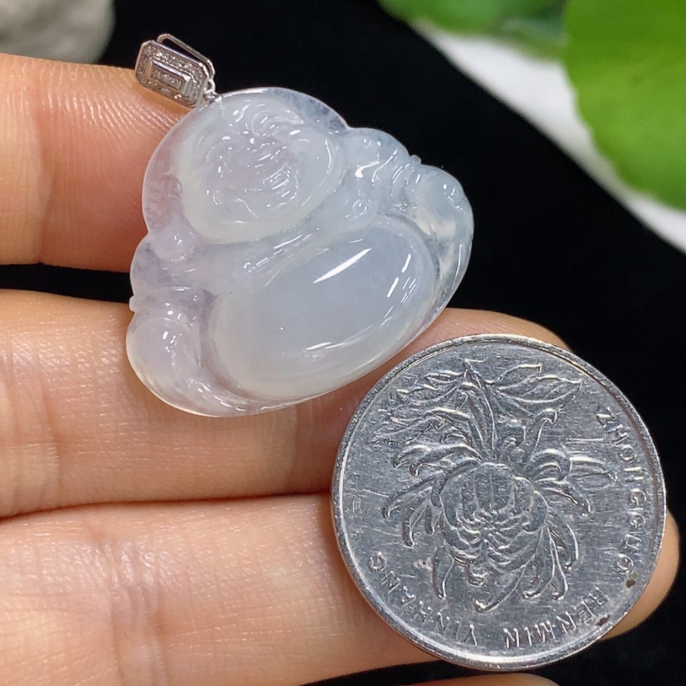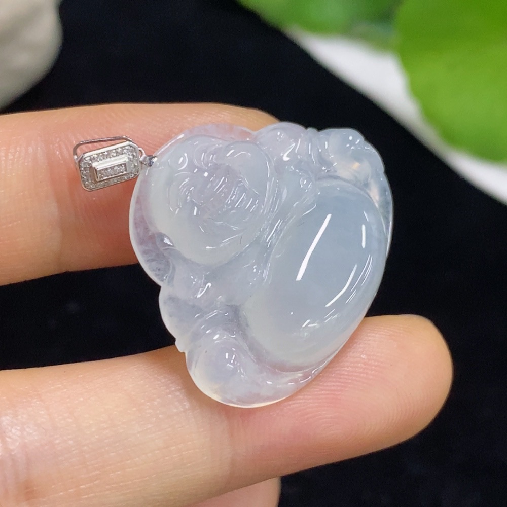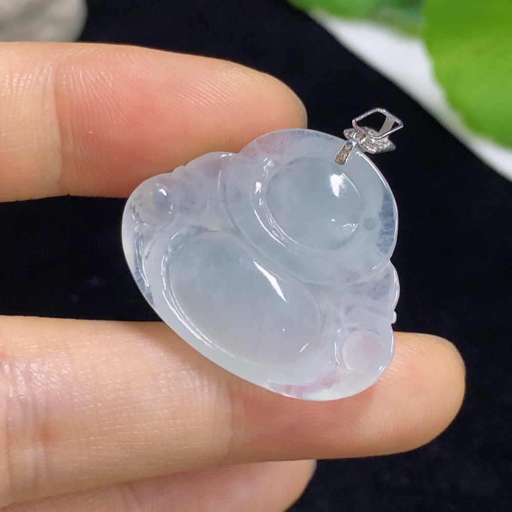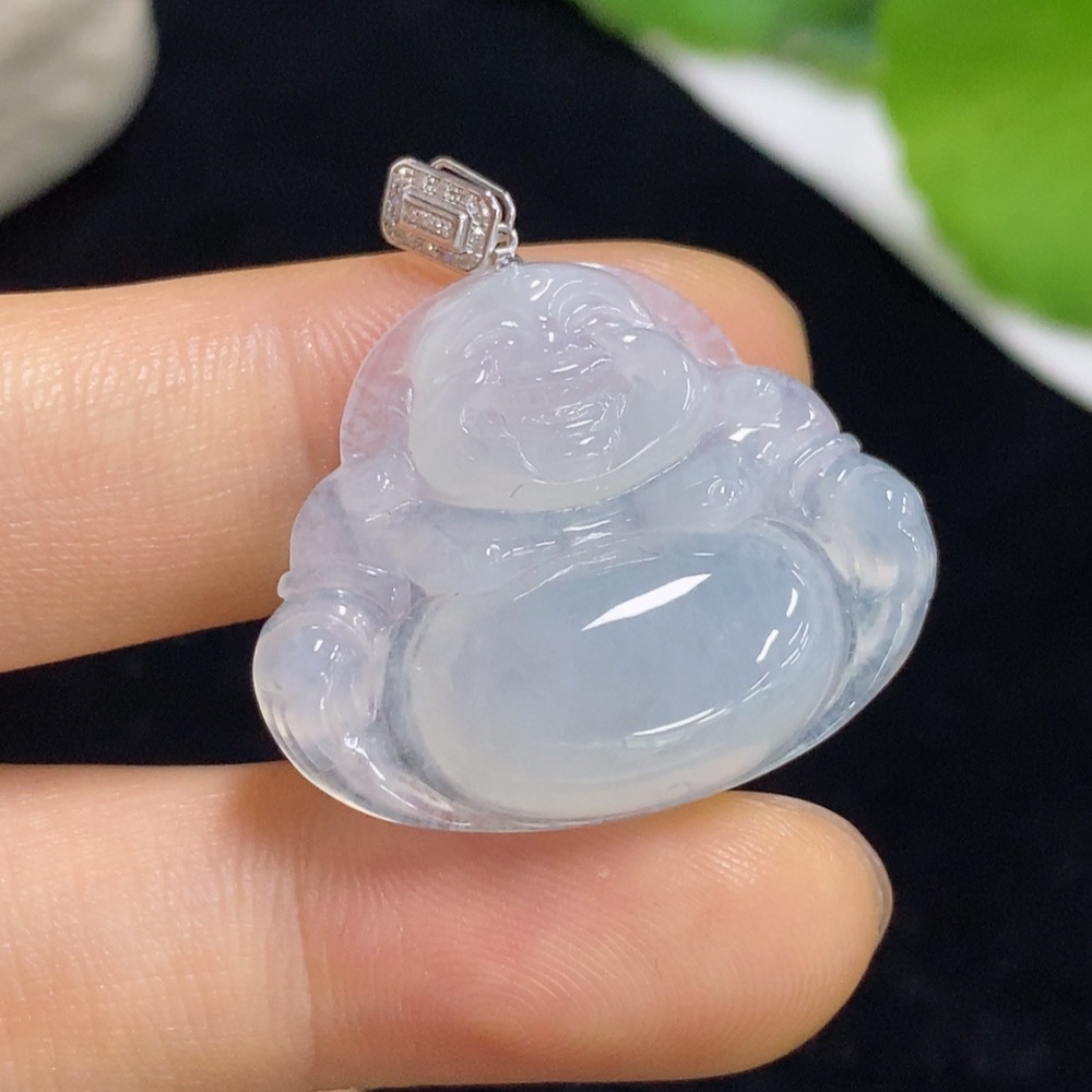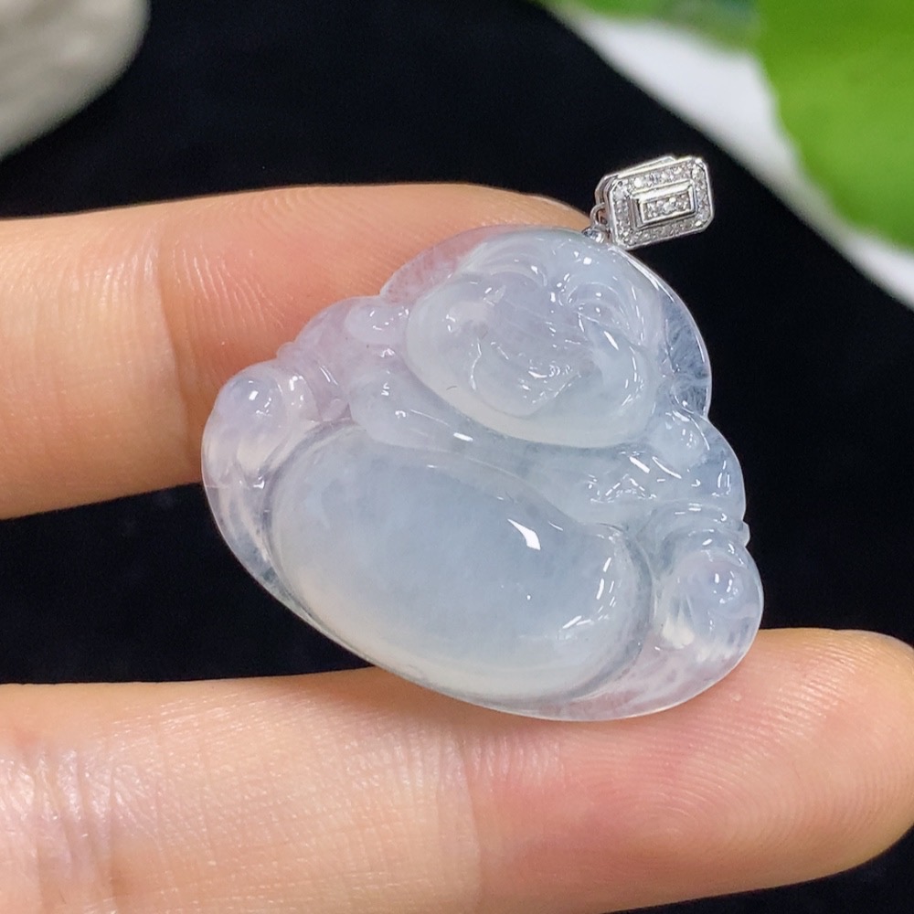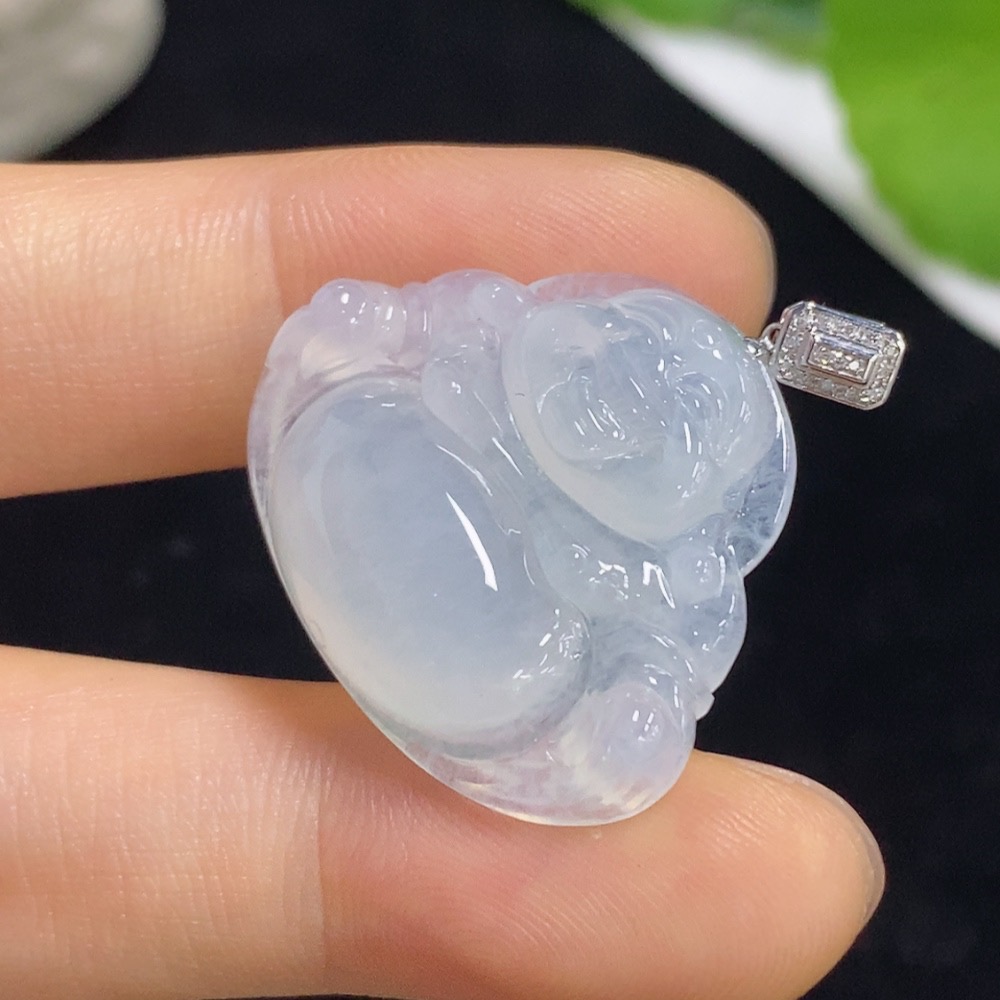 Jadeite pendant Buddha in 18k gold with diamond accents, total weight approximately 5.95g