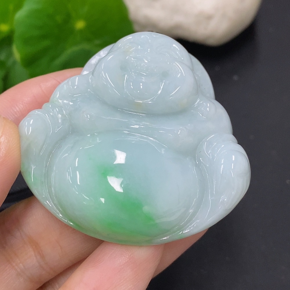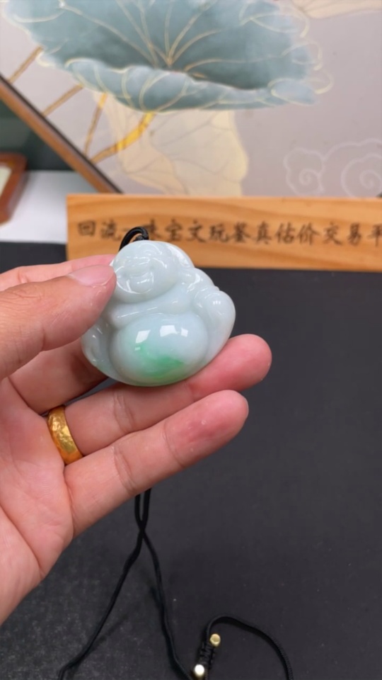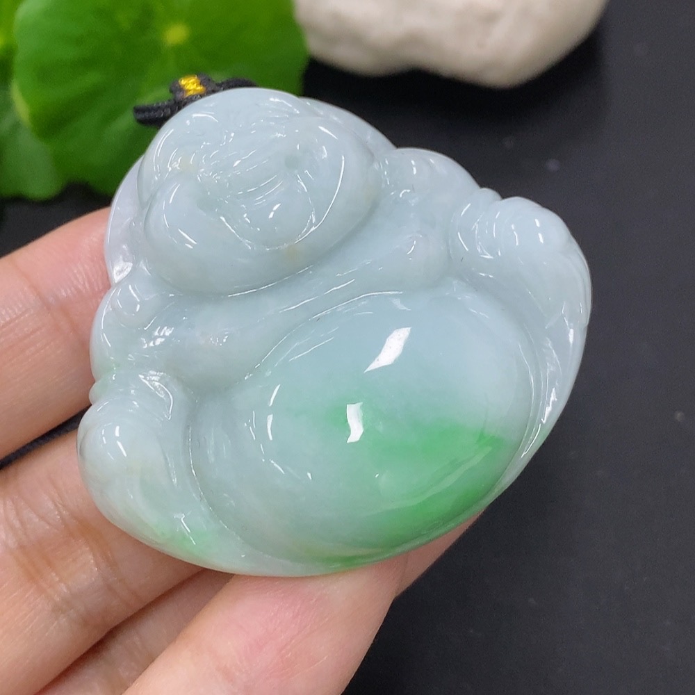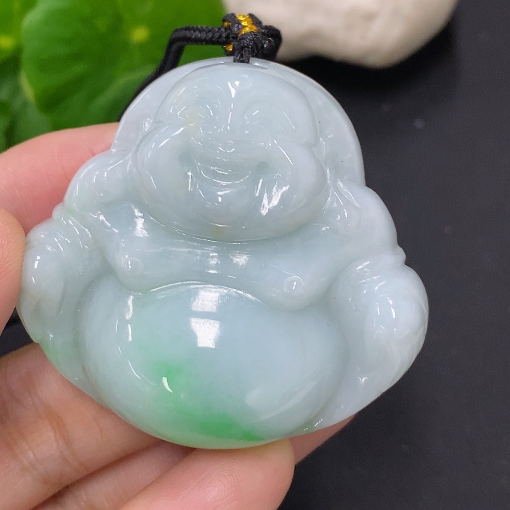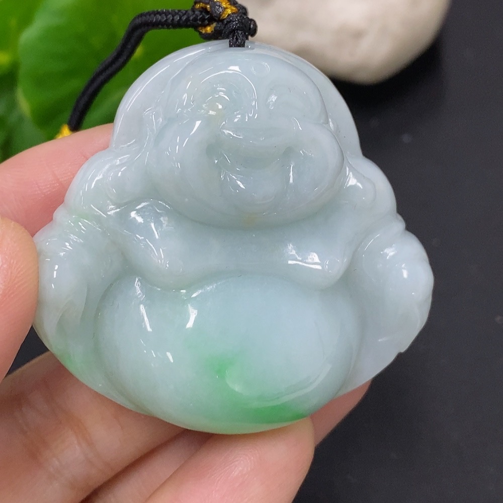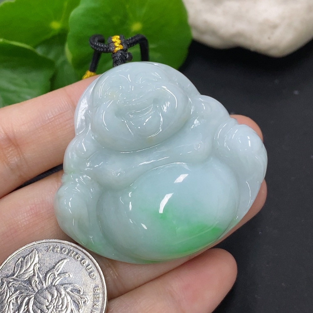Jadeite Buddha Pendant, Total Weight Including Rope Approximately 44.7g