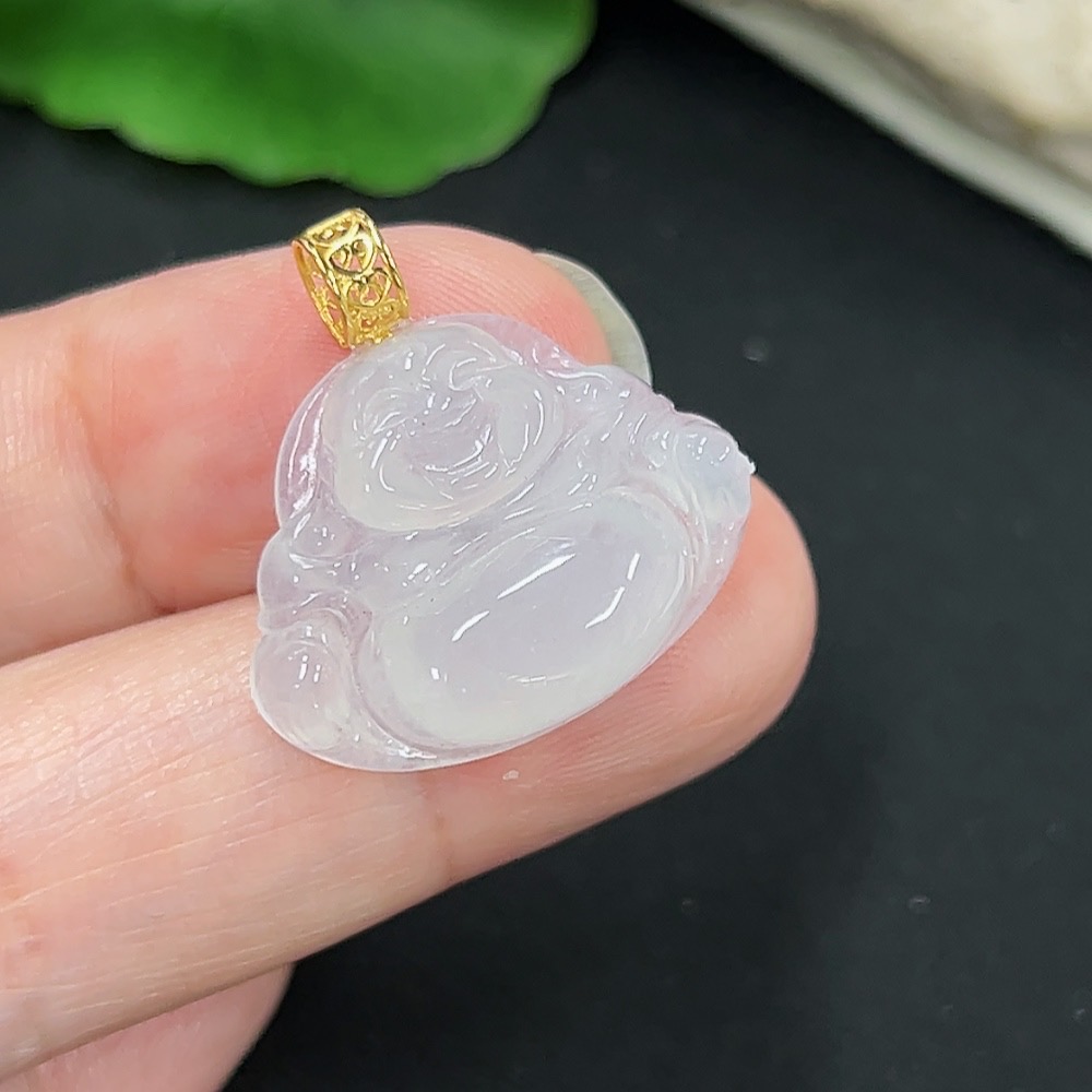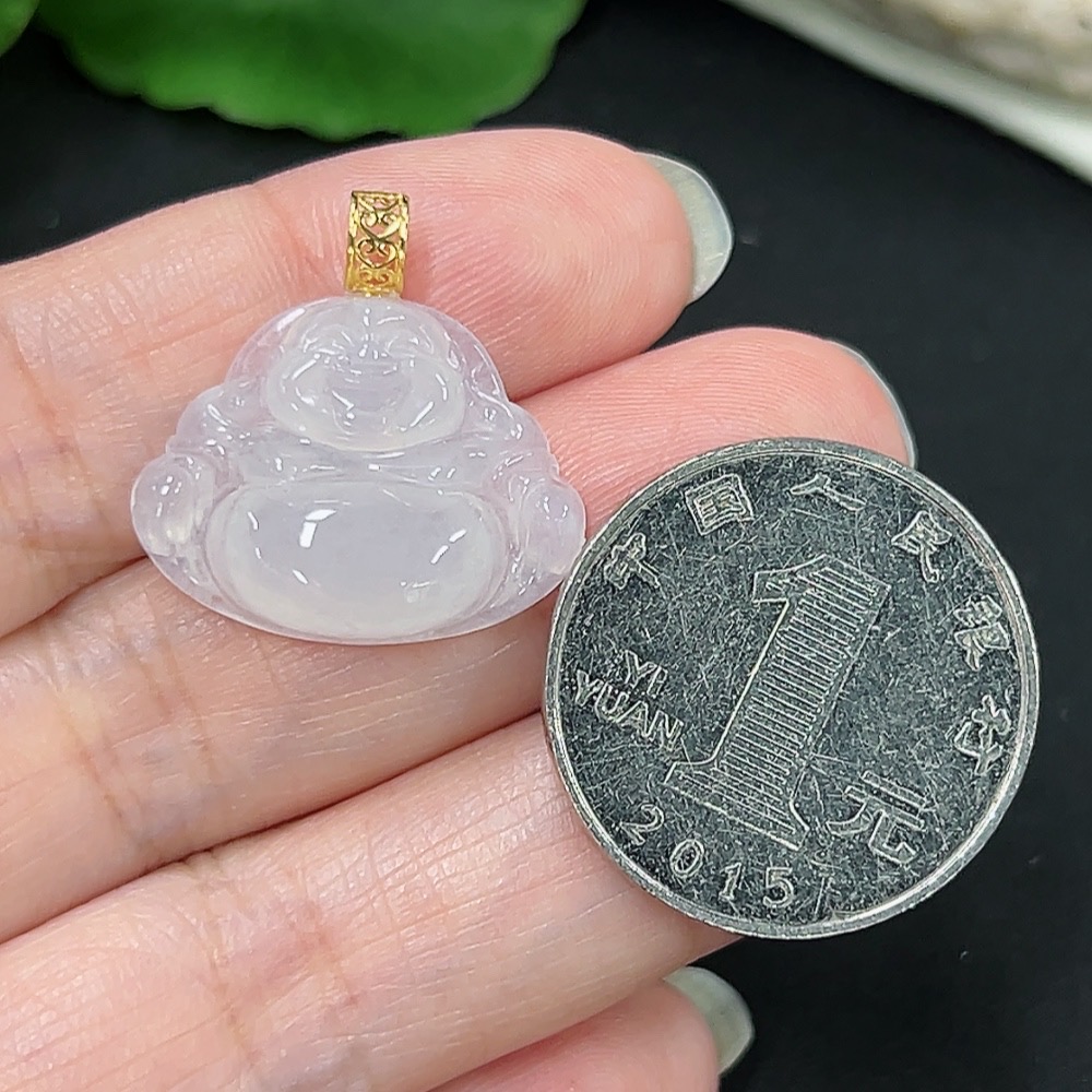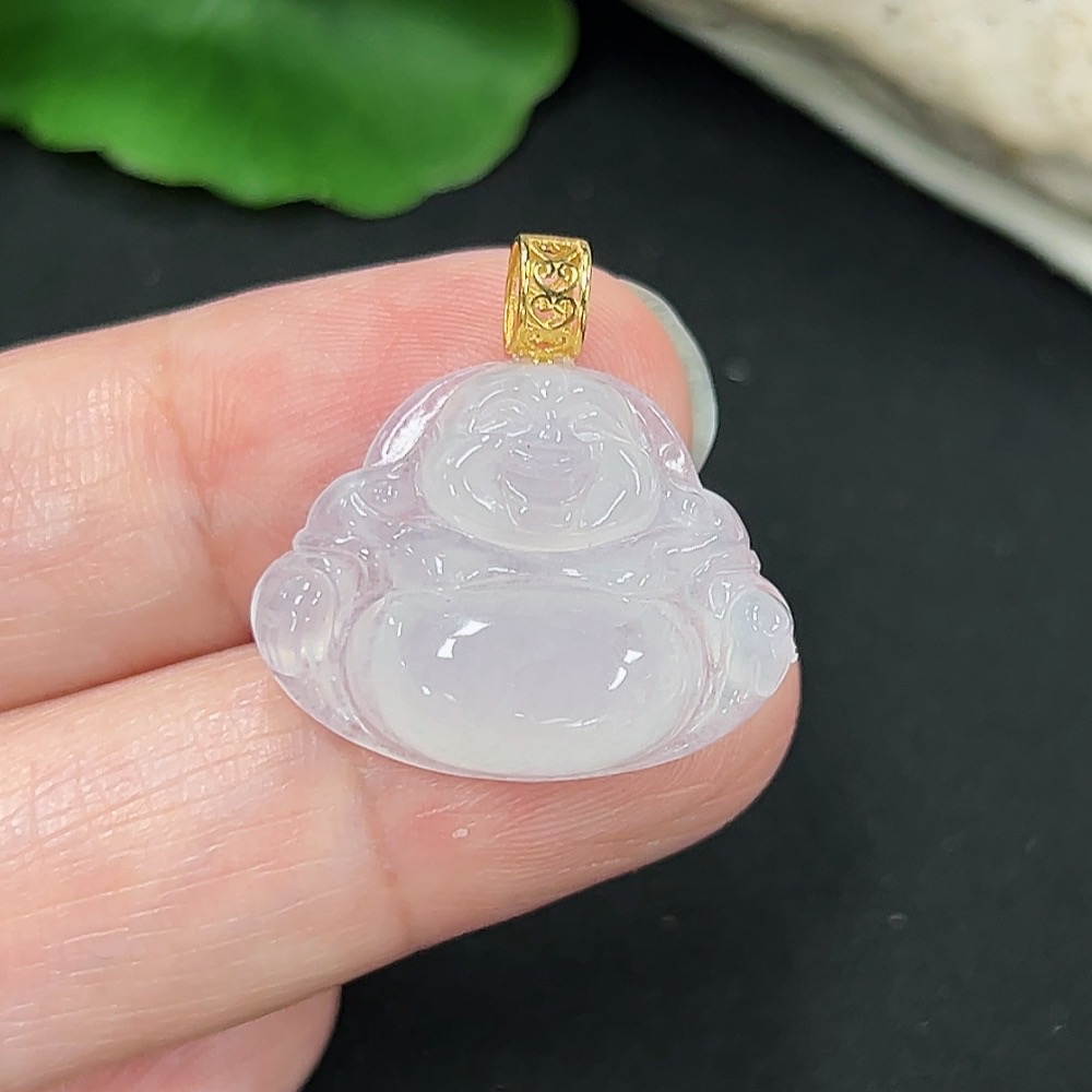 Jadeite Buddha Pendant with 18K Gold, Total Weight Approx. 3.08g