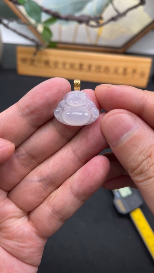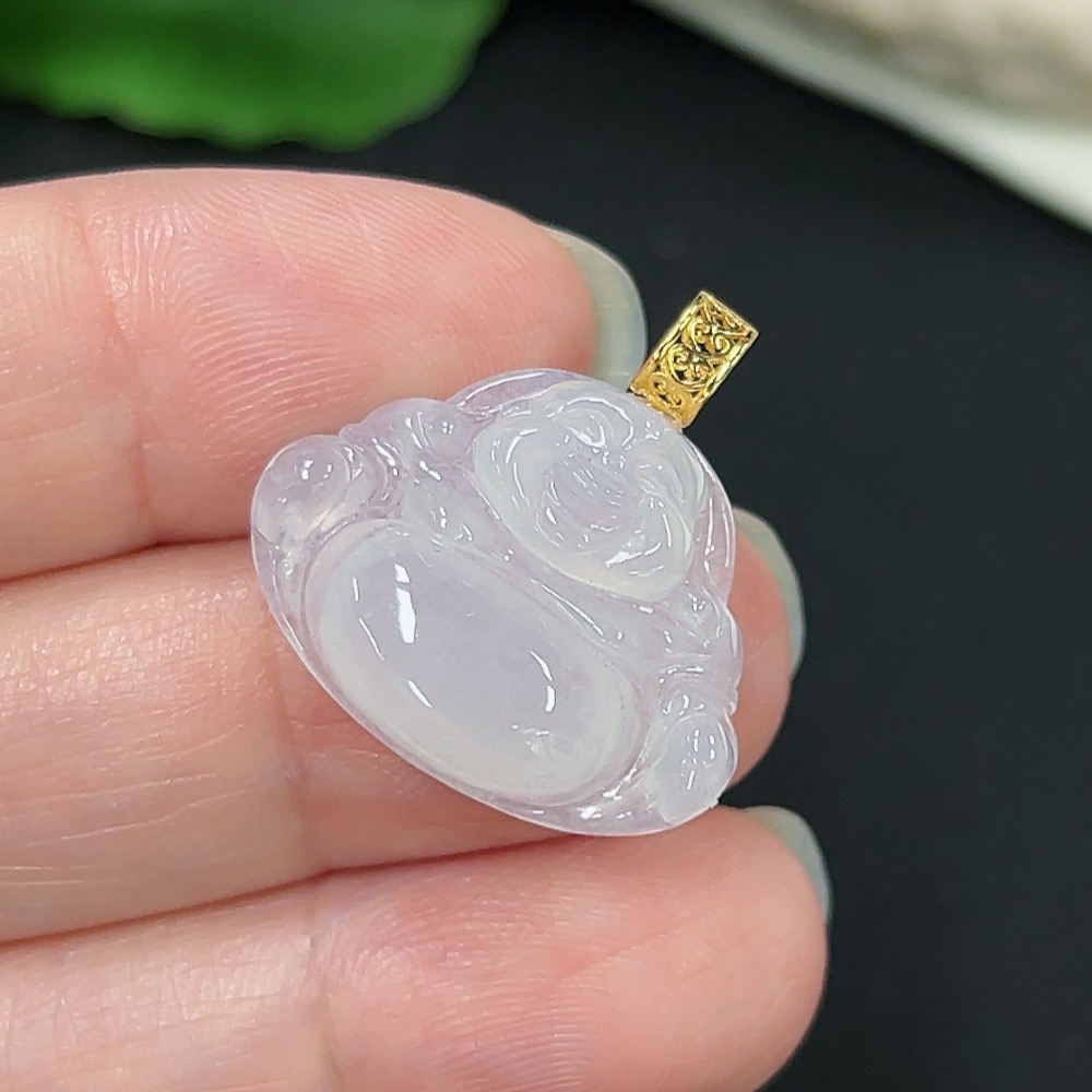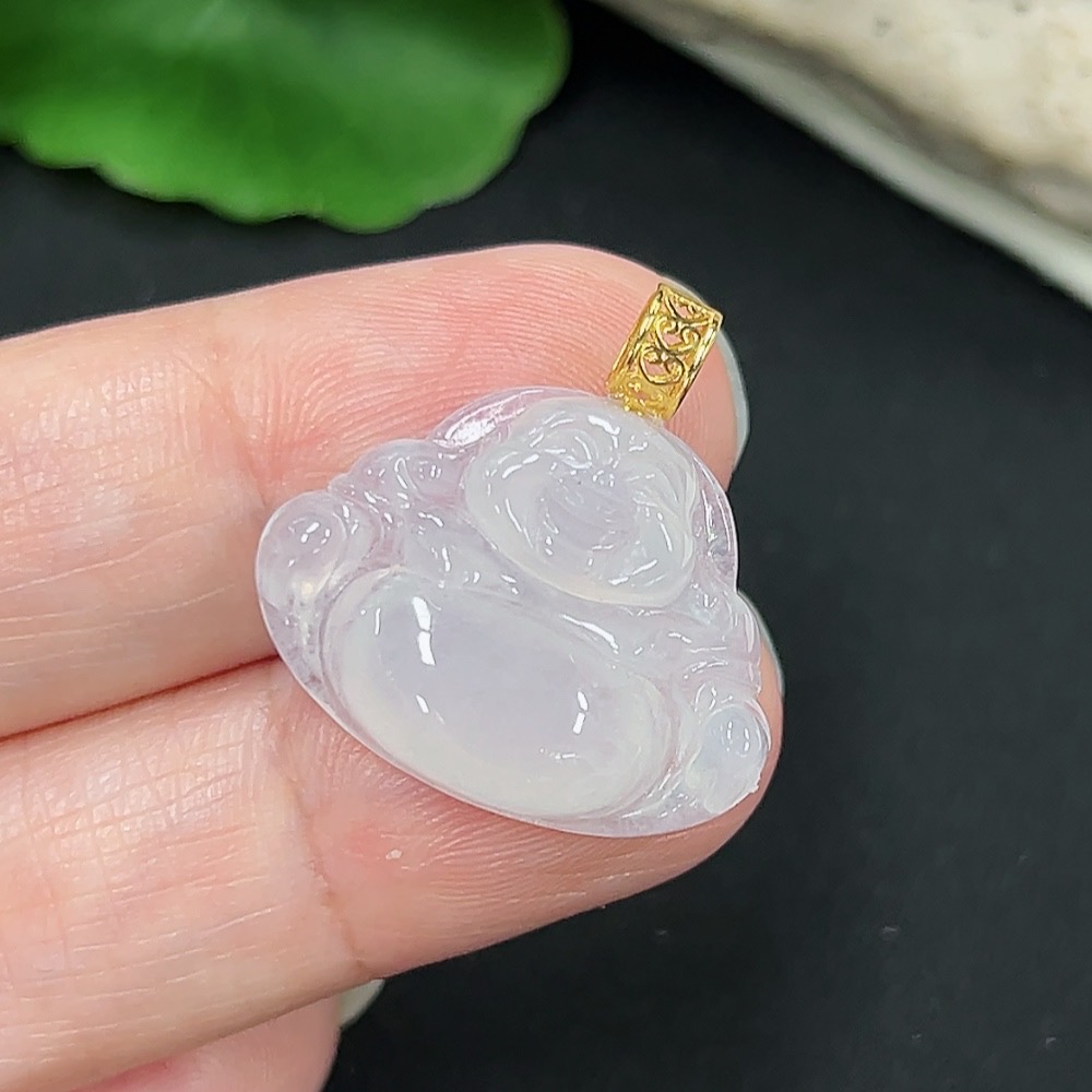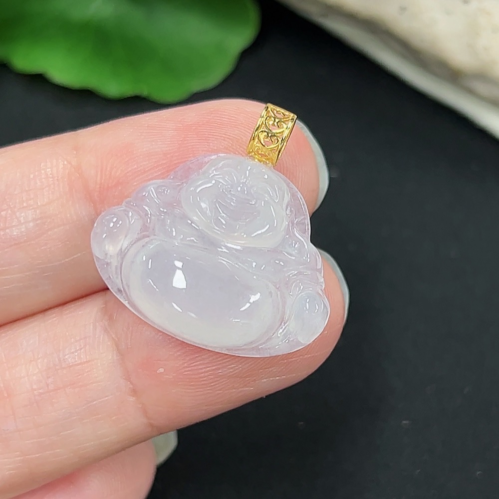 Jadeite Buddha Pendant with 18K Gold, Total Weight Approx. 3.08g