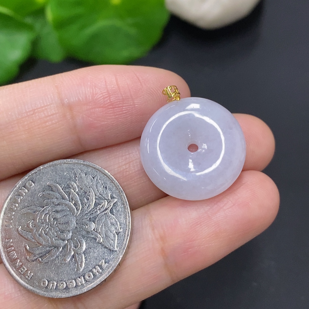 Jadeite Safety Pendant with 18K Gold Bezel, Total Weight Approximately 3.9g