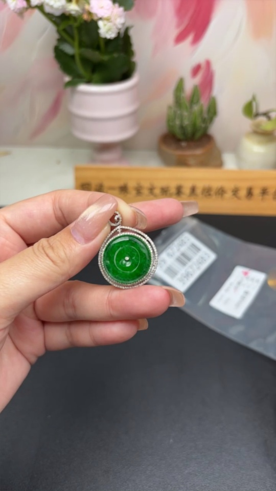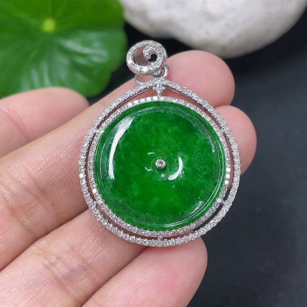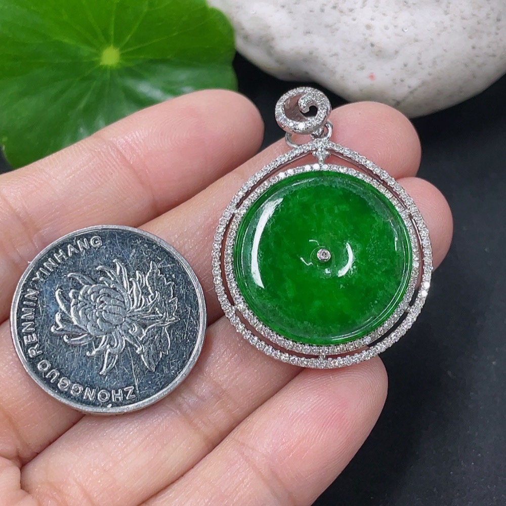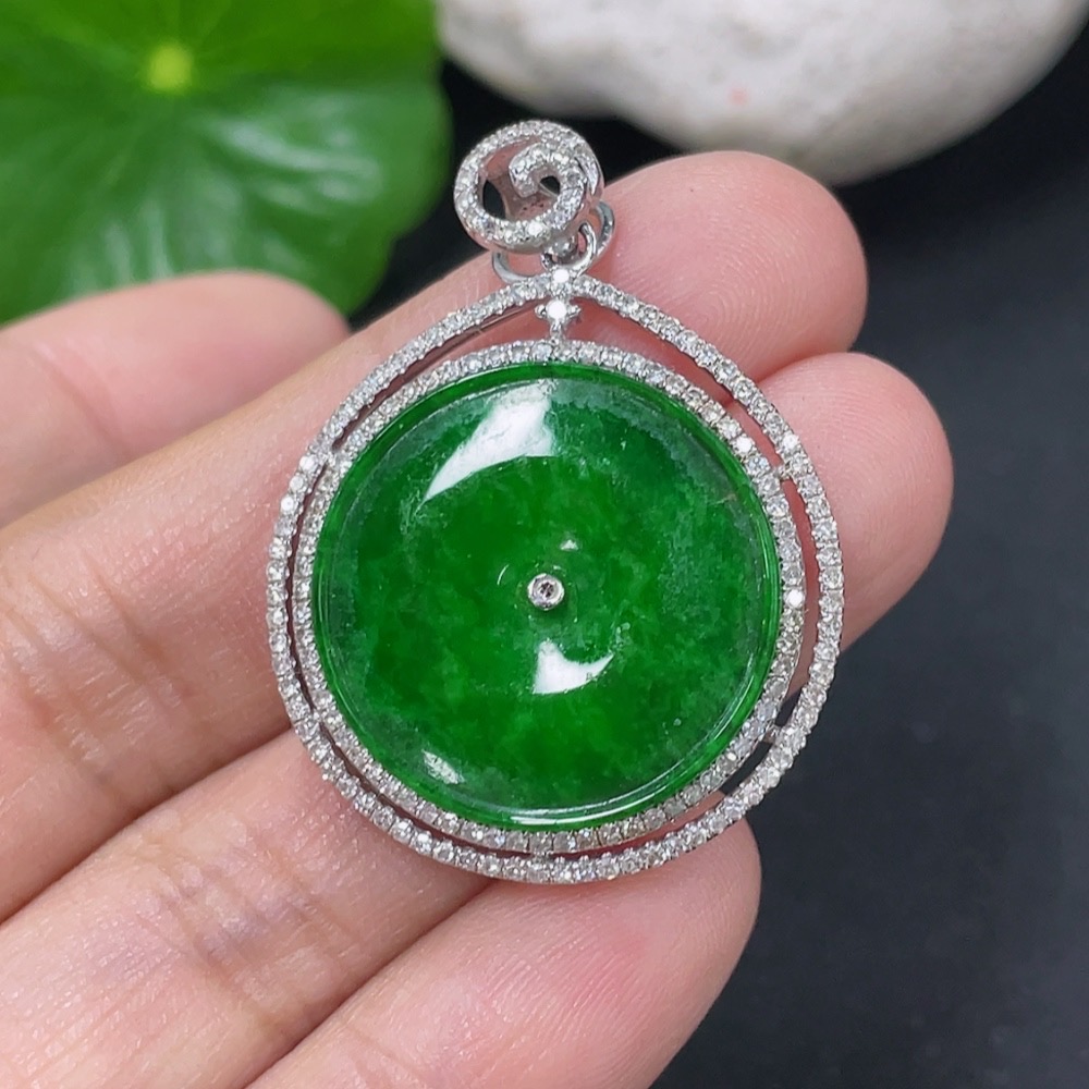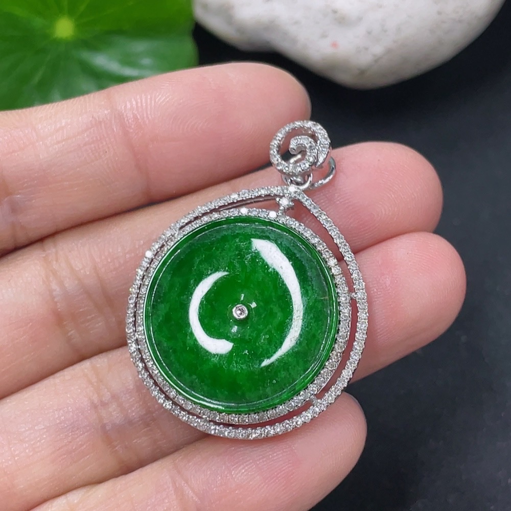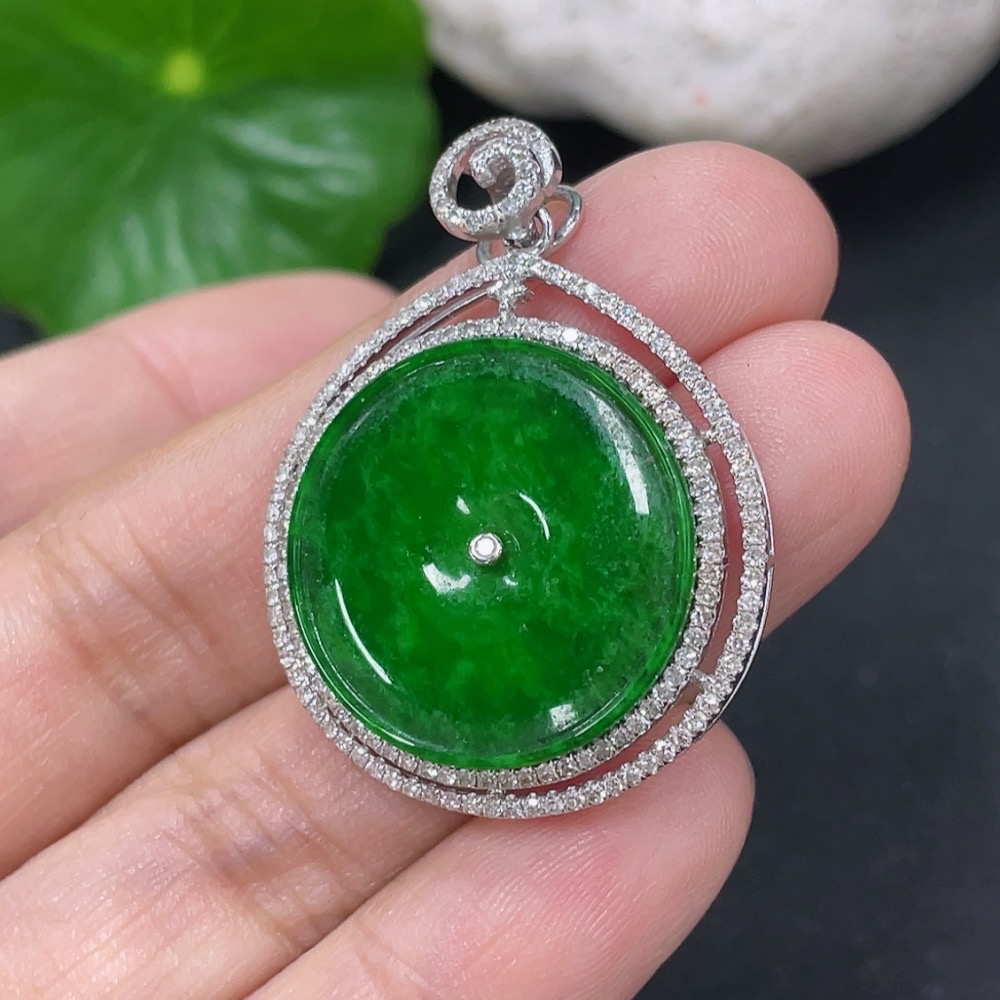 Jadeite Inlaid Peace Pendant with 18K Gold and Diamond Accents, Total Weight Approximately 5.11g, Contains Other Mineral Components