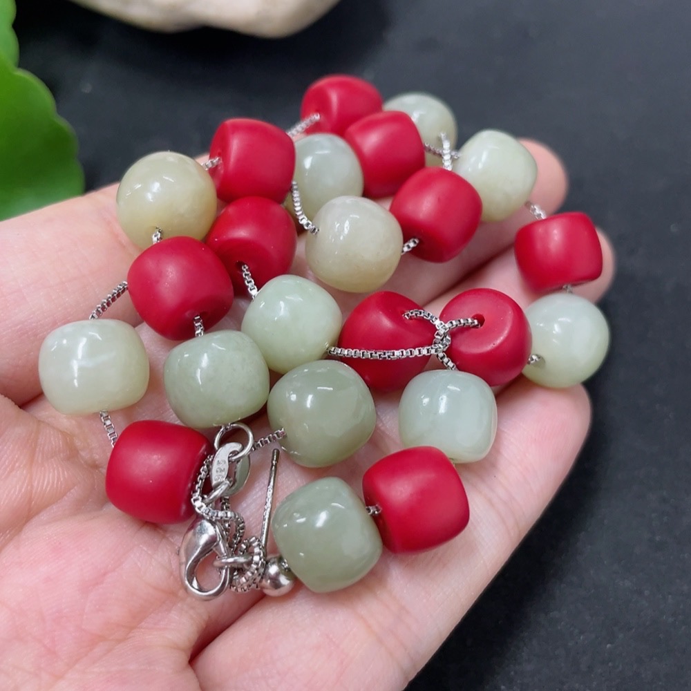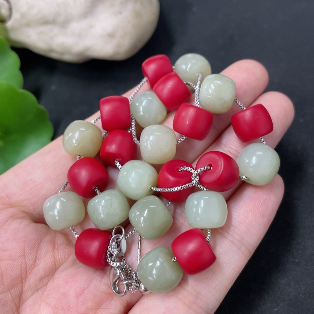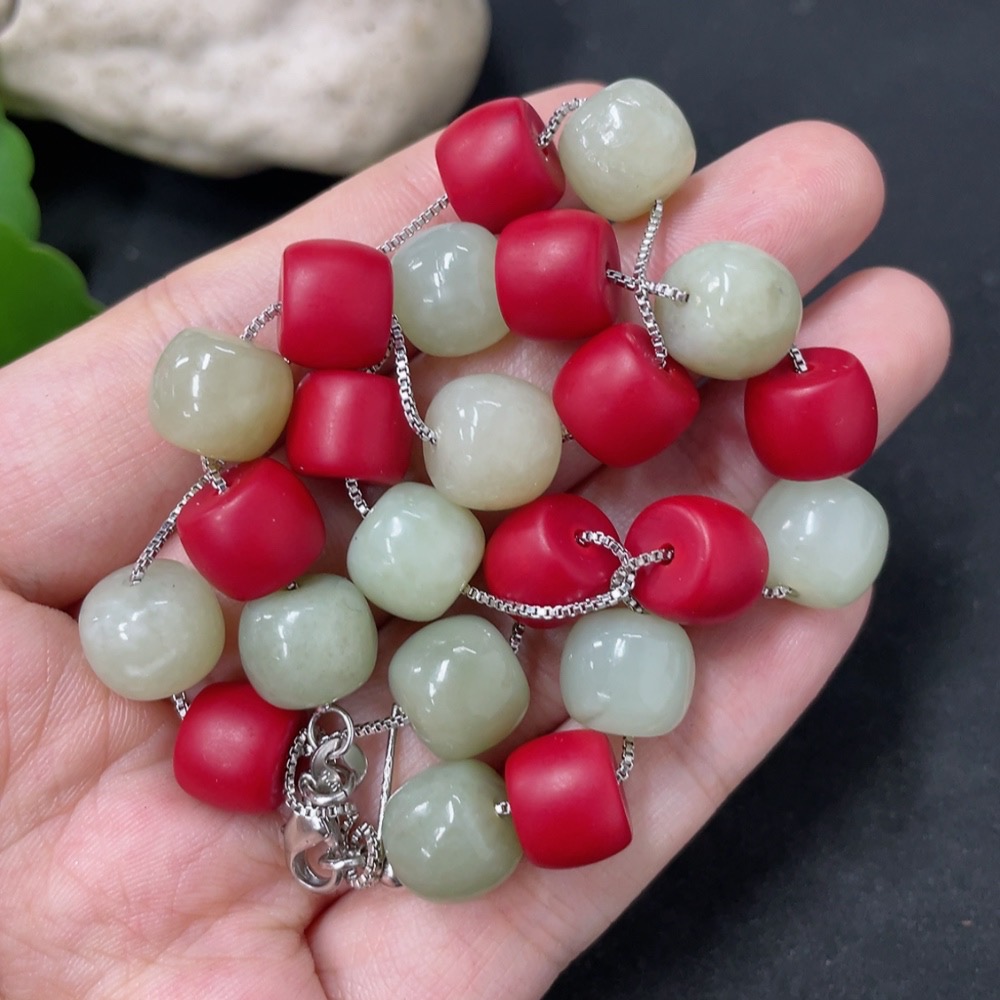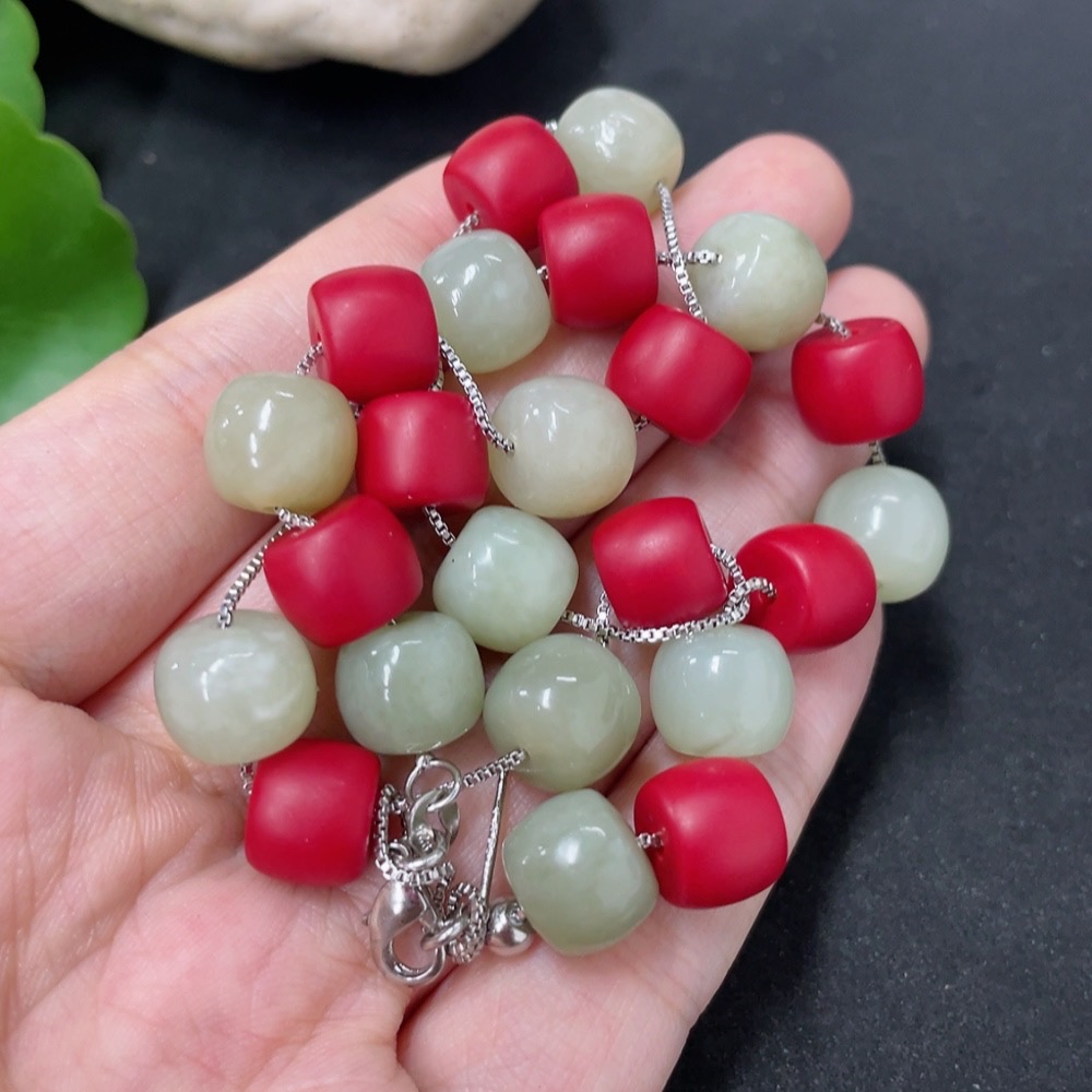 Hetian Jade Bead Necklace with Non-Hetian Jade Beads, Approximately 9.7mm, Non-Gold, Total Weight Approximately 36g