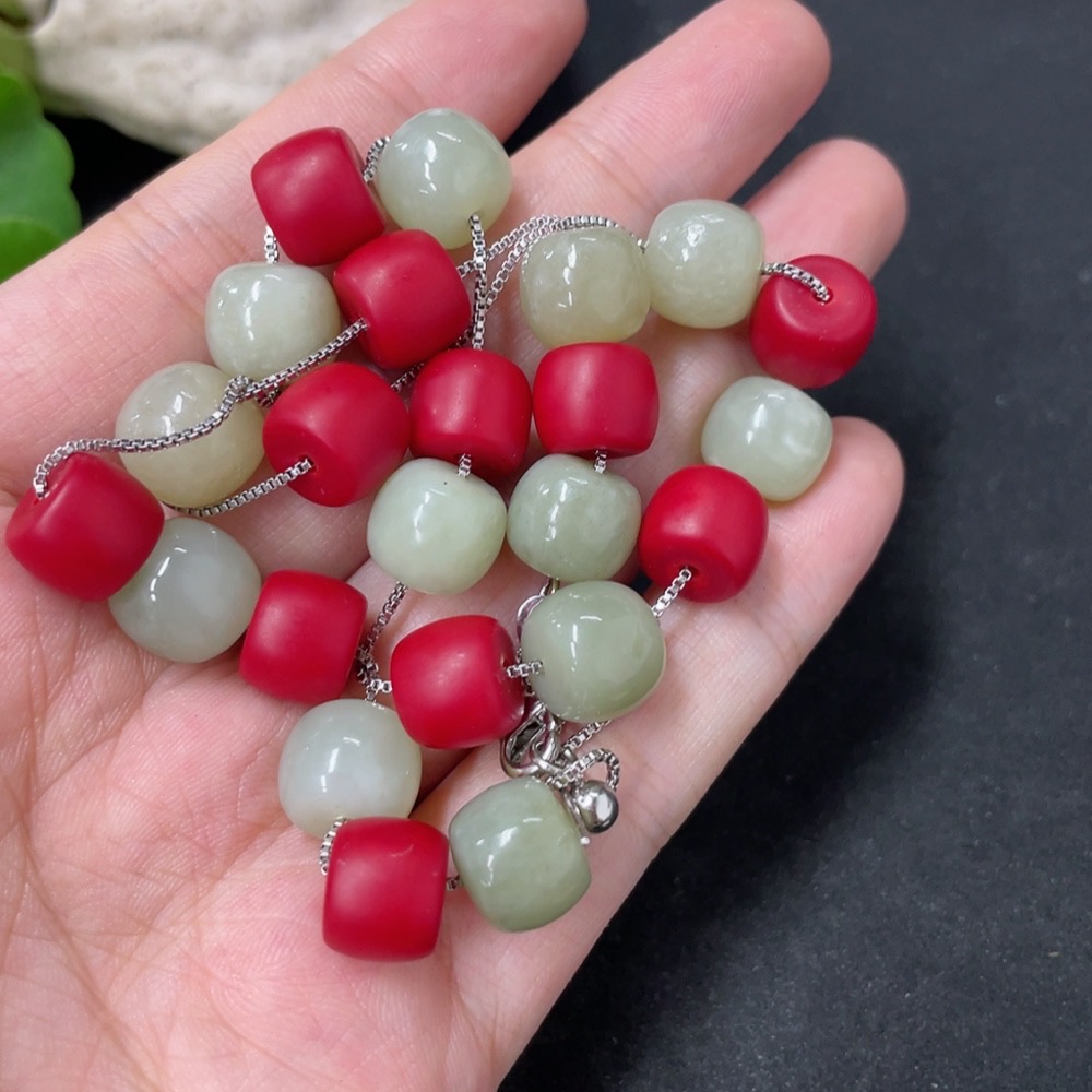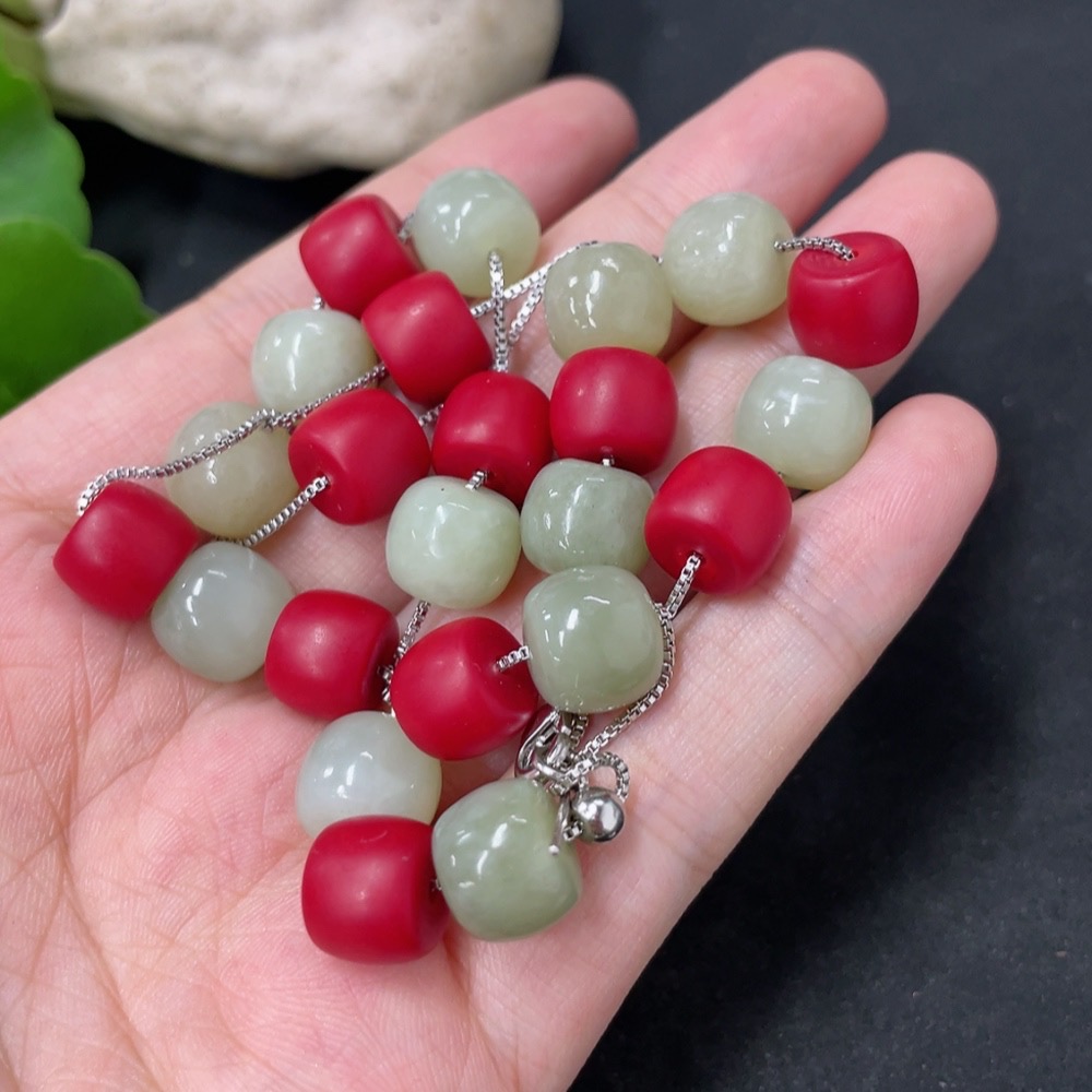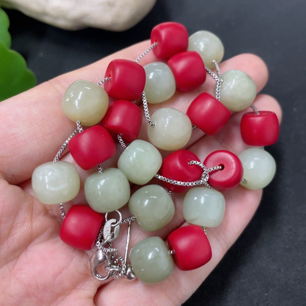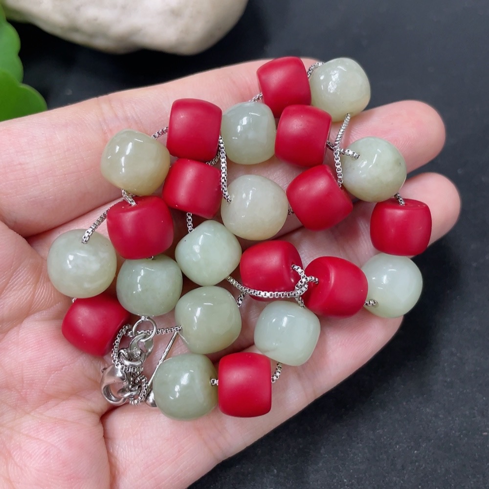 Hetian Jade Bead Necklace with Non-Hetian Jade Beads, Approximately 9.7mm, Non-Gold, Total Weight Approximately 36g