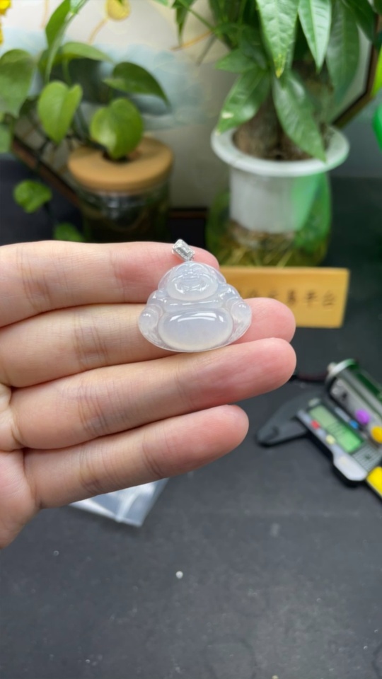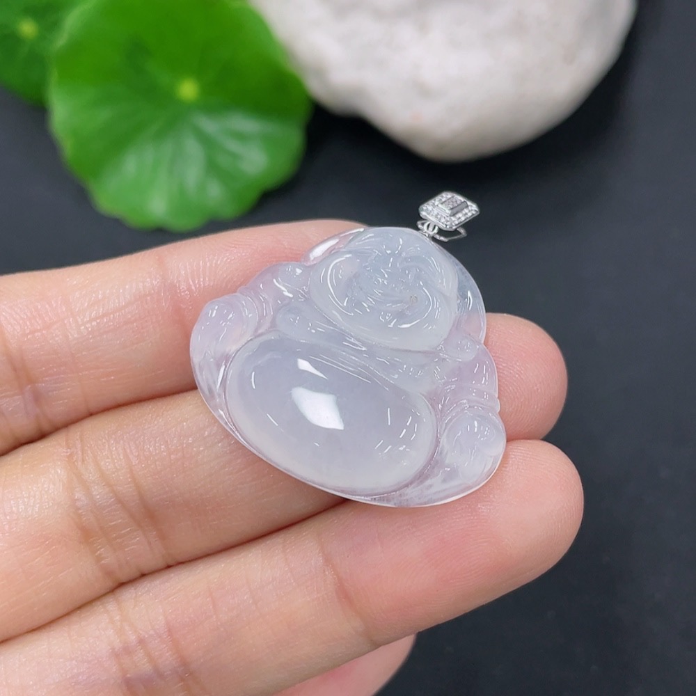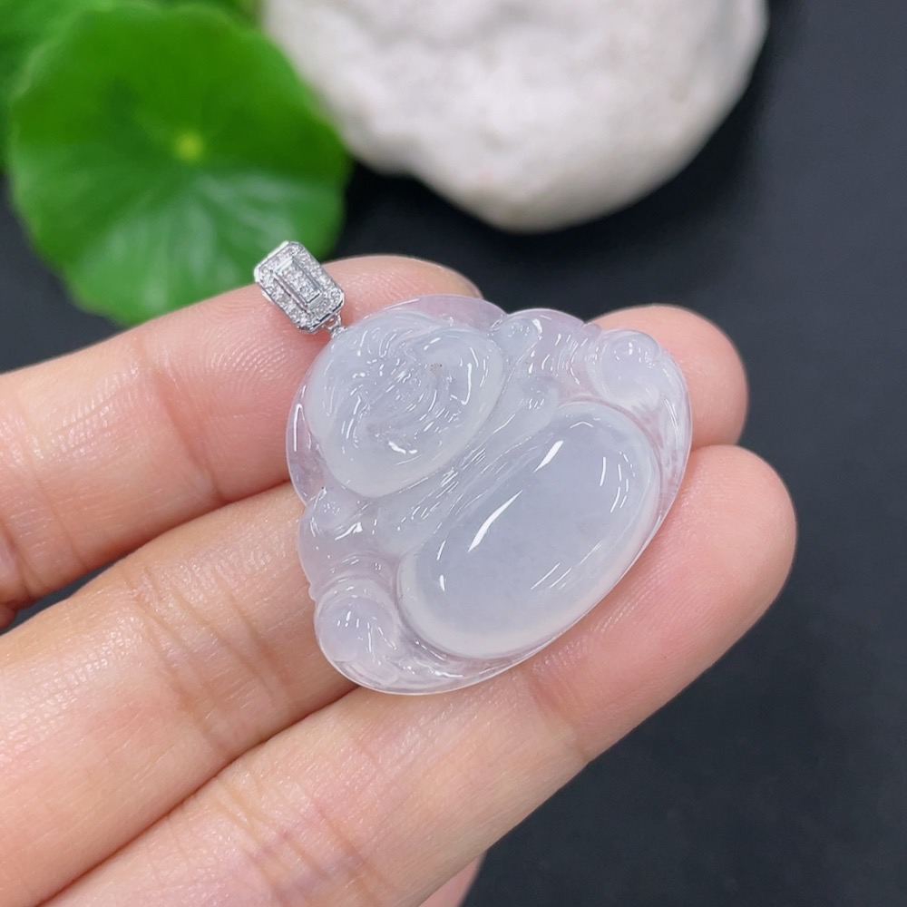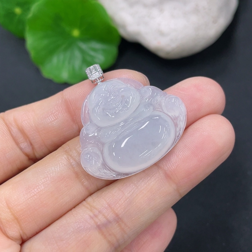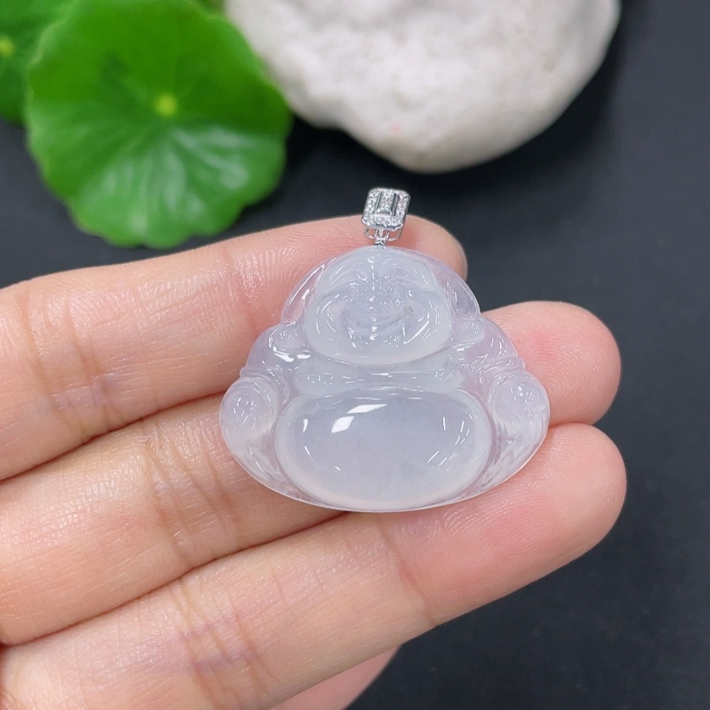 Jadeite Buddha Pendant with 18K Gold Clasp and Diamond Accents, Total Weight Approx. 6.12g