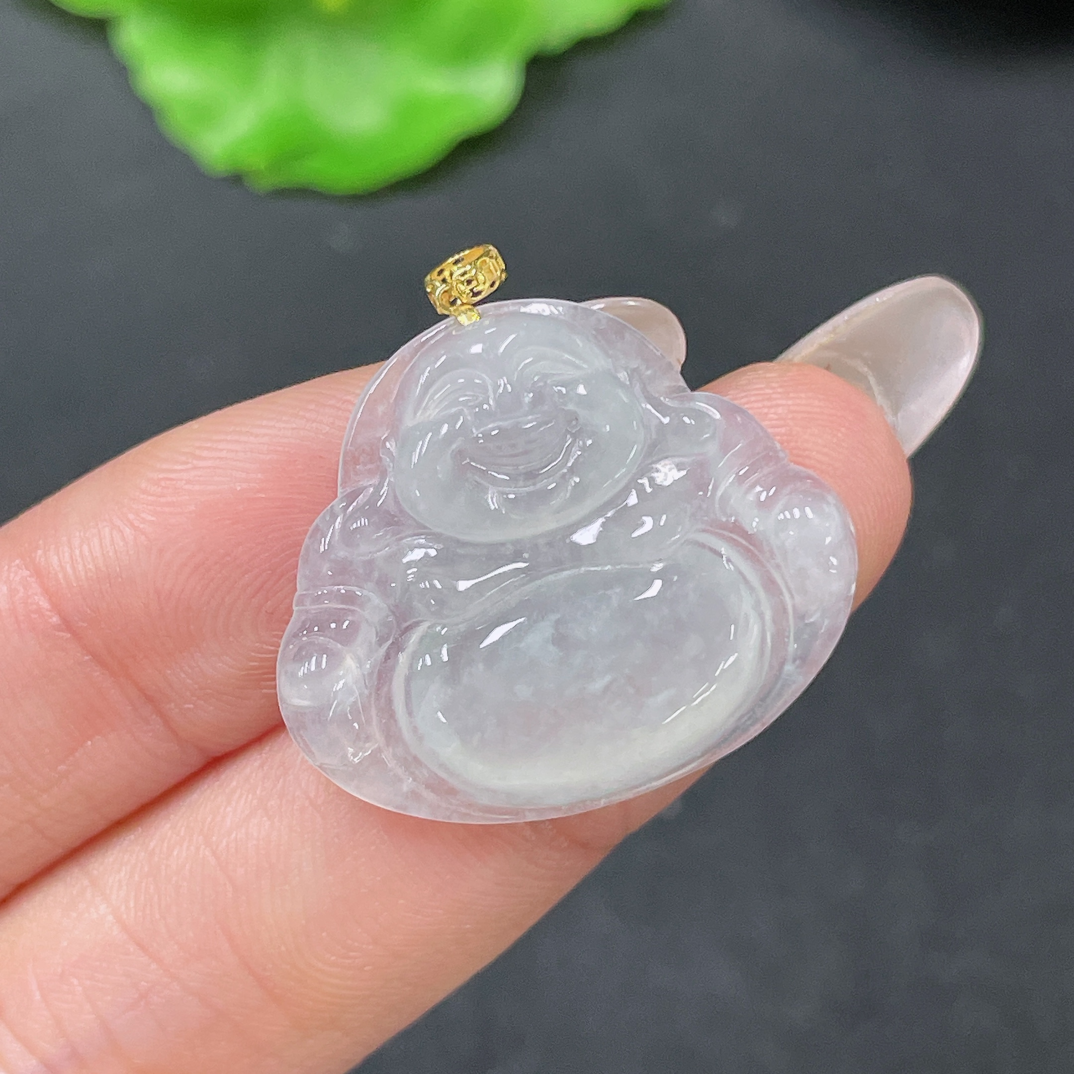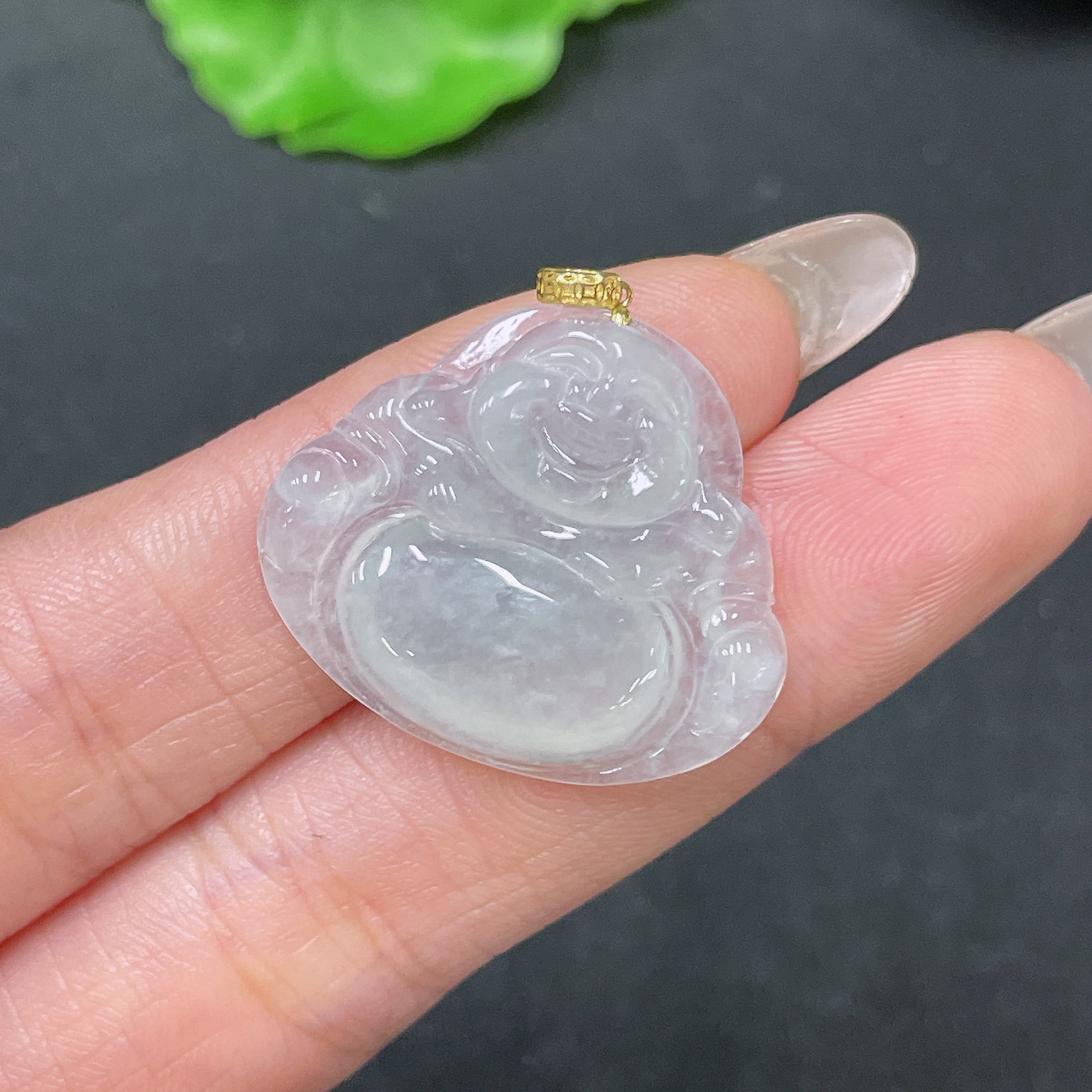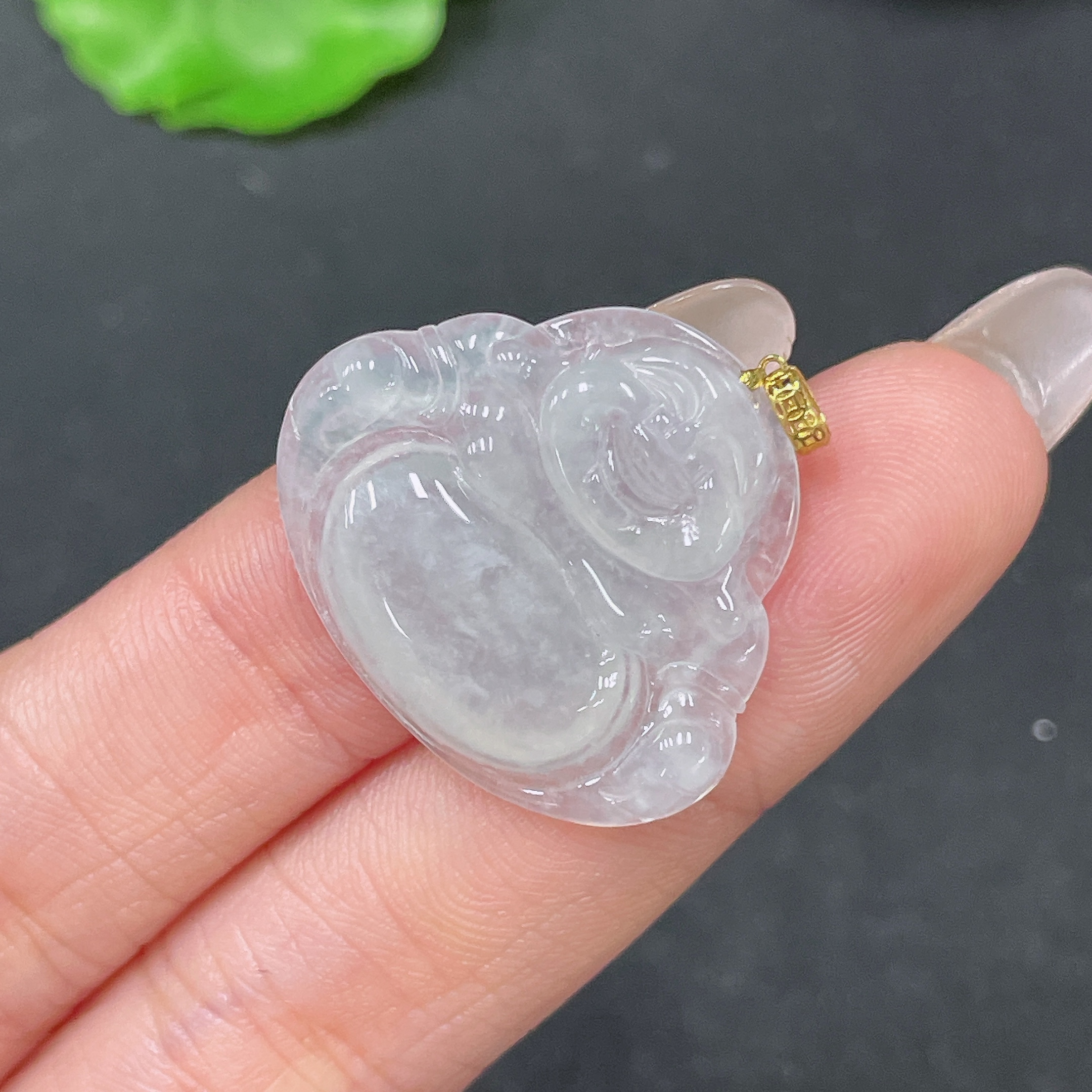 Jadeite Pendant Buddha with 18K Bail, Total Weight Approx. 4g