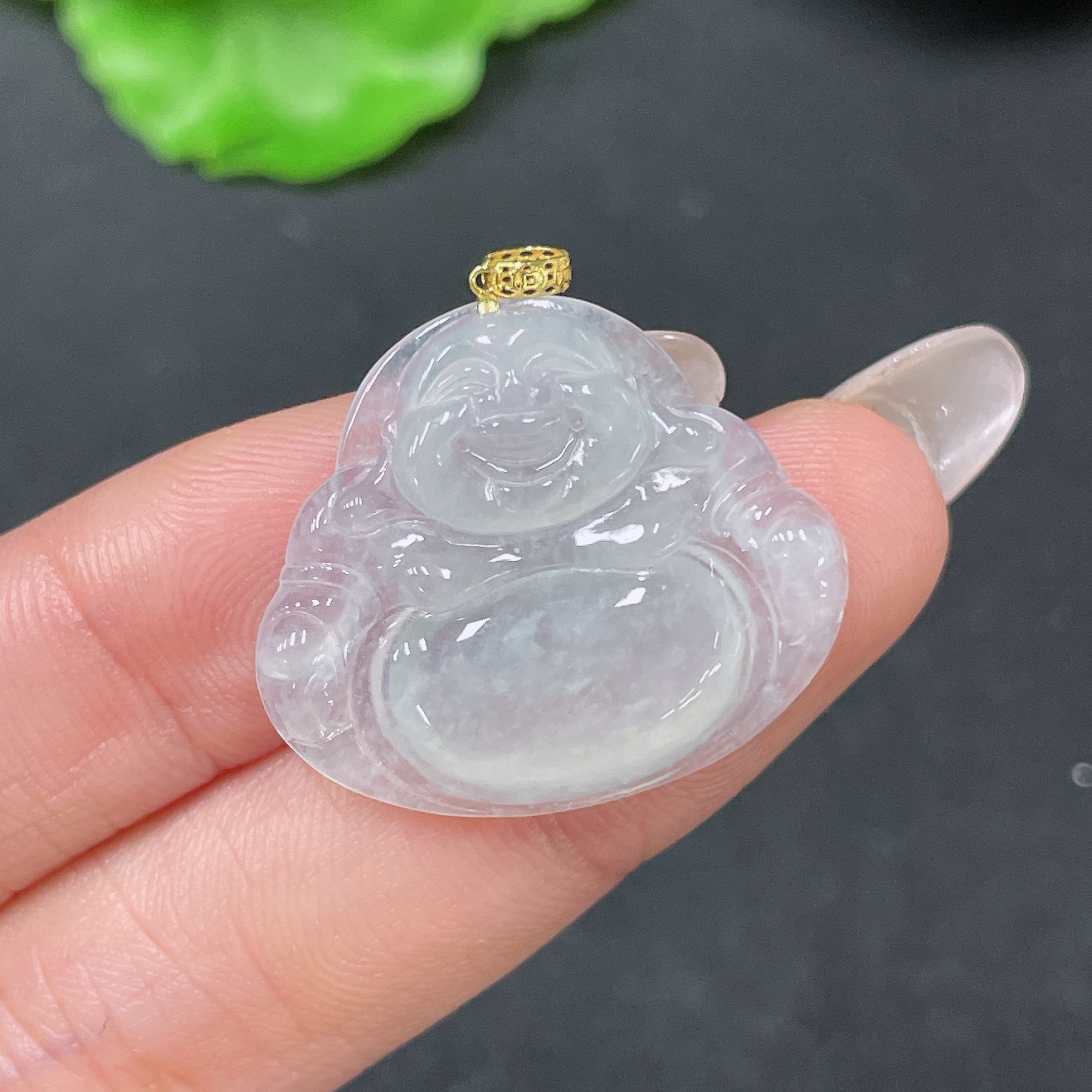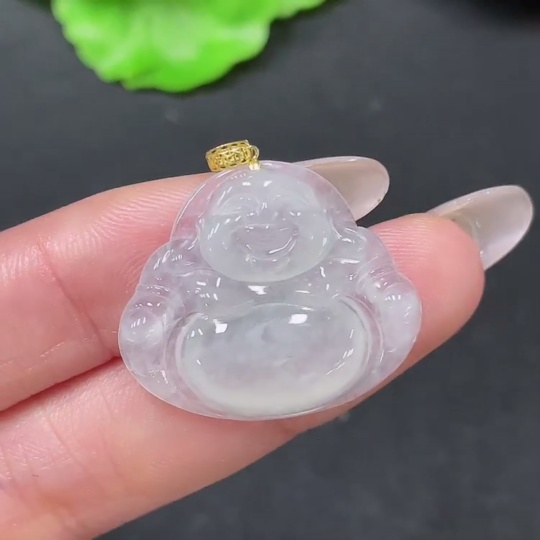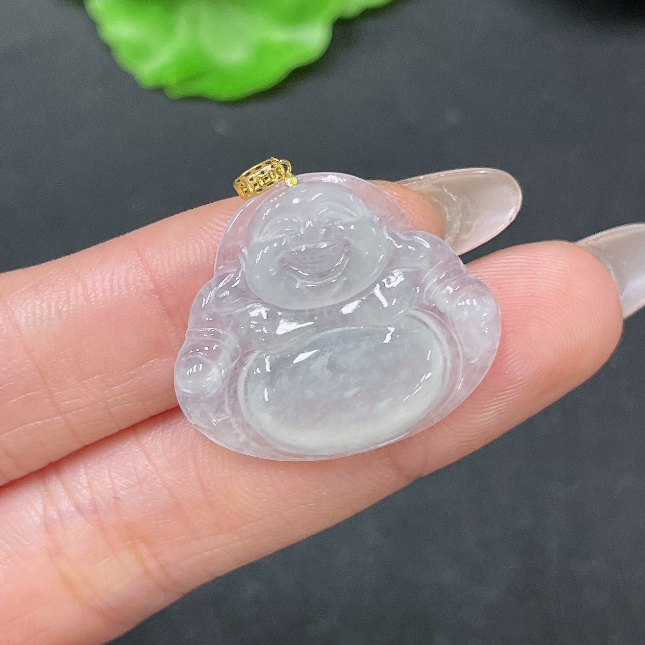 Jadeite Pendant Buddha with 18K Bail, Total Weight Approx. 4g