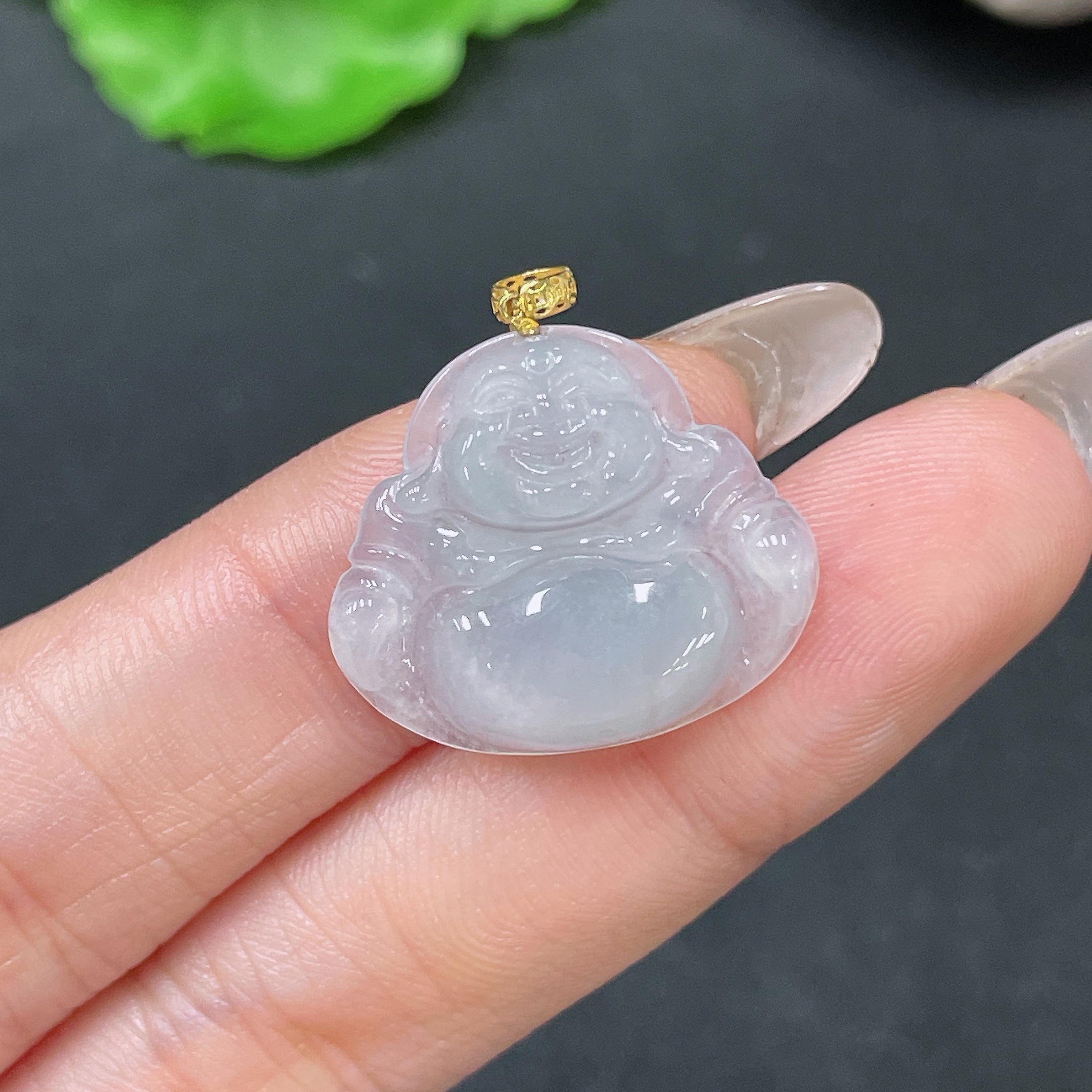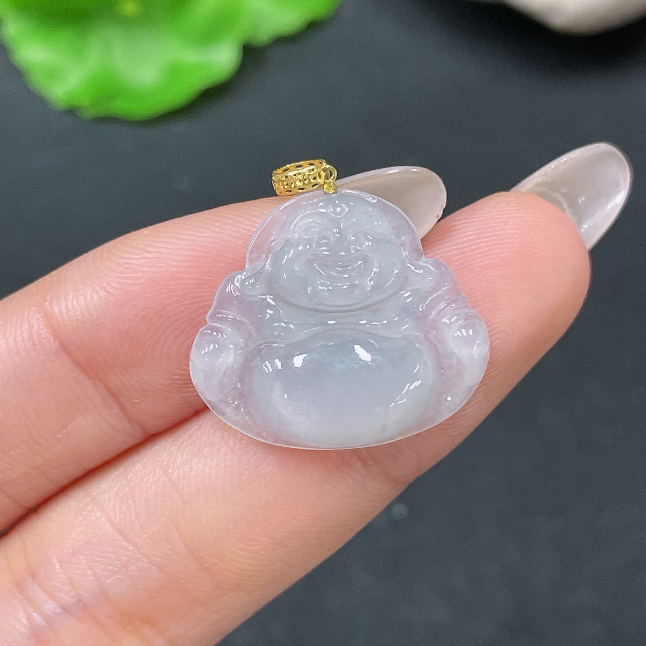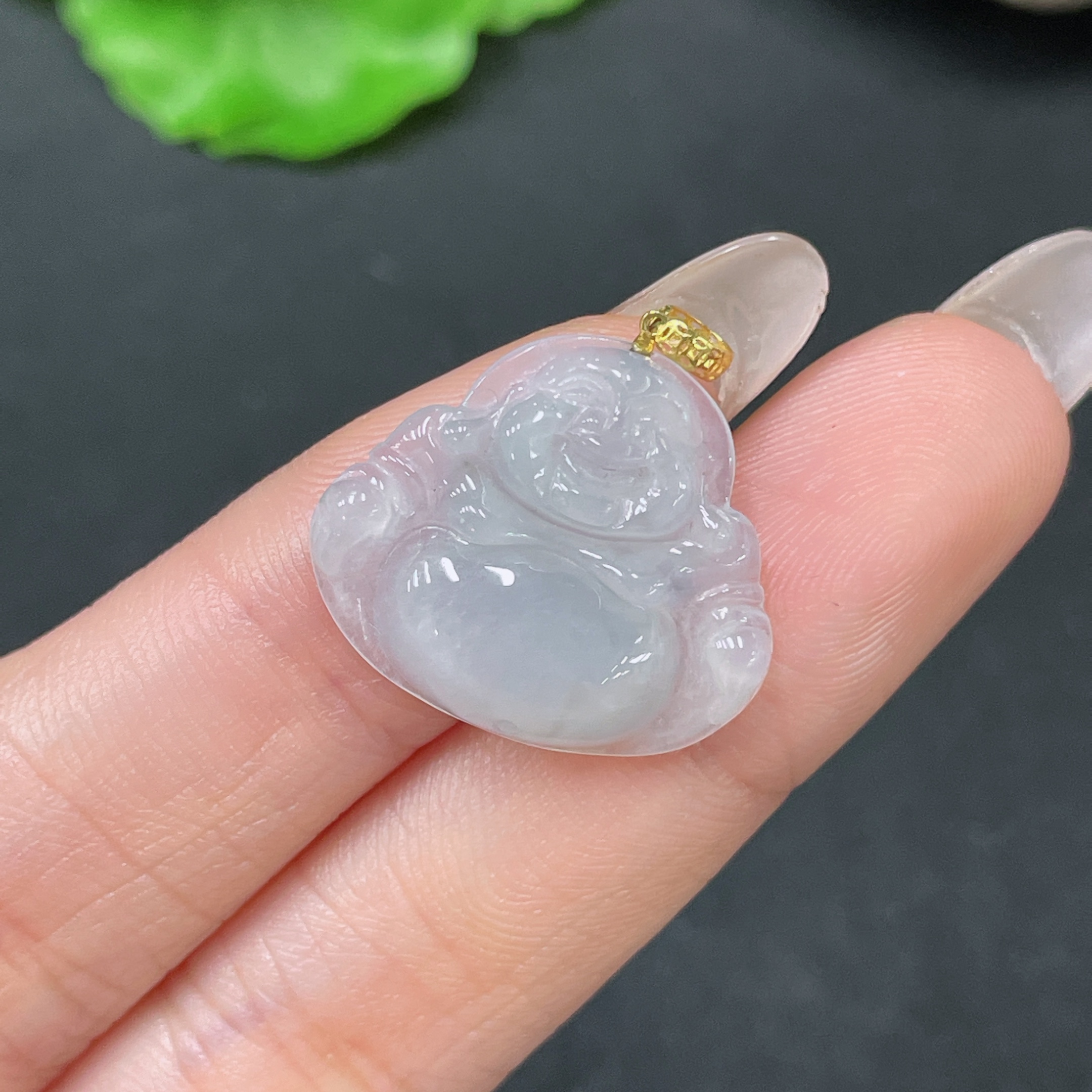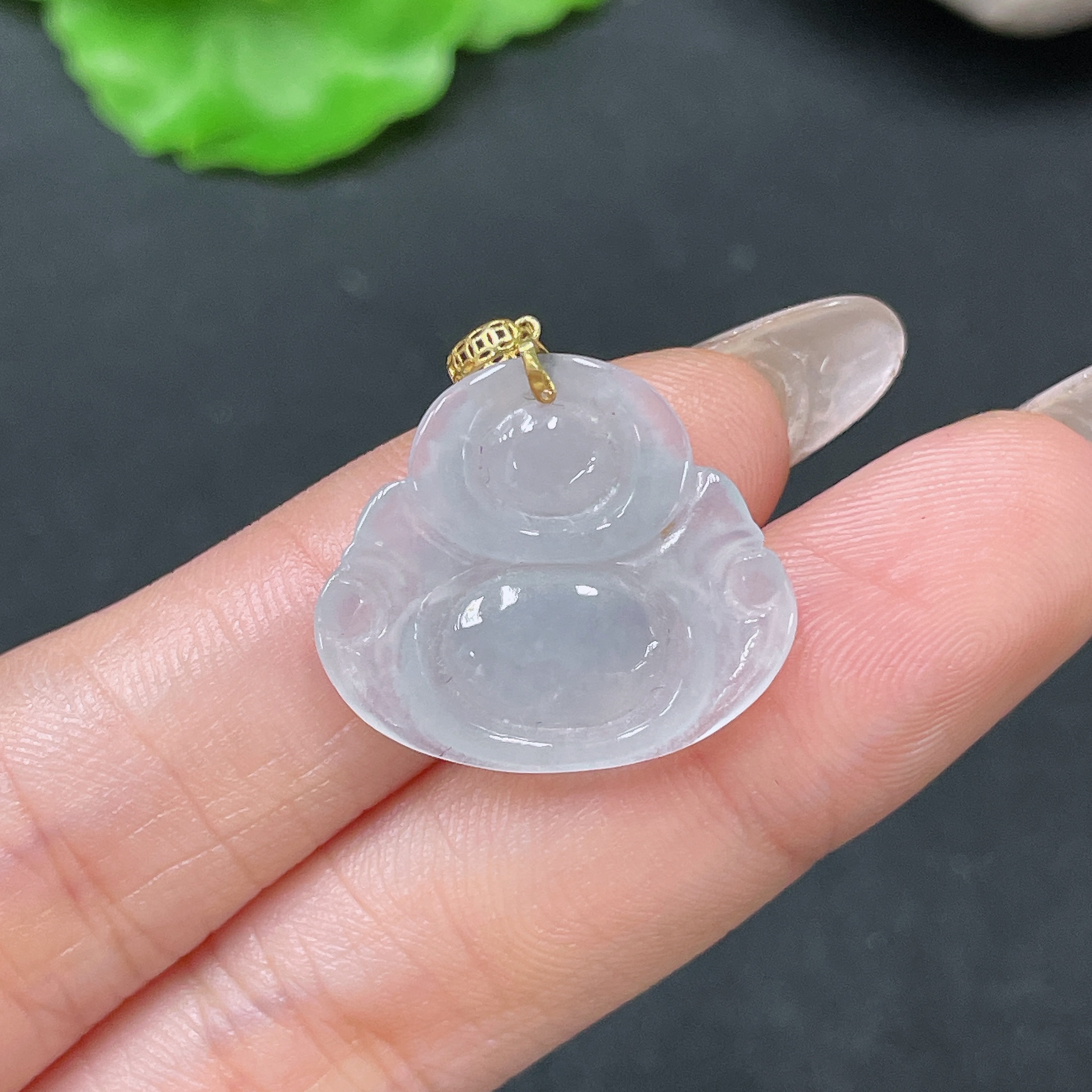 Jadeite Pendant Buddha with 18K Clasp, Total Weight Approx. 2.44g