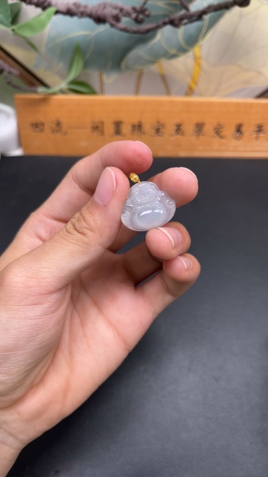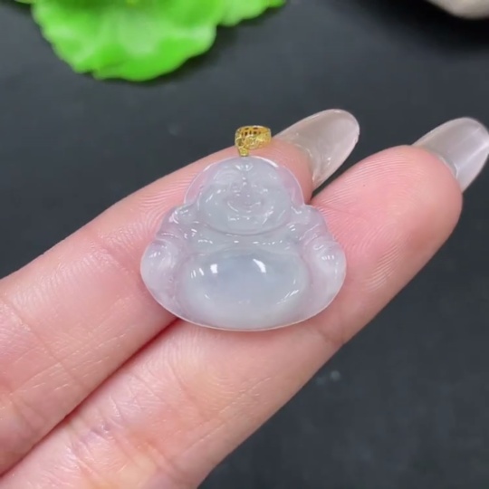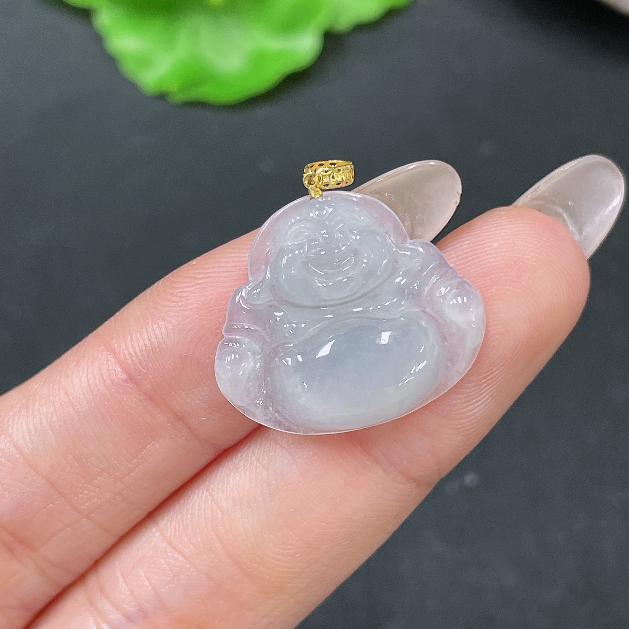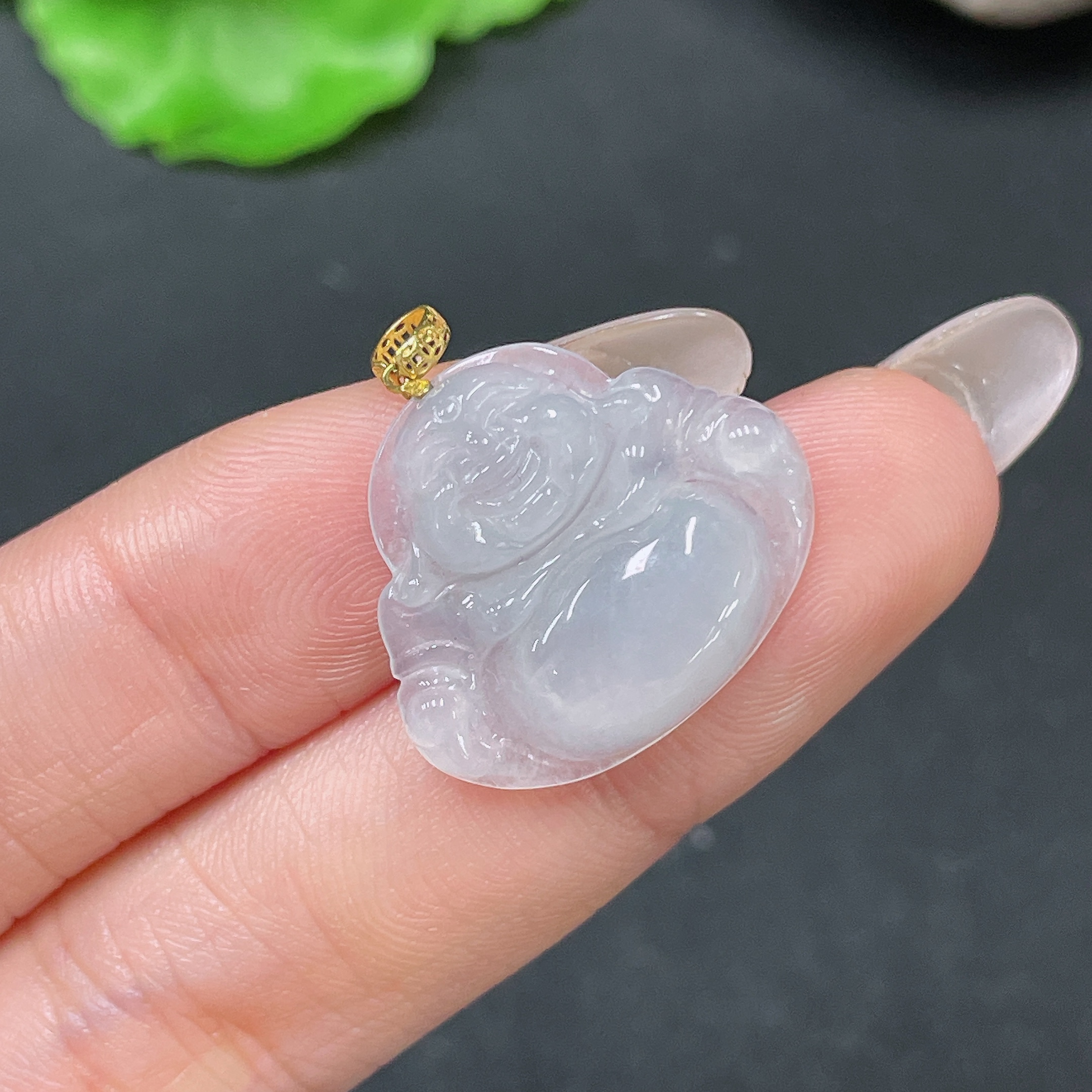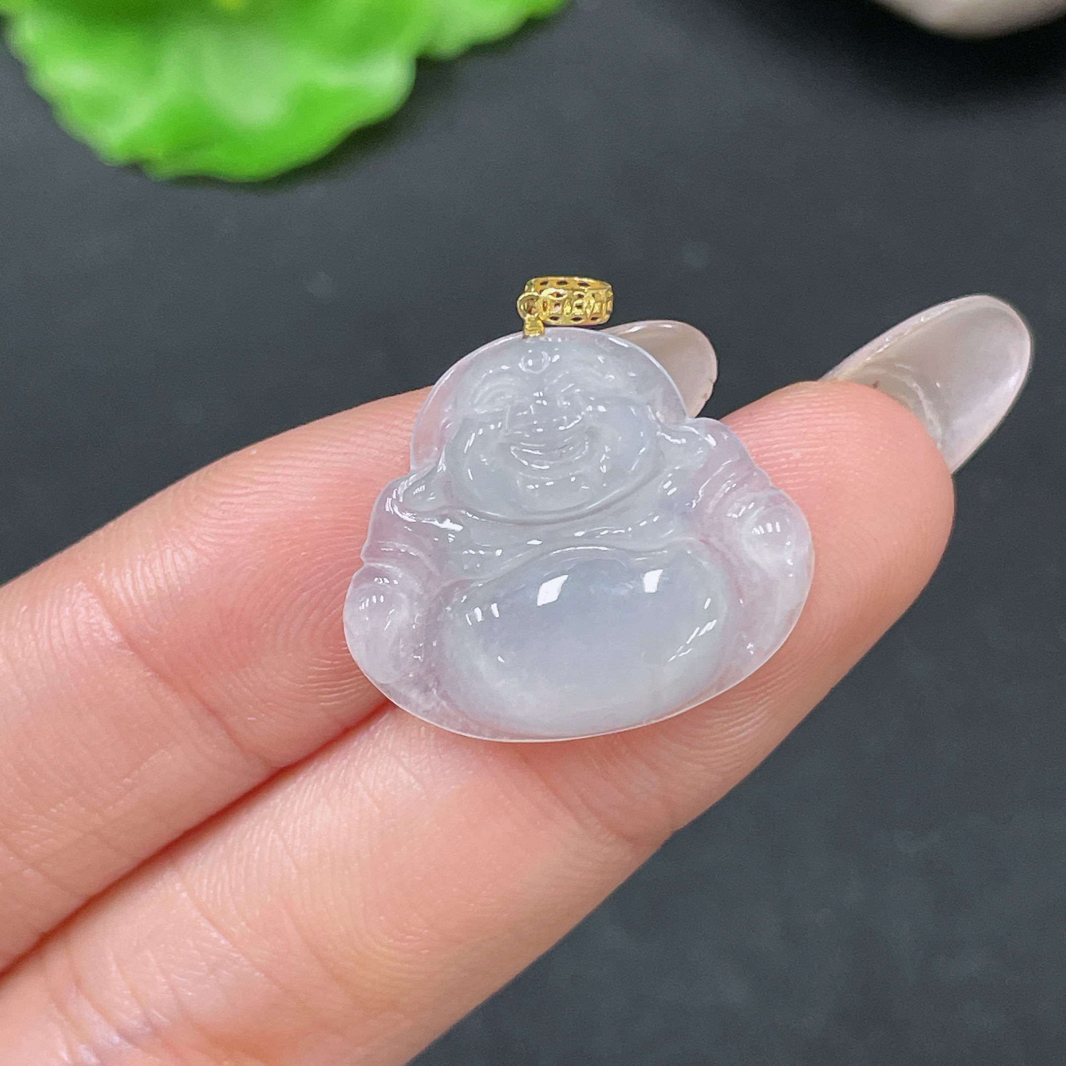 Jadeite Pendant Buddha with 18K Clasp, Total Weight Approx. 2.44g