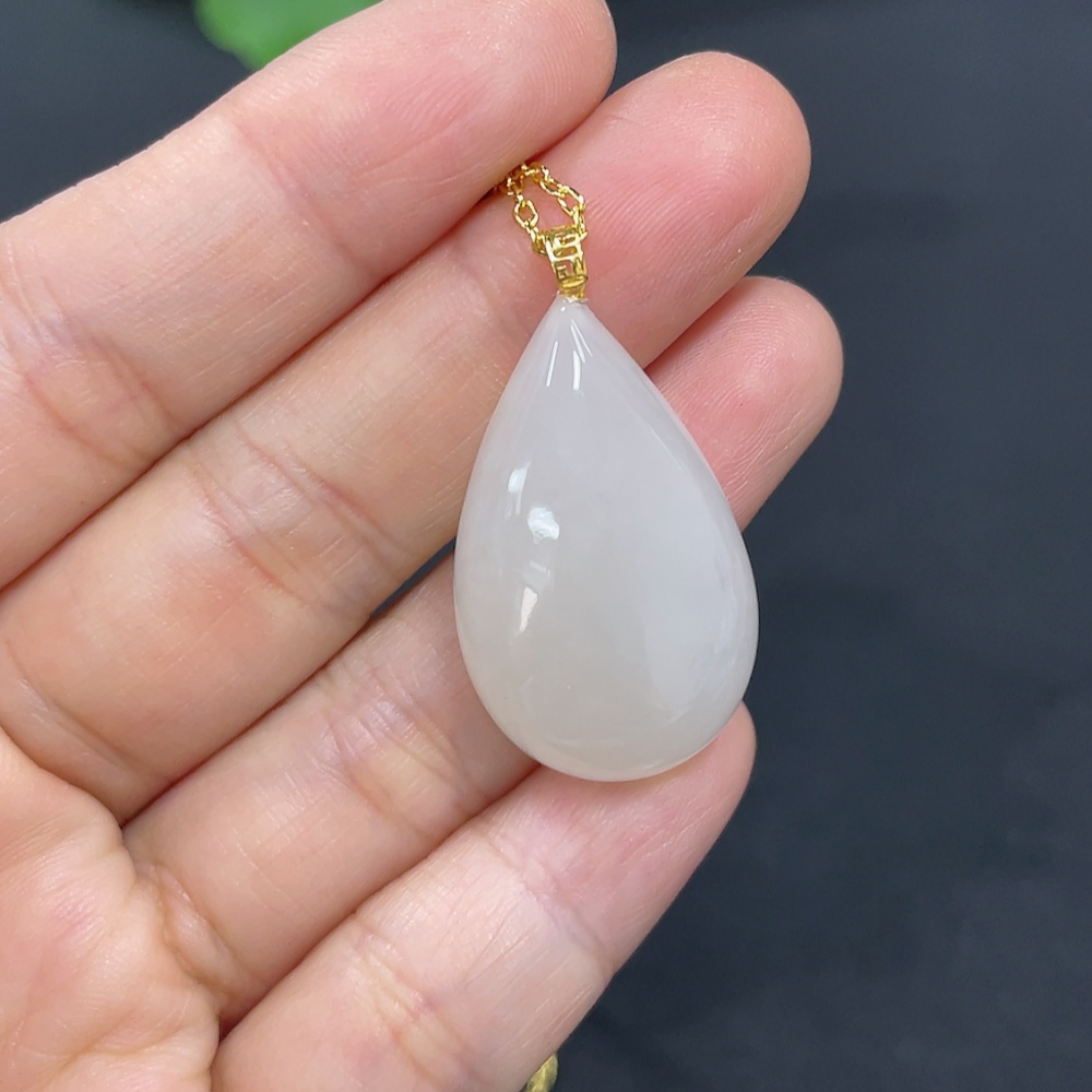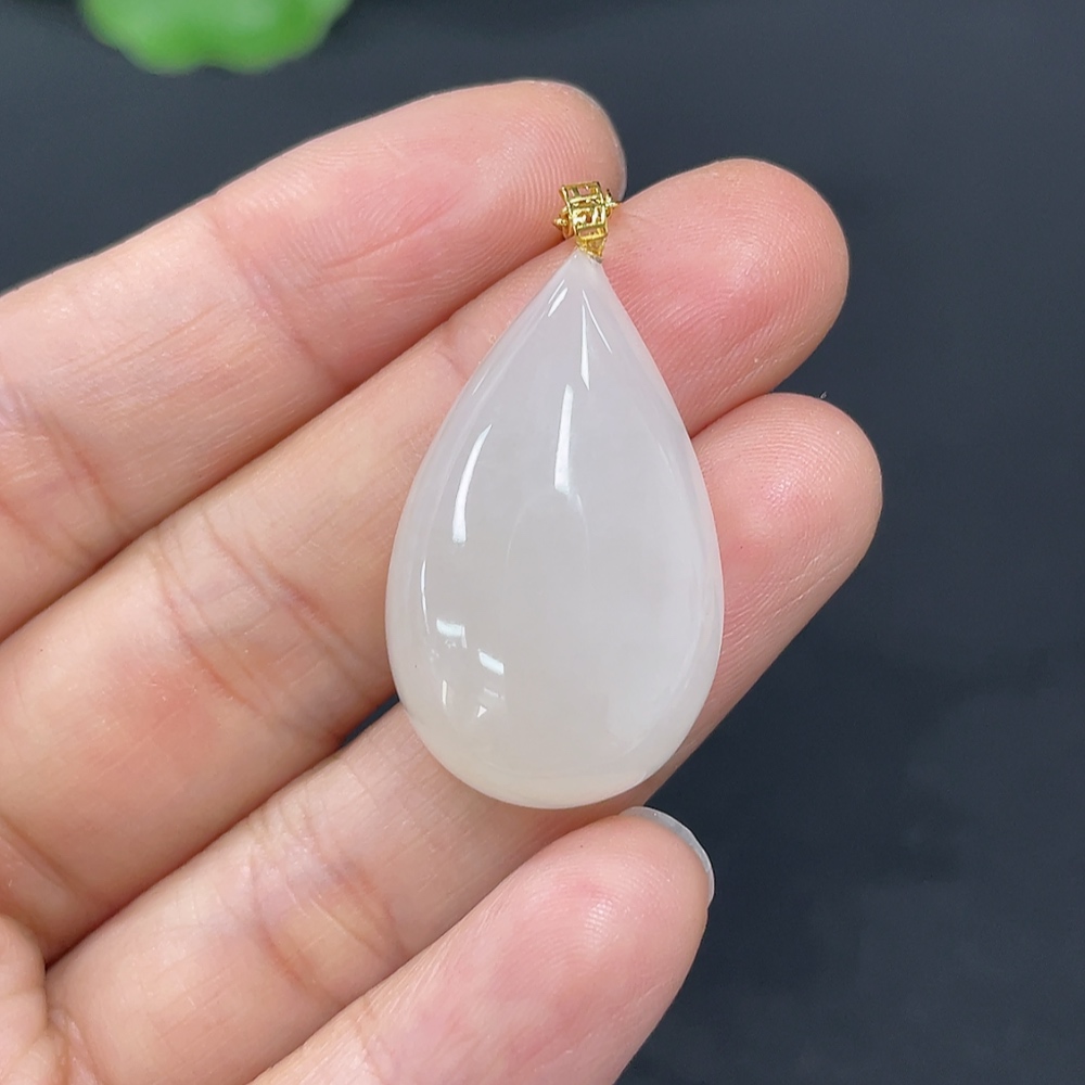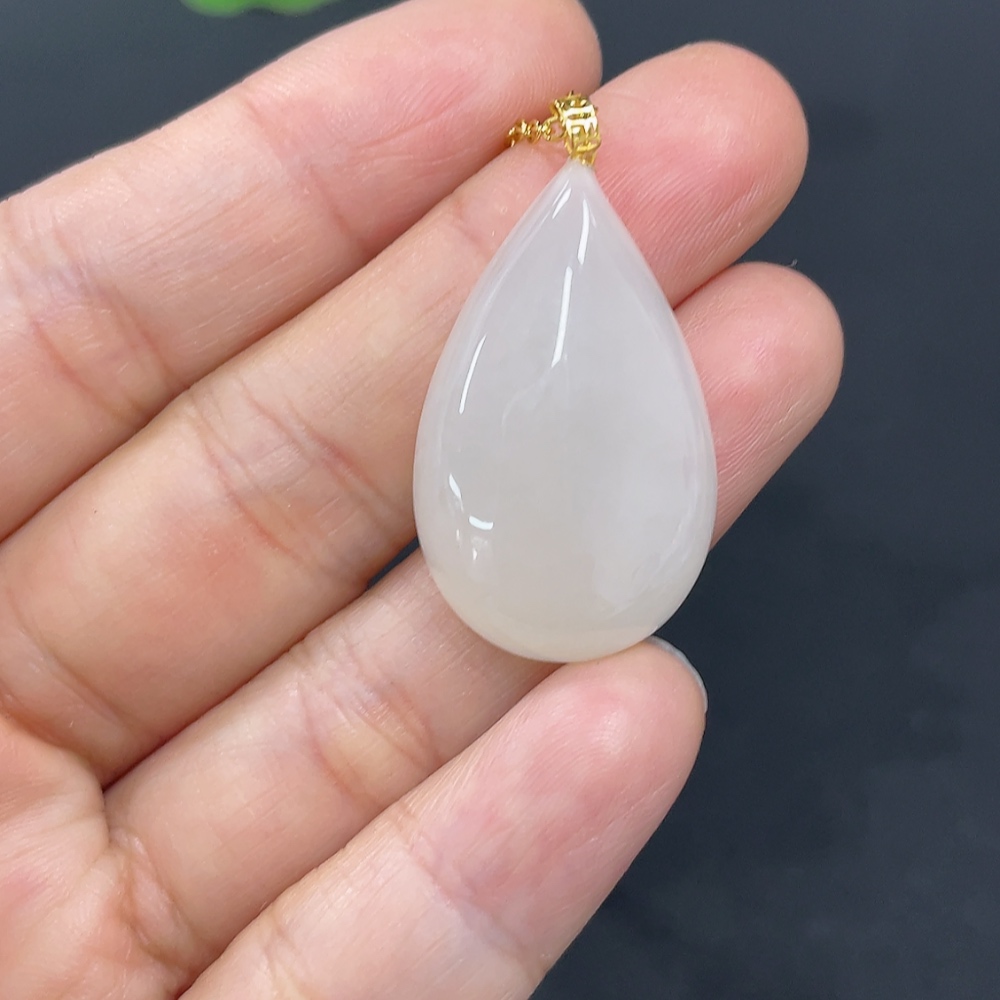 Hetian Jade Pendant, Water Drop, 18K Gold Clasp, Total Weight Approx. (chain not included) 5.1g