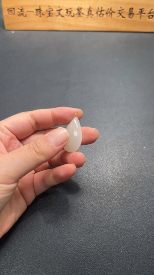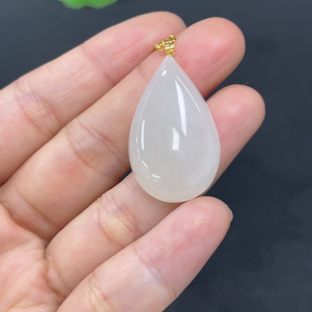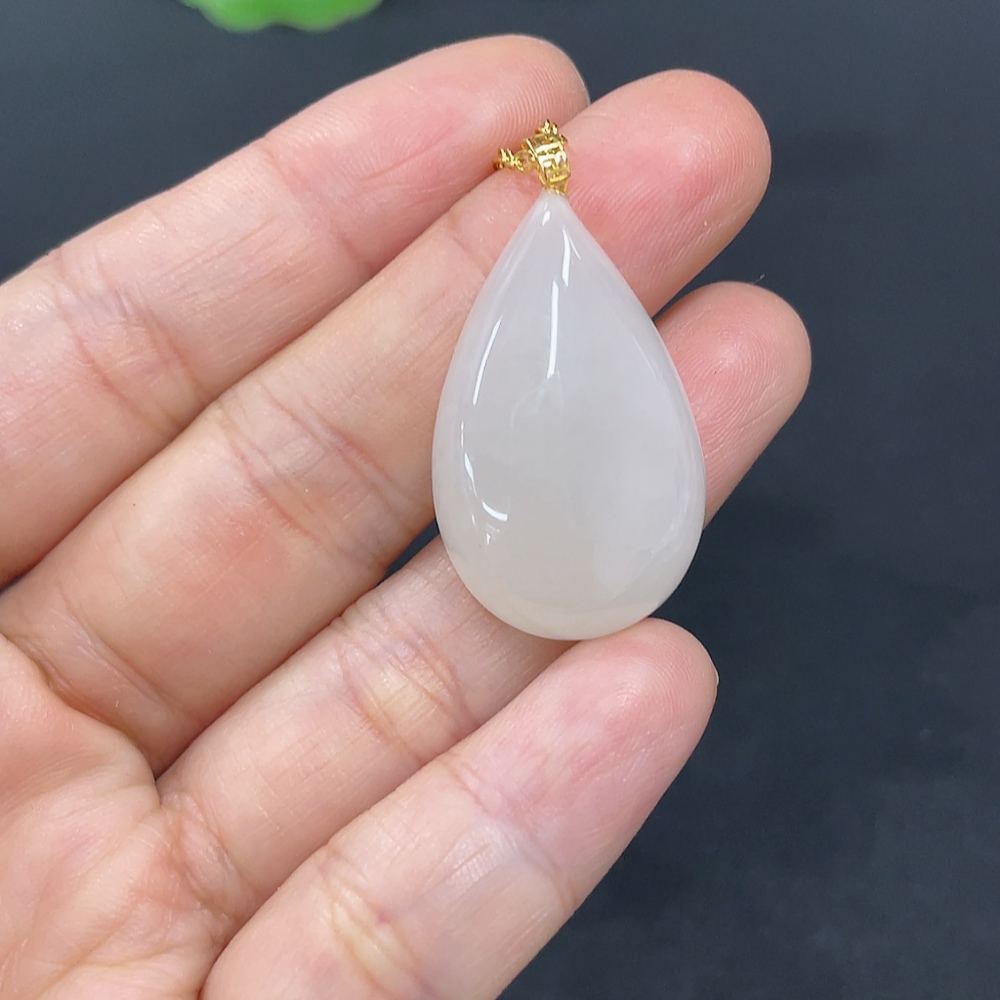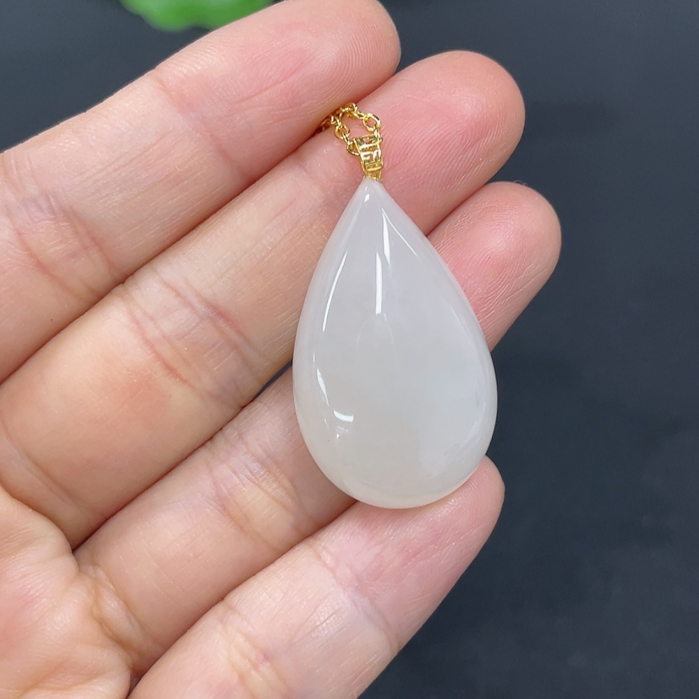 Hetian Jade Pendant, Water Drop, 18K Gold Clasp, Total Weight Approx. (chain not included) 5.1g