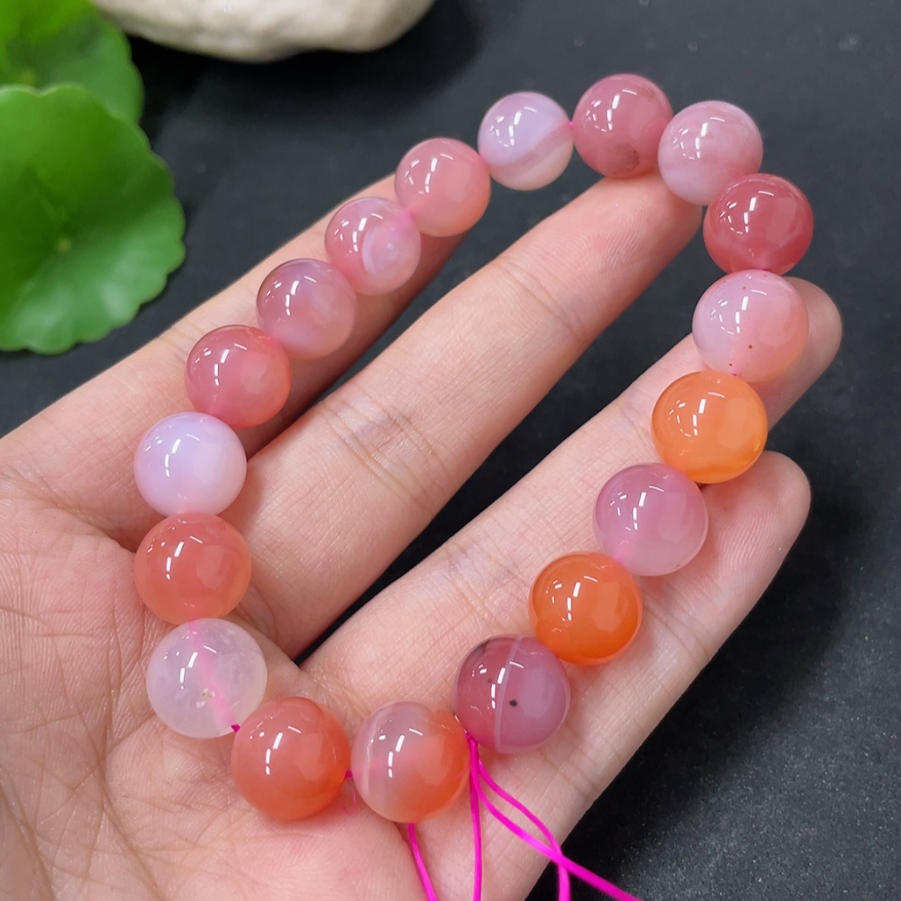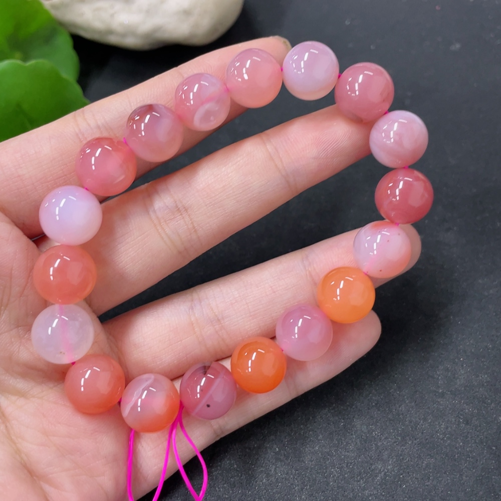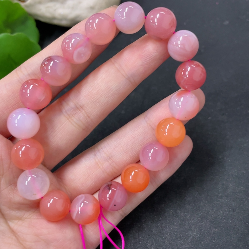 Yanyuan Agate Bracelet, approx. 11mm beads, total weight approx. 34.6g, contains other mineral components