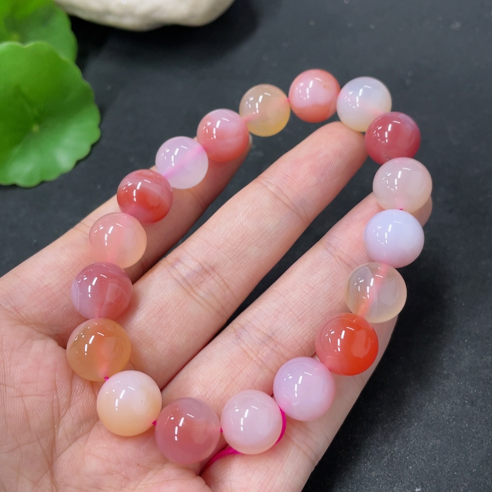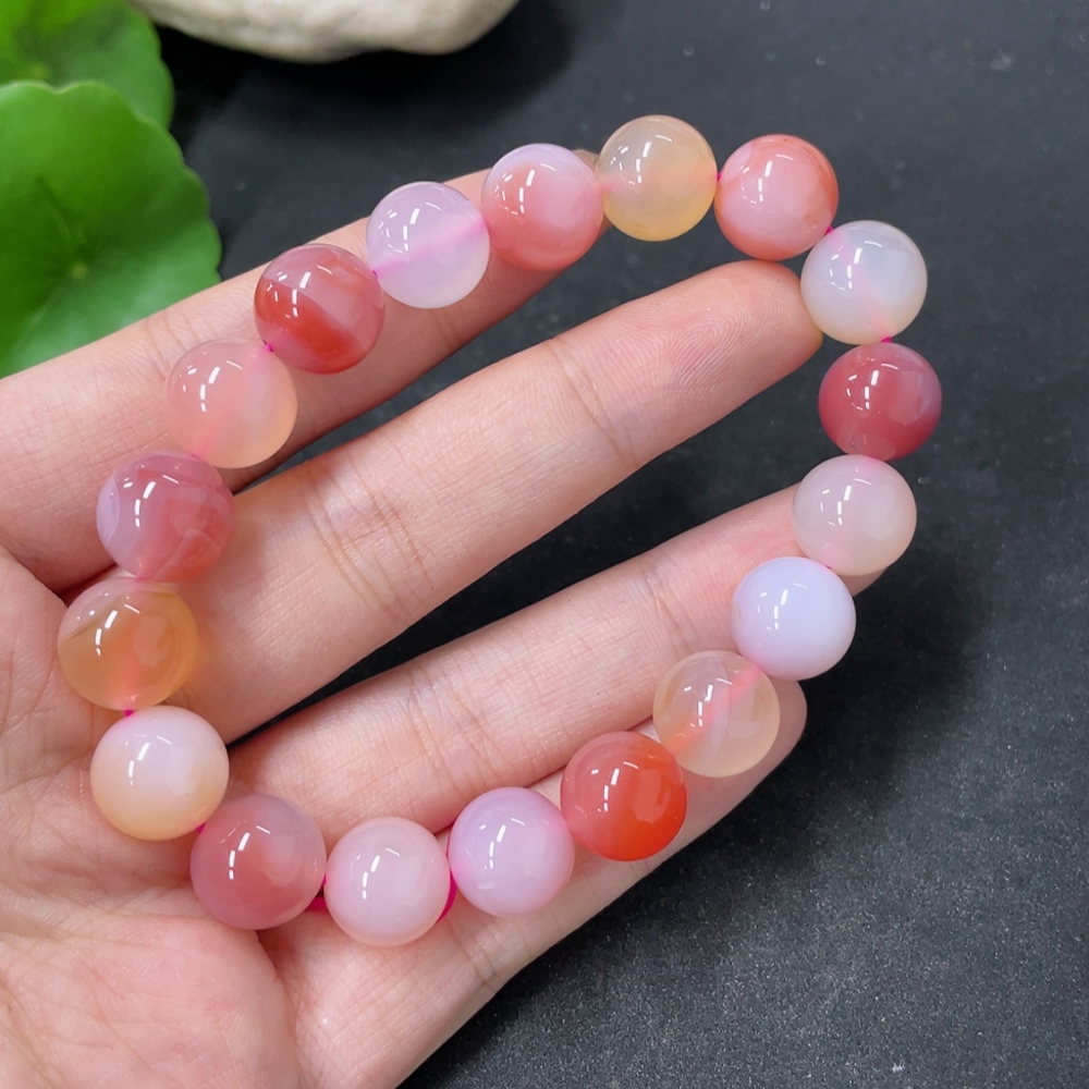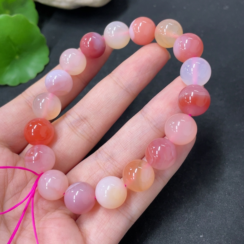 Yanyuan Agate Bracelet, approx. 11mm beads, total weight about 34.9g, contains other mineral components
