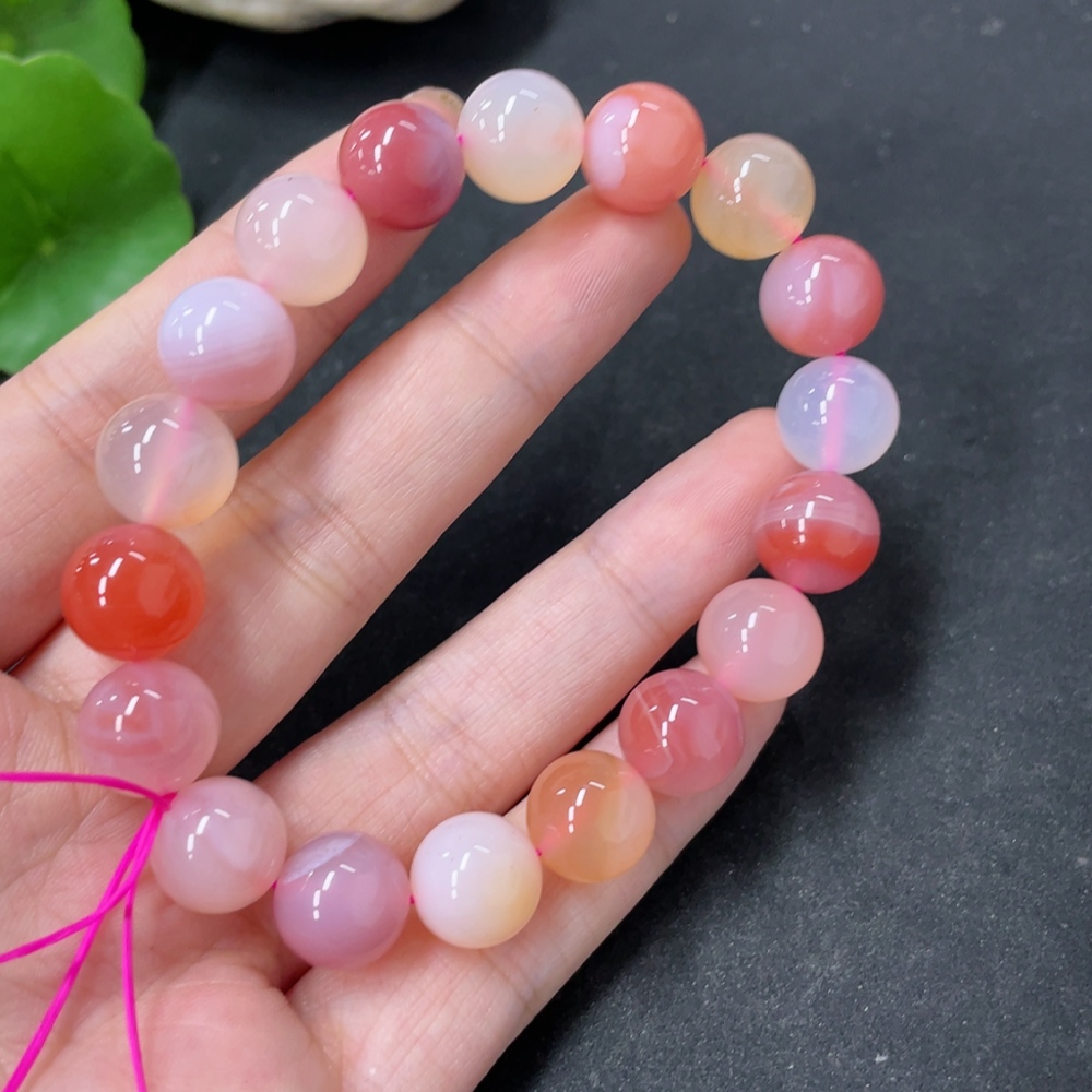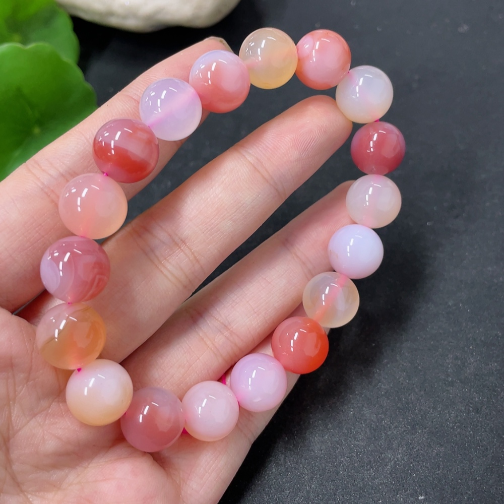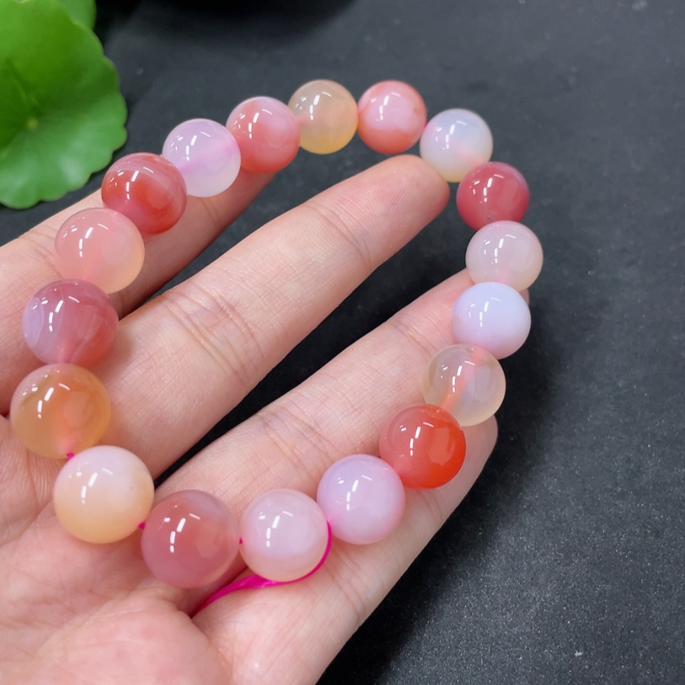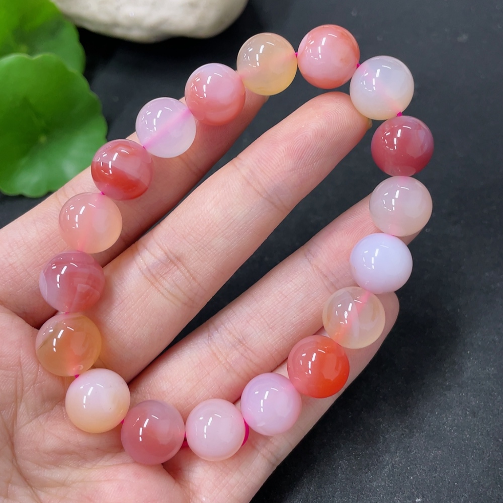 Yanyuan Agate Bracelet, approx. 11mm beads, total weight about 34.9g, contains other mineral components