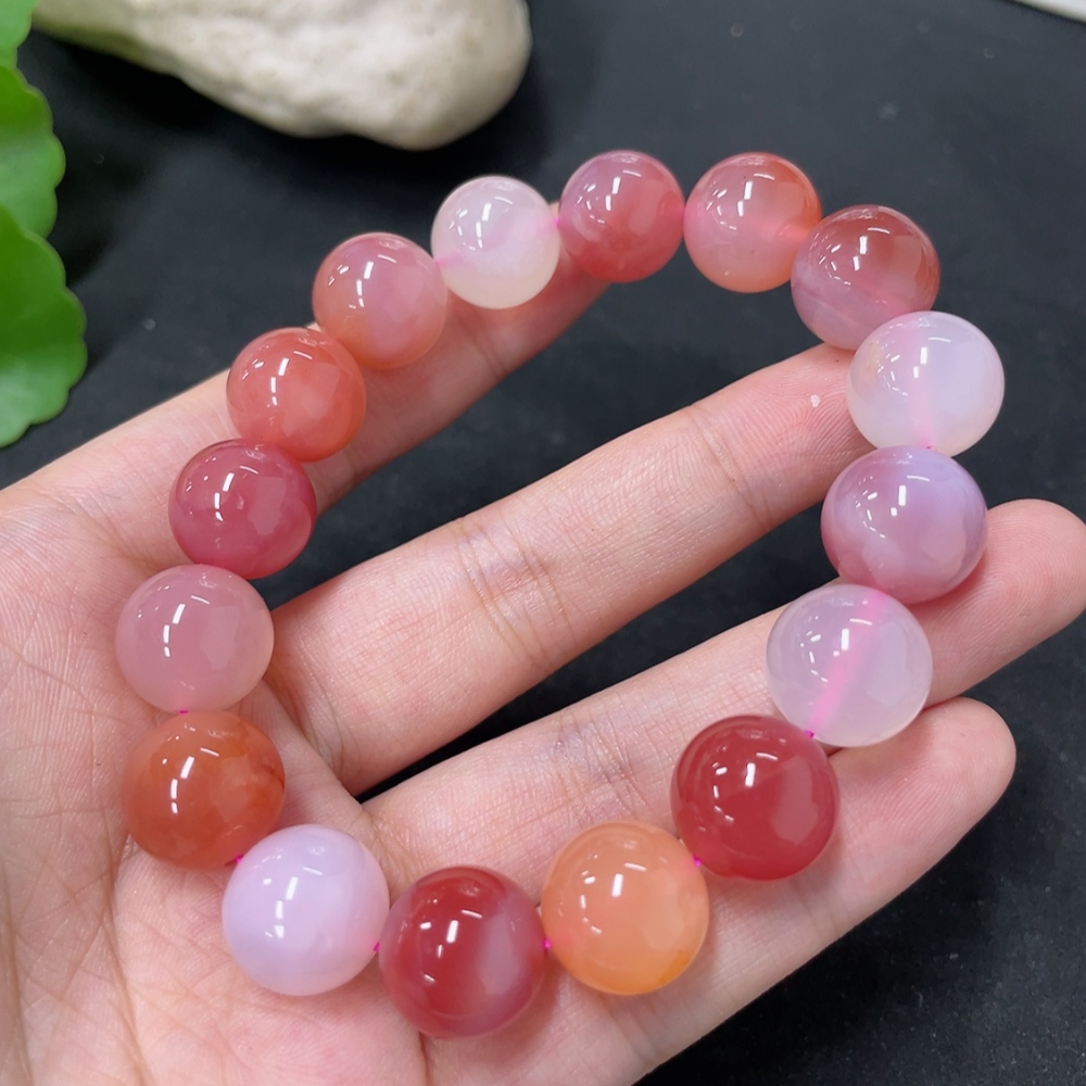 Yanyuan Agate Bracelet, approx. 12.8mm beads, total weight approx. 50.1g