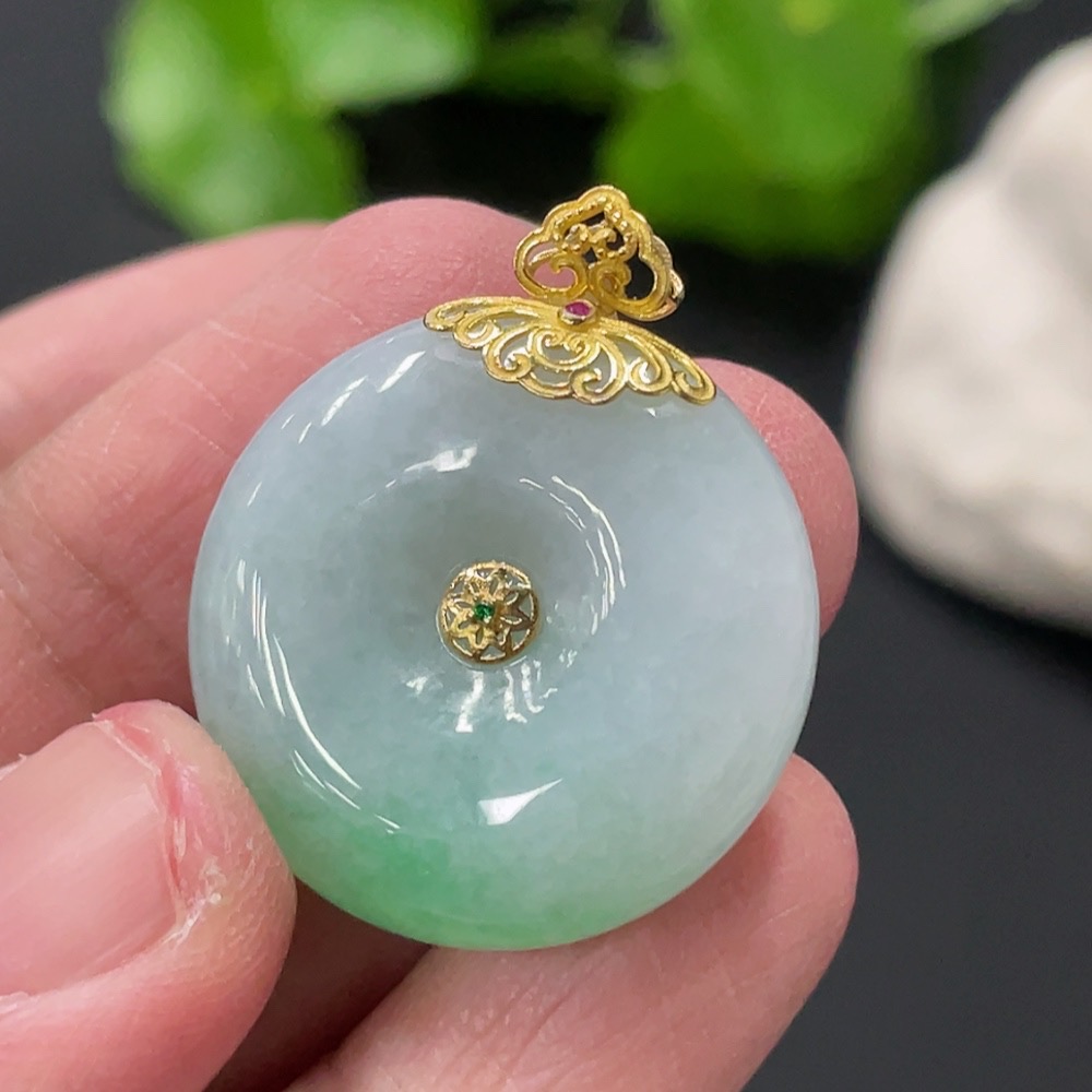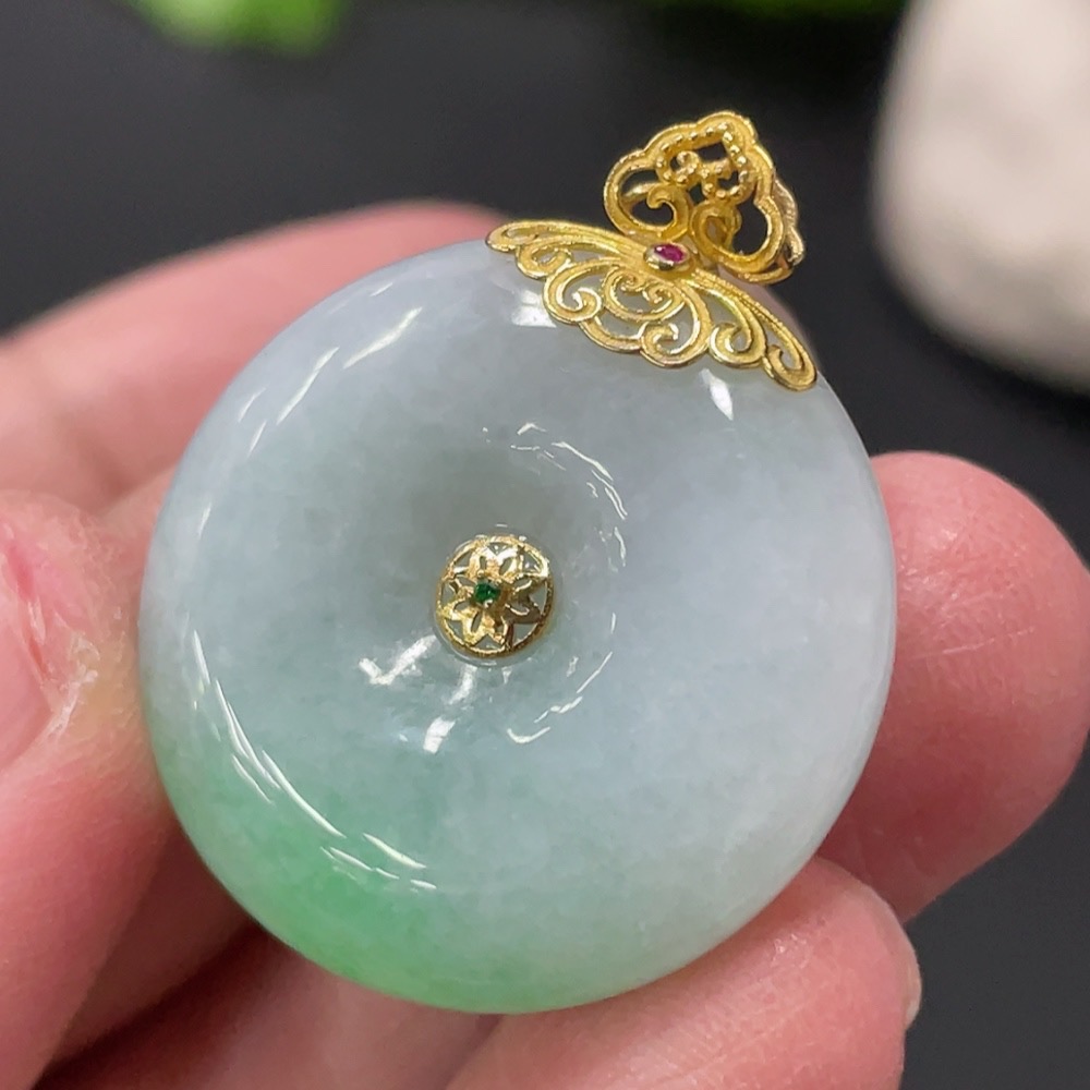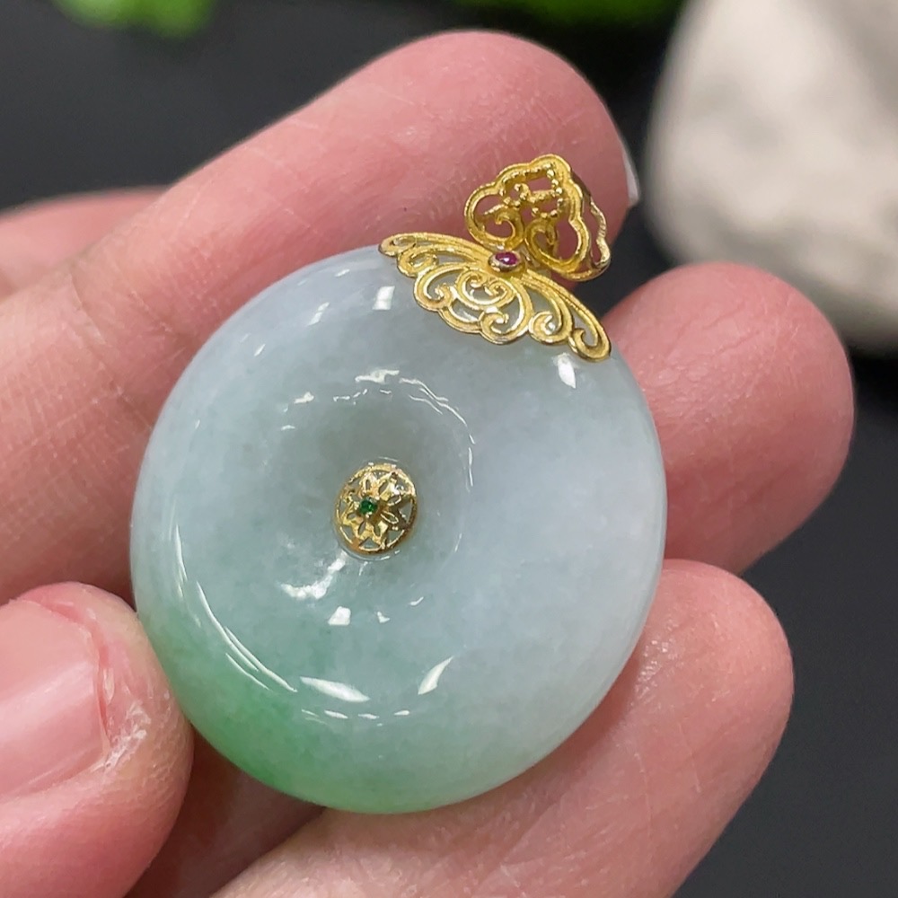 Jadeite Safety Buckle with 18K Gold Clasp, Total Weight Approx. 8.7g