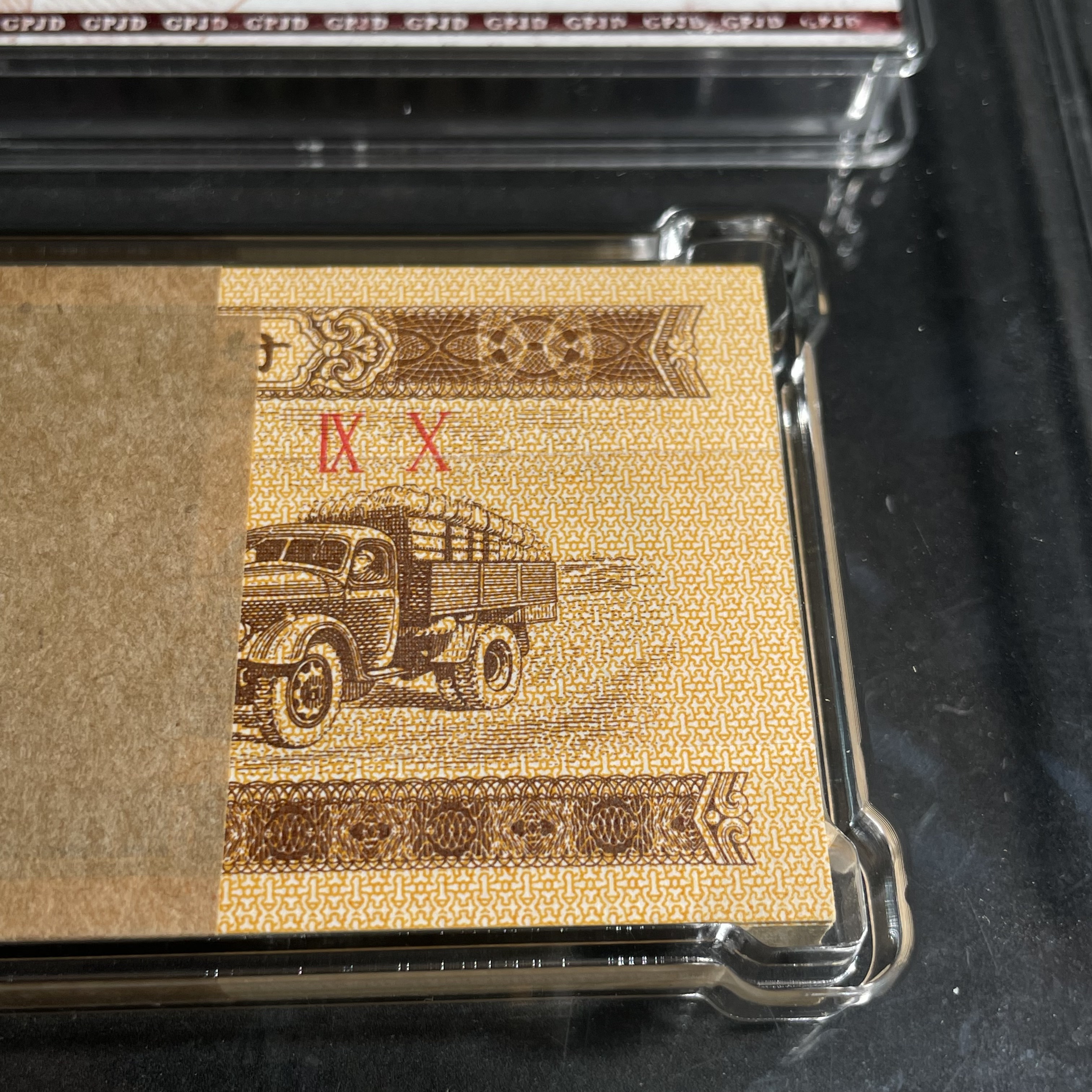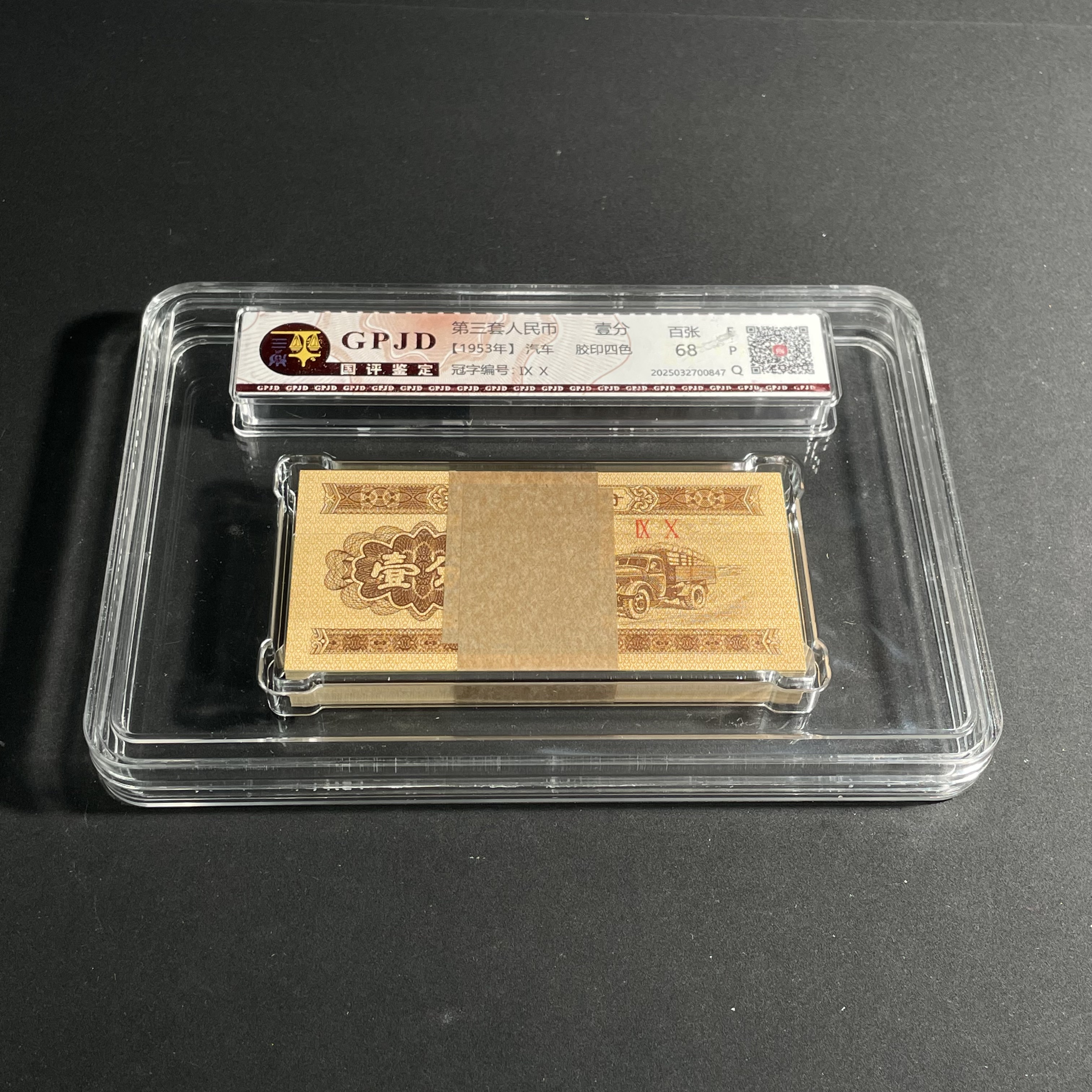 1953 One Fen Banknote with Automobile Design, Whole Bundle, Graded and Encapsulated, Uncirculated Condition, Well Preserved