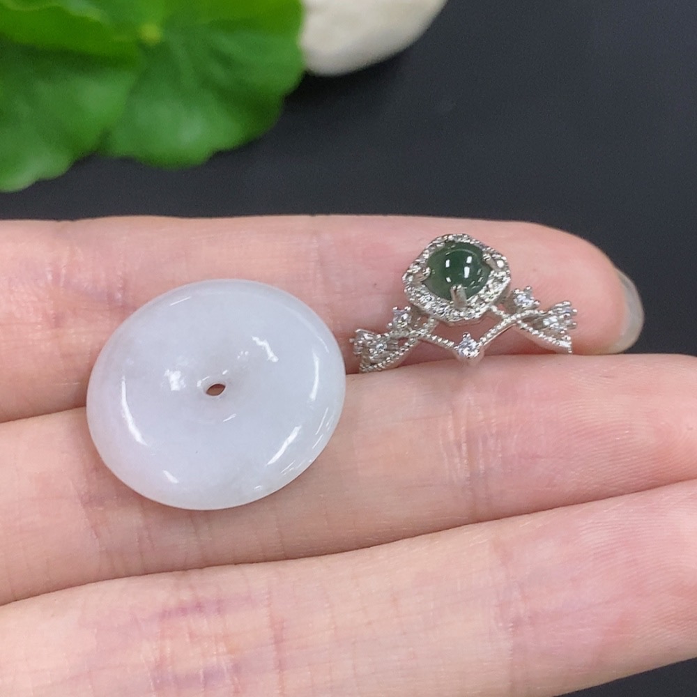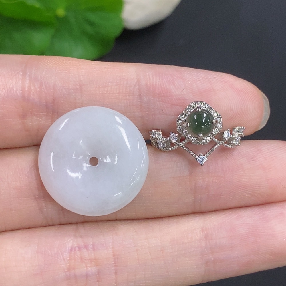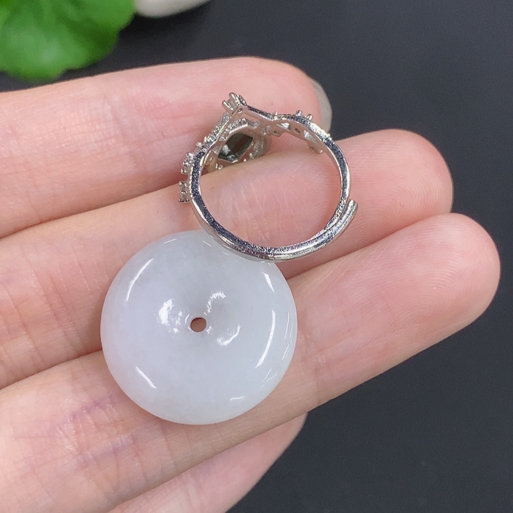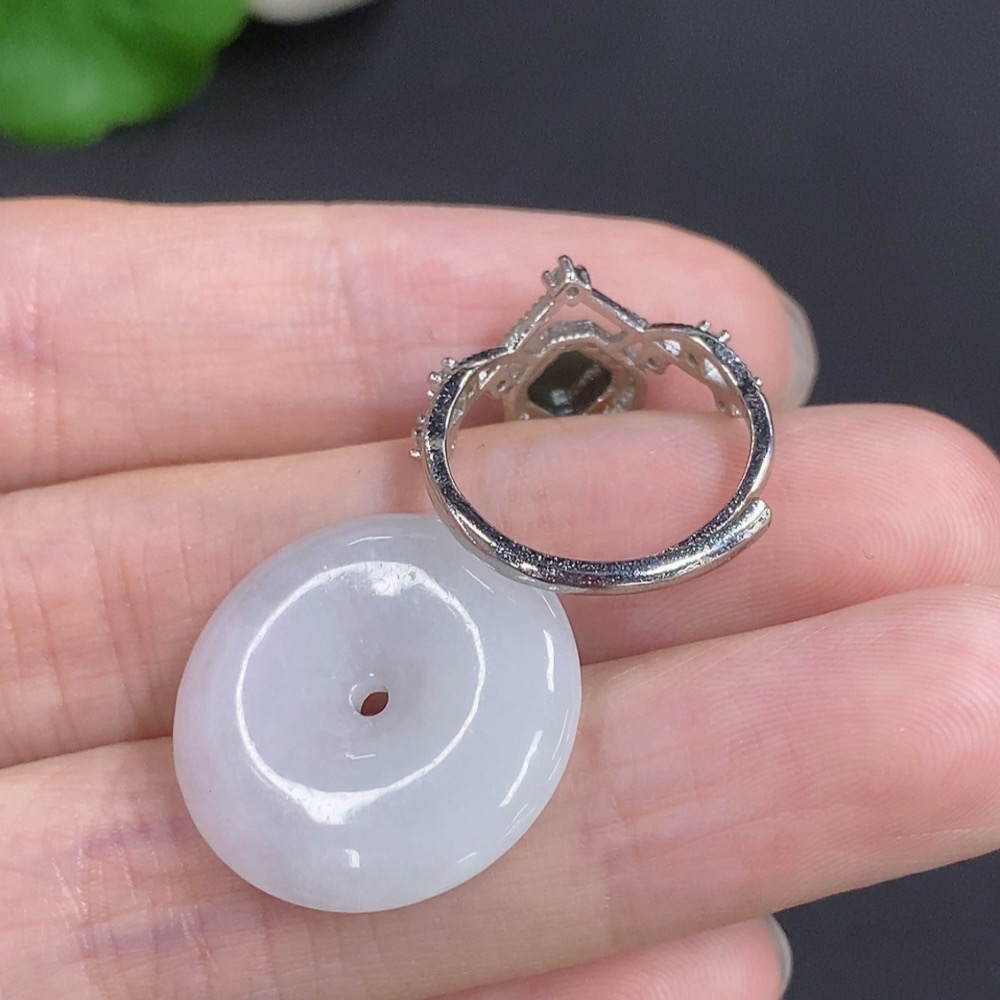 Jadeite Peace Buckle + Cabochon Ring Sell as a Lot Non-Gold Adjustable Size