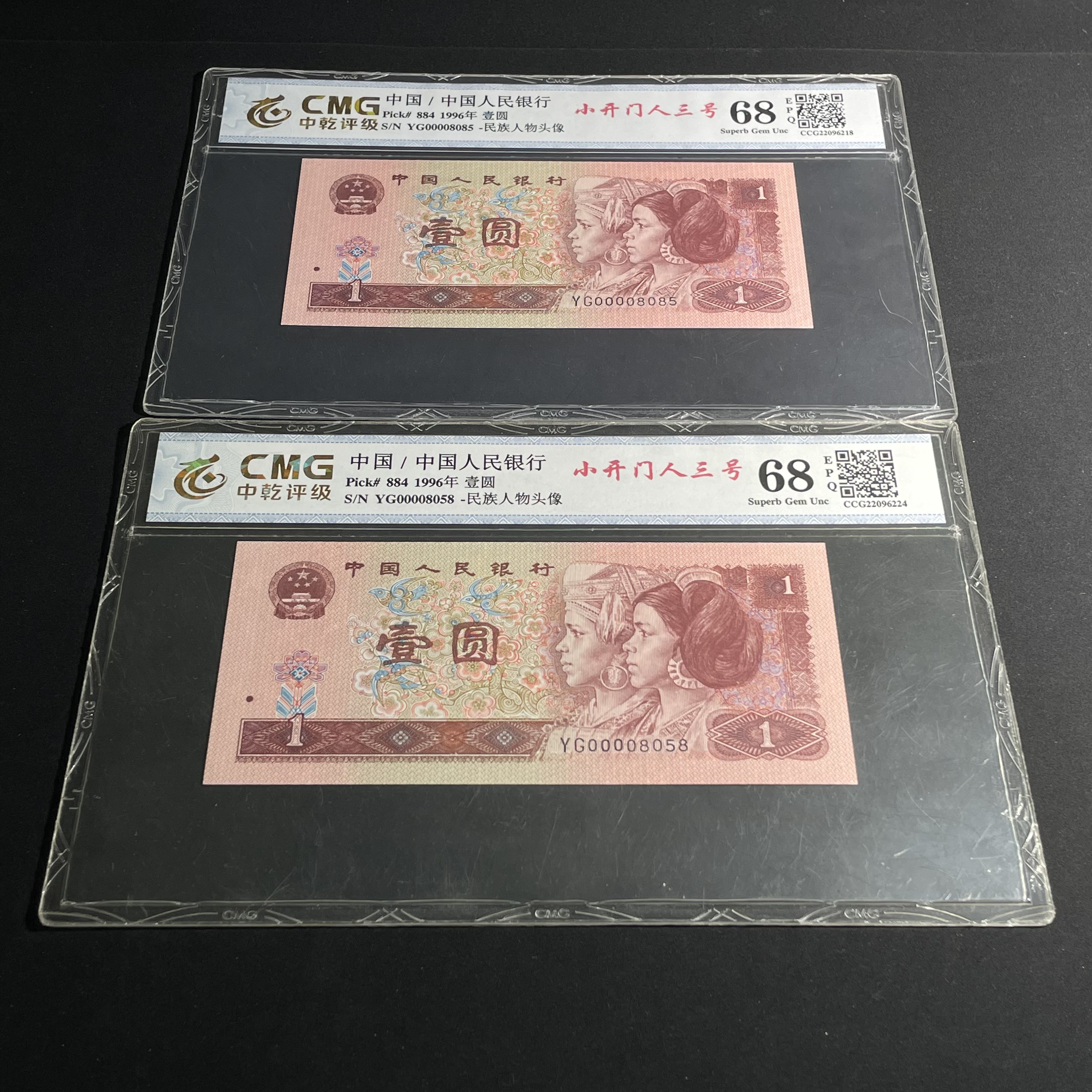 Two PMG-graded 961 "Three Commander" Gold Horse King banknotes from the Fourth Series RMB