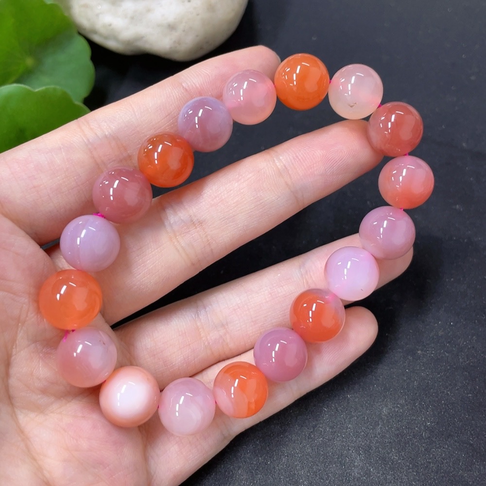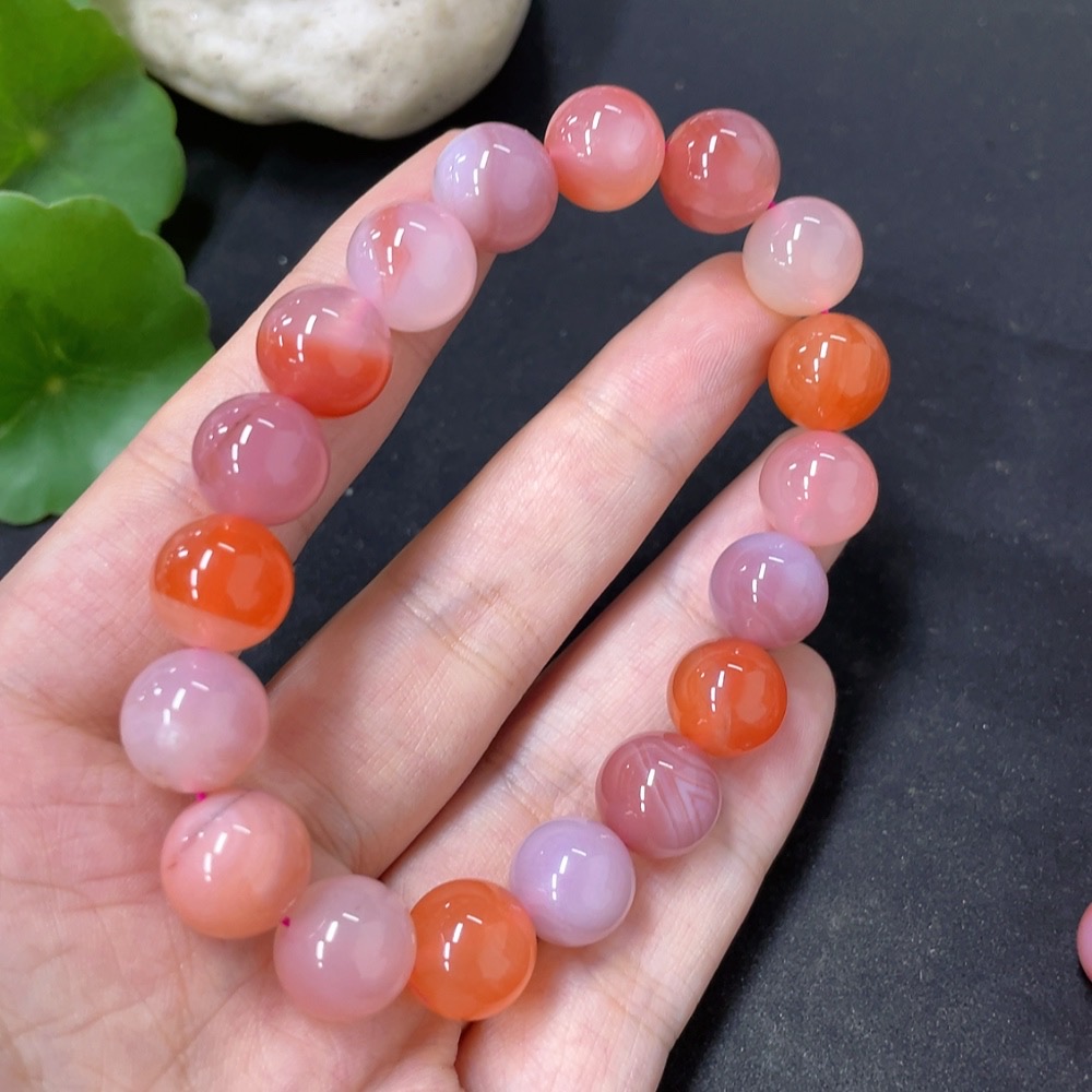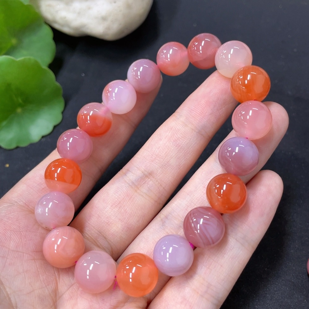 Salt Source Agate Bracelet with Visible Organic Matter, Approximately 11.1mm, Total Weight About 34.6g