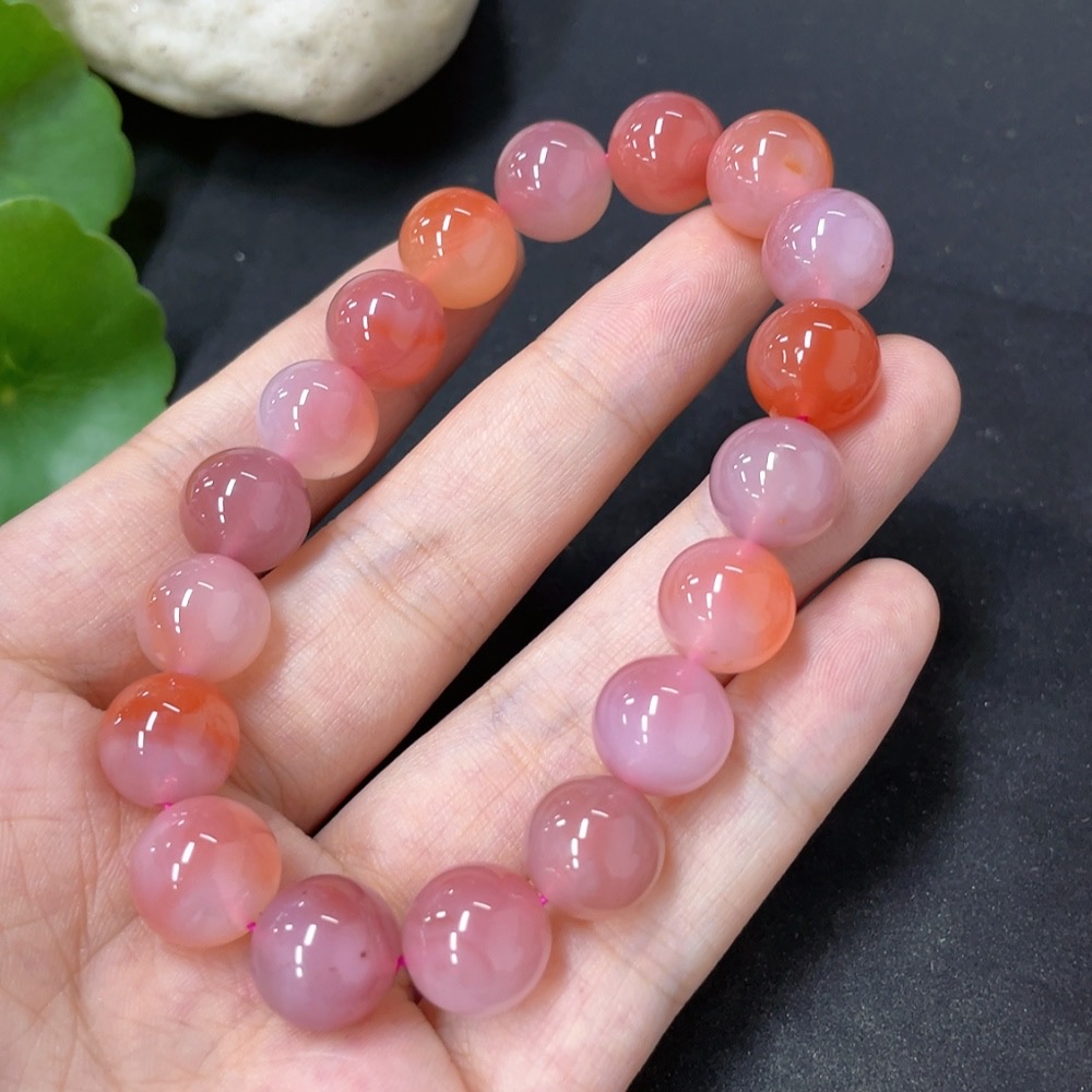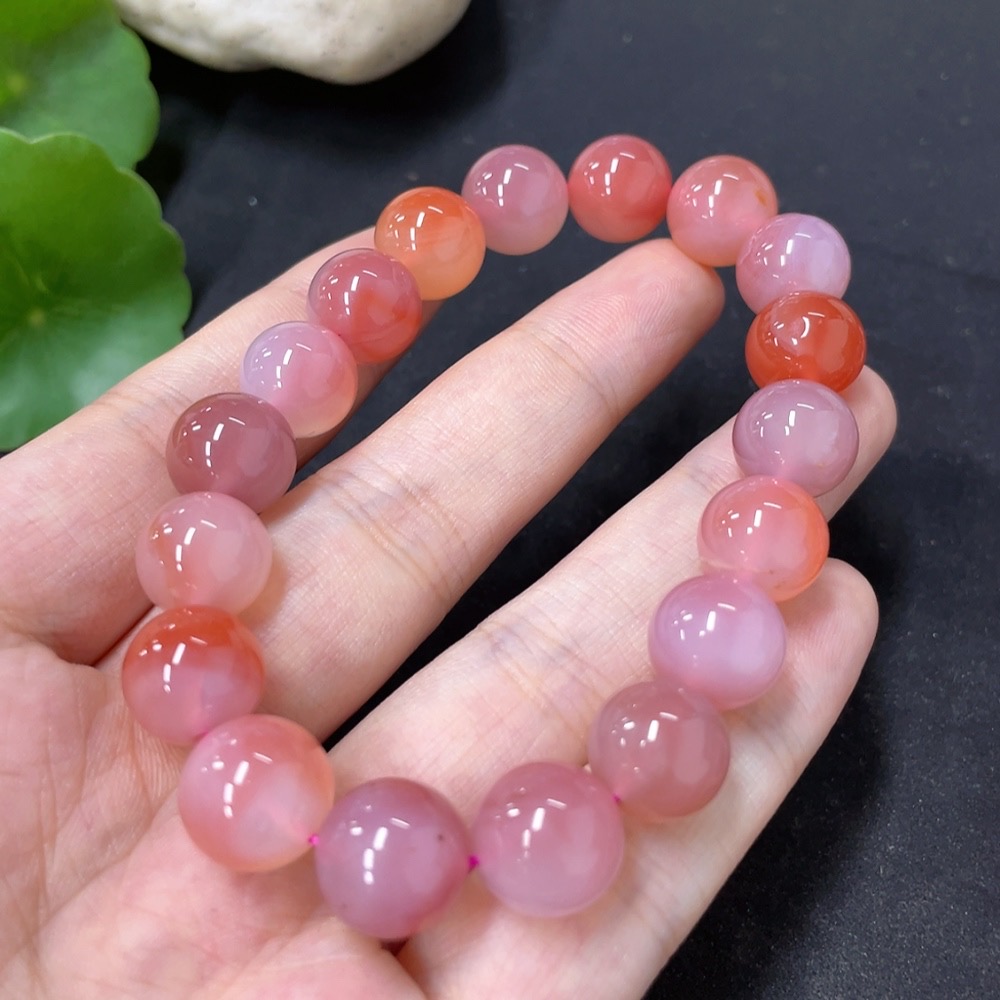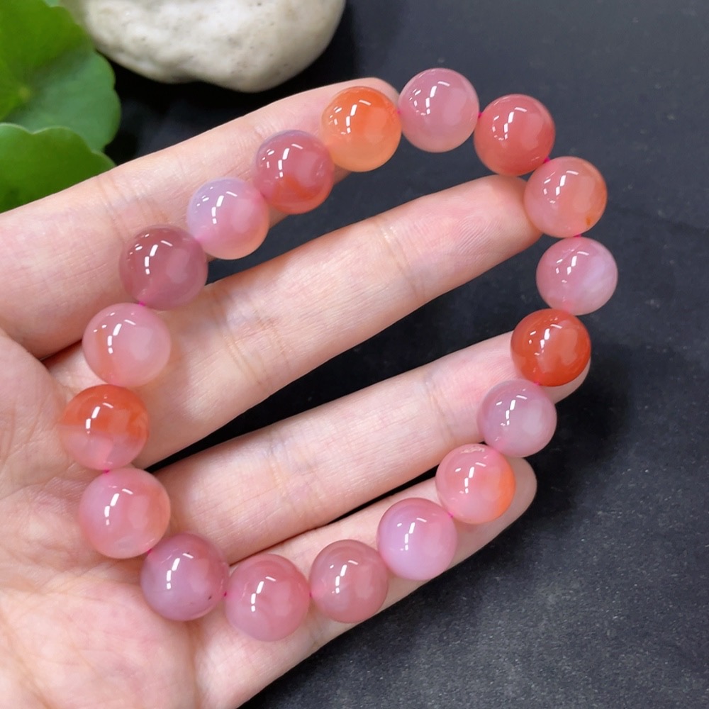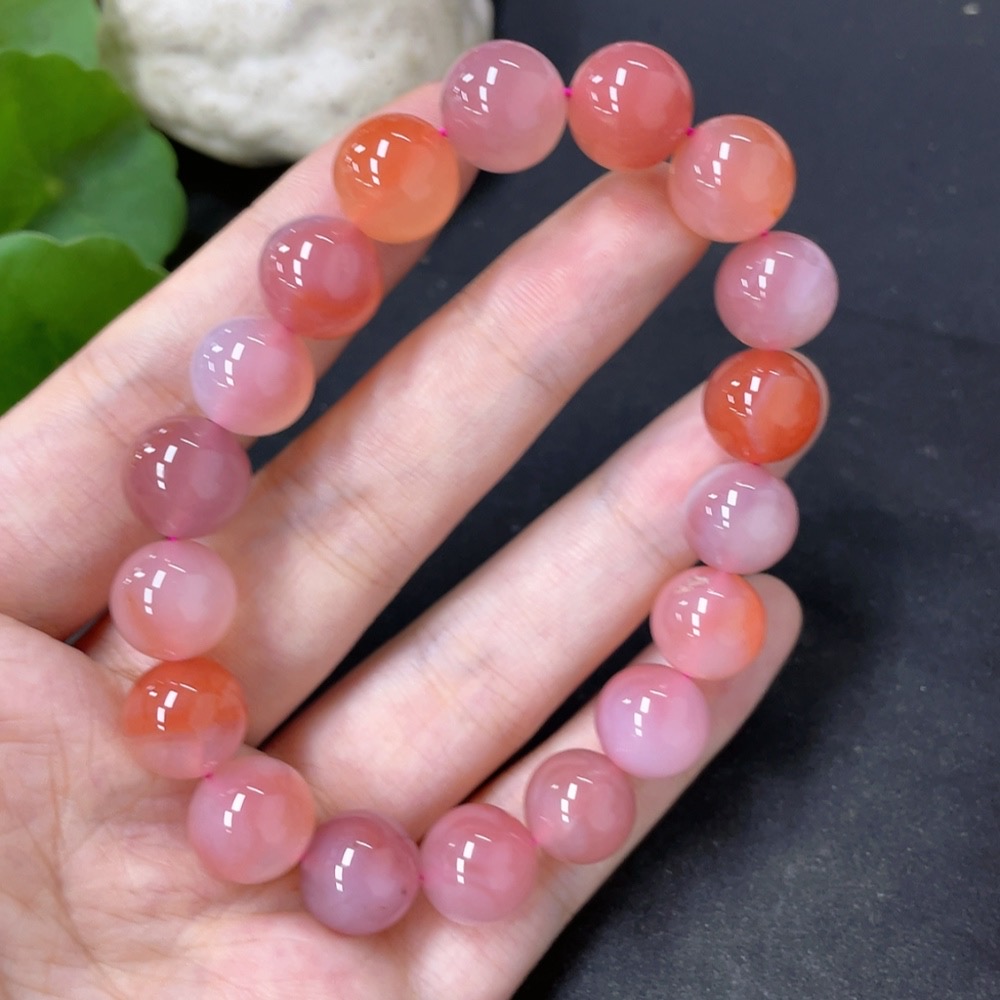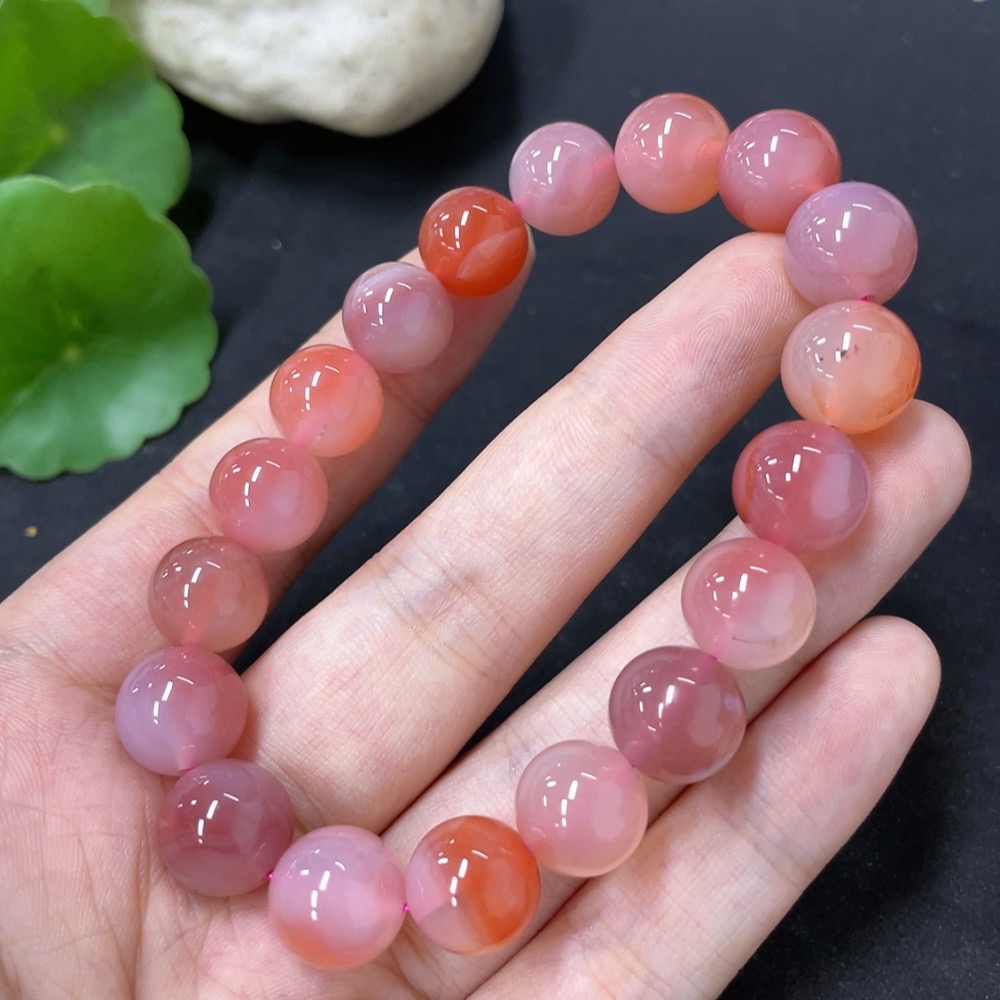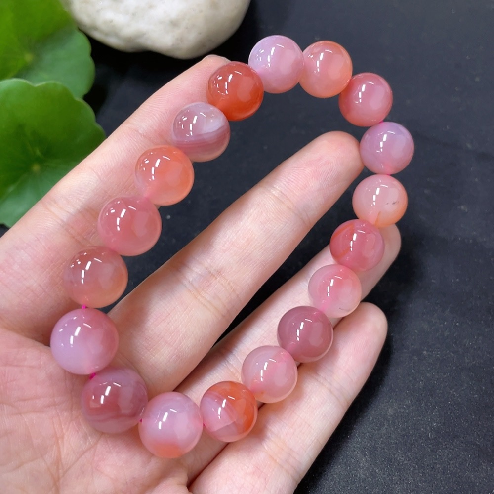 Salt Source Agate Bracelet with Visible Organic Matter, Approx. 10.7mm Beads, Total Weight About 34.3g