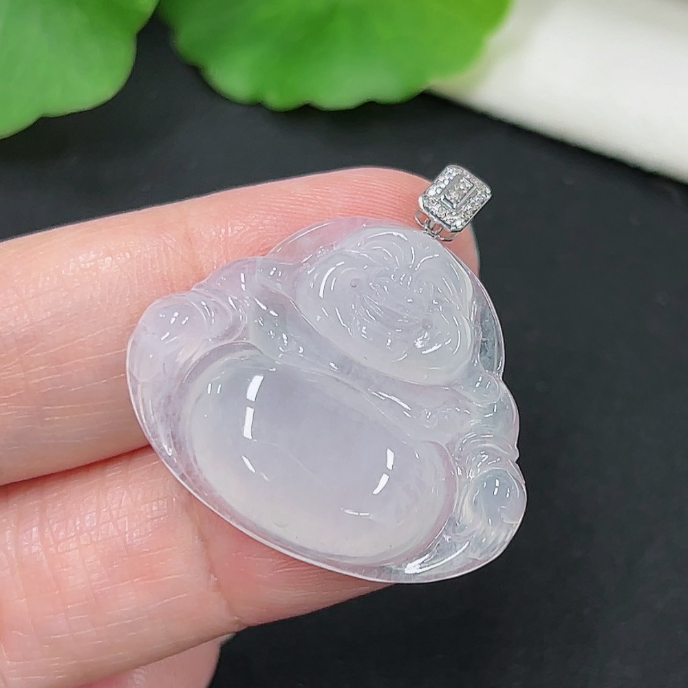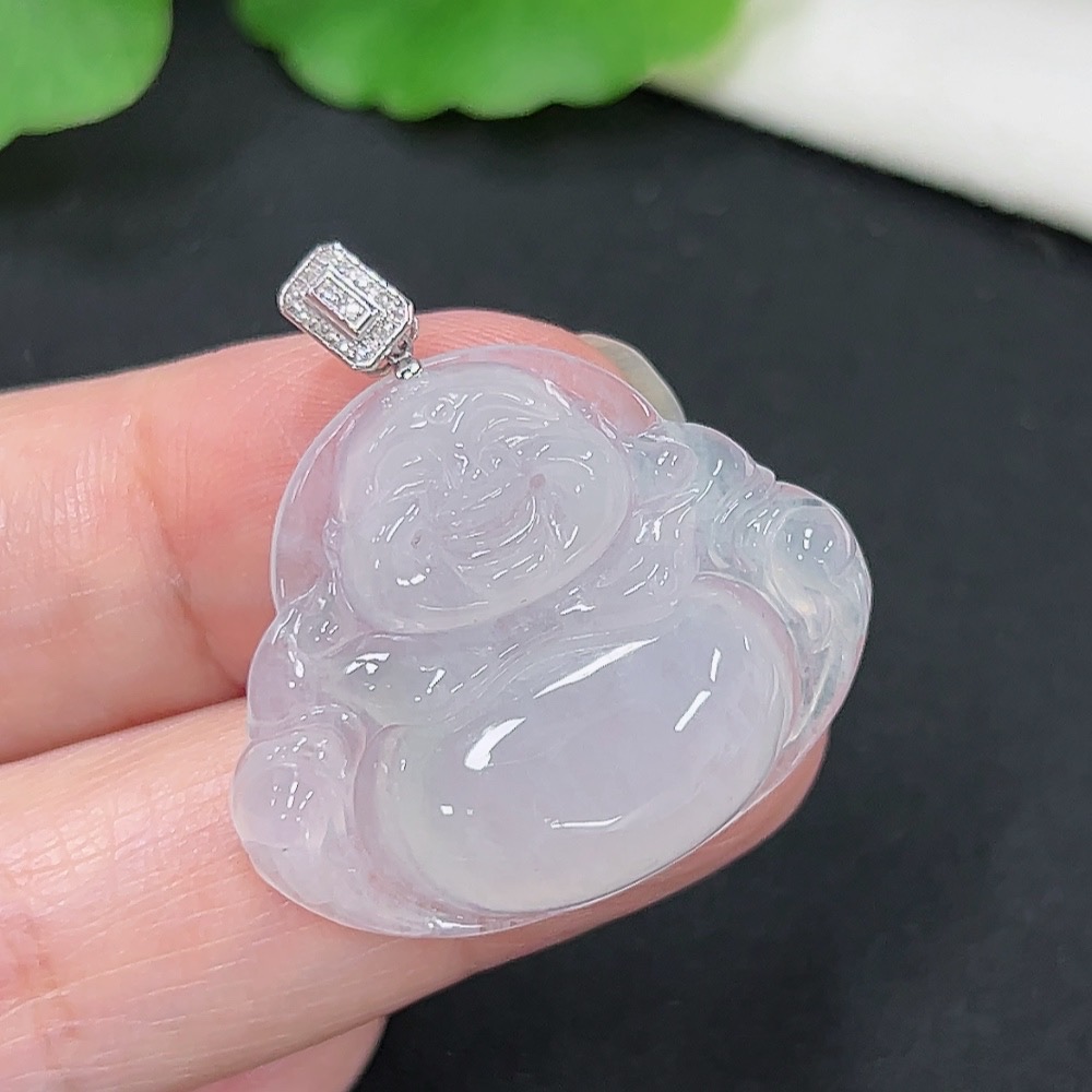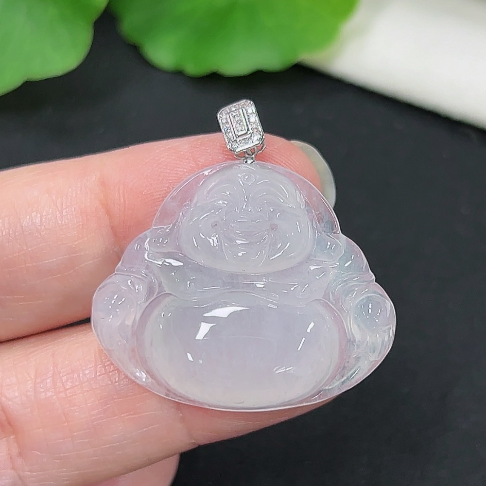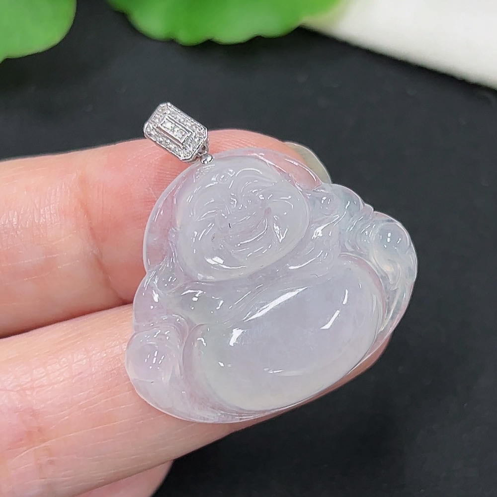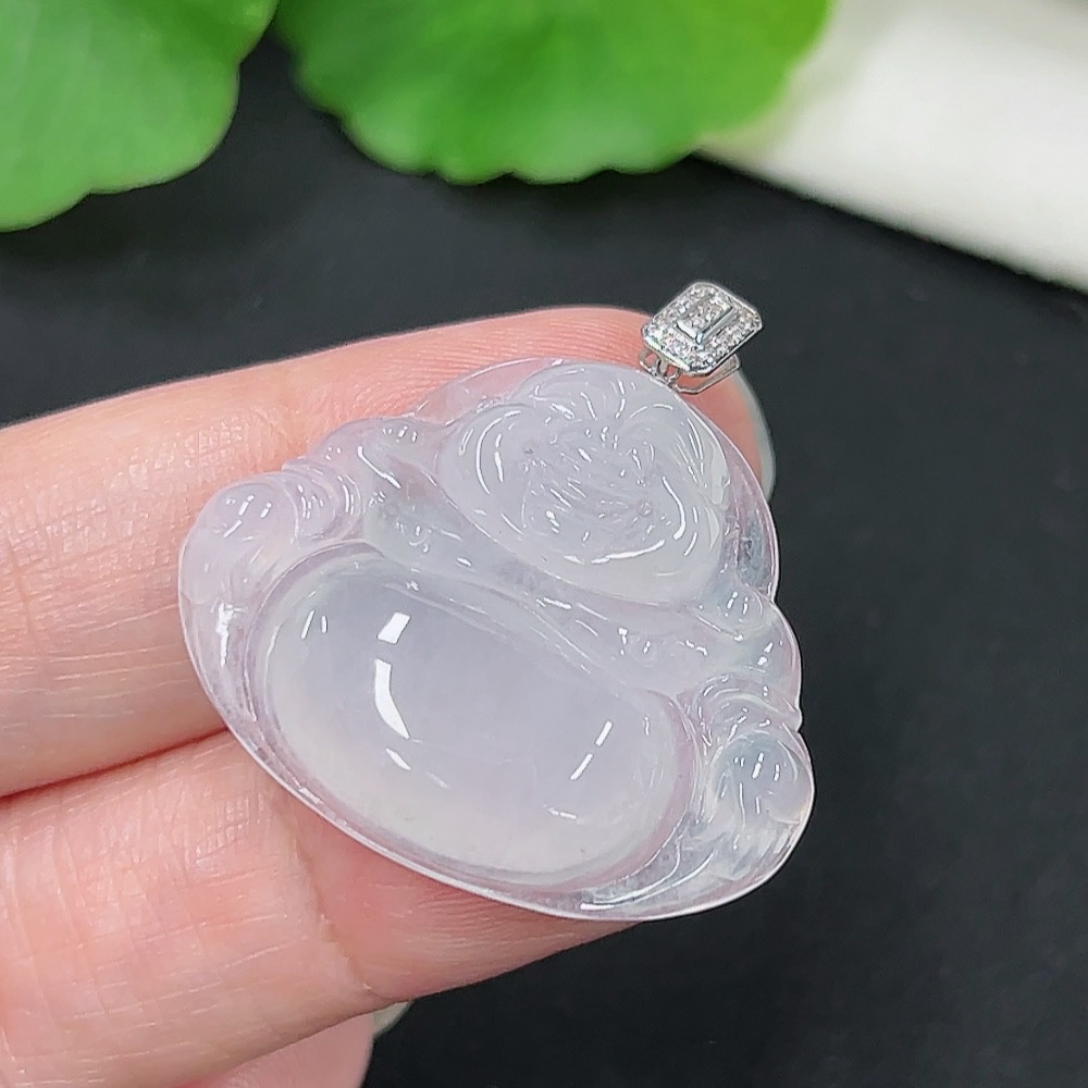 Jadeite Buddha Pendant, 18K Gold with Diamond Accents, Total Weight Approximately 6.16g