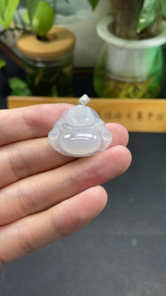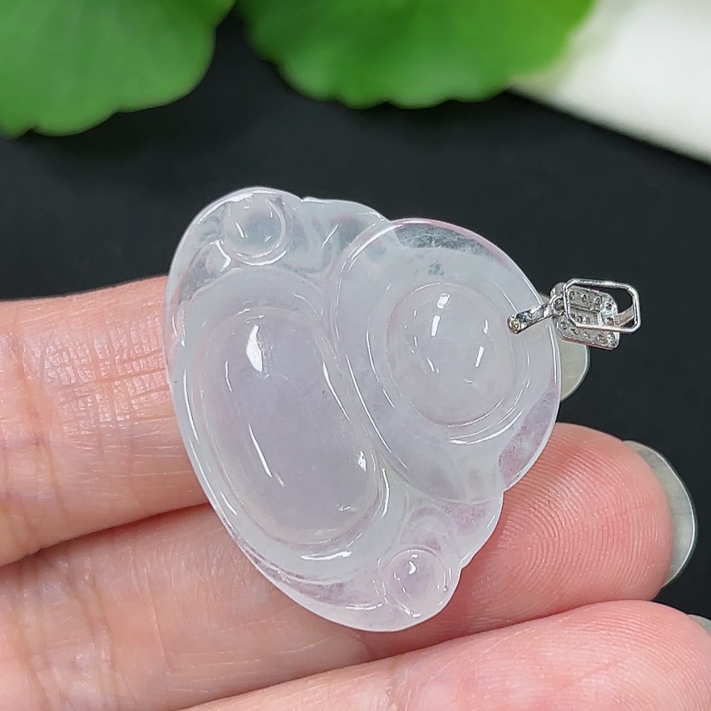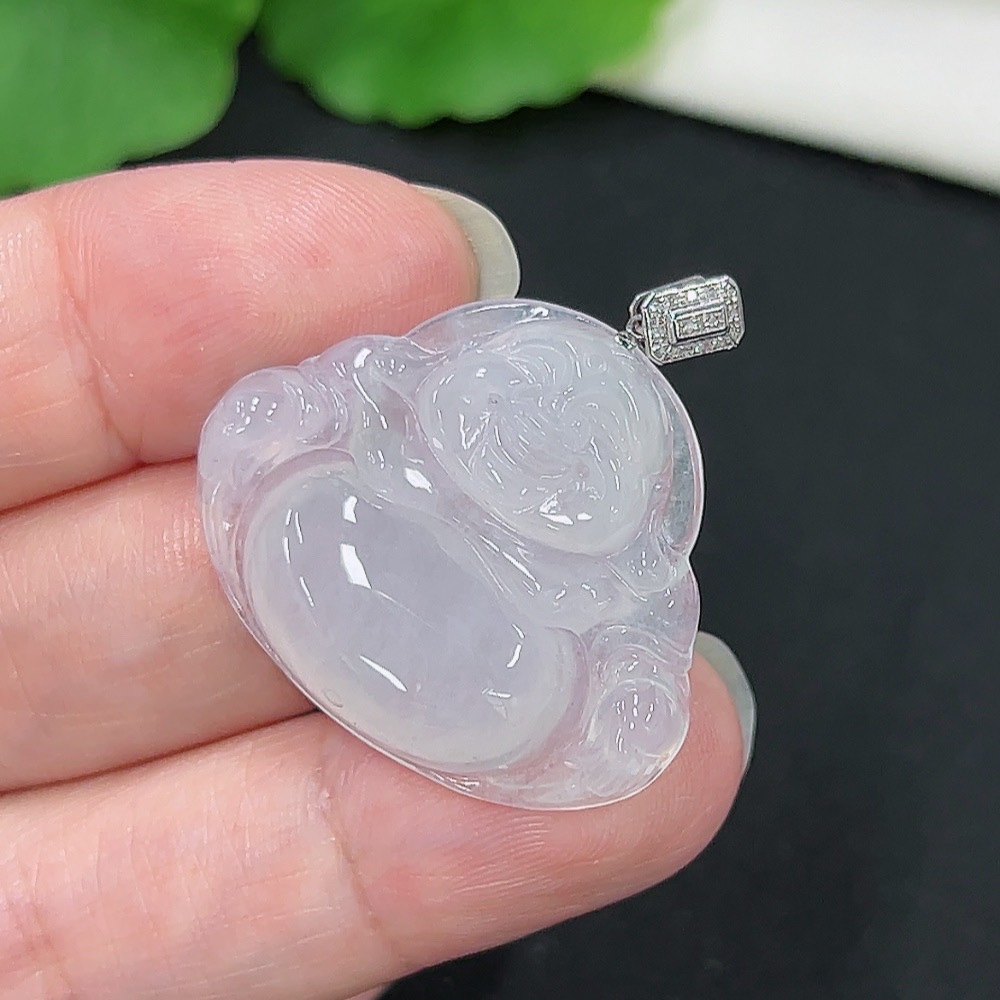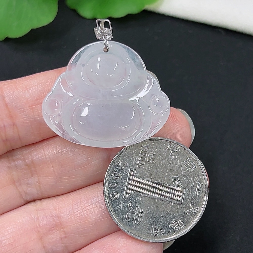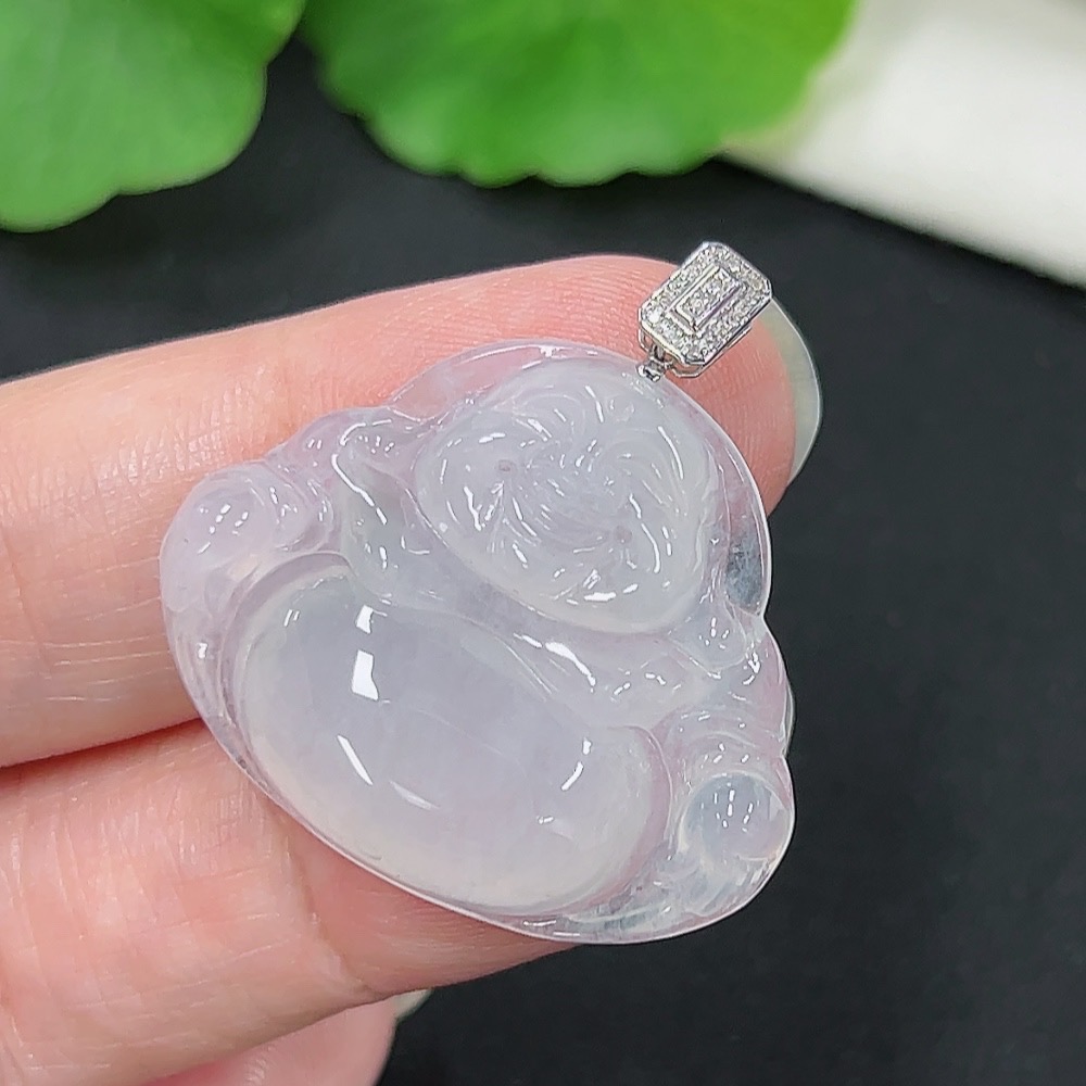 Jadeite Buddha Pendant, 18K Gold with Diamond Accents, Total Weight Approximately 6.16g