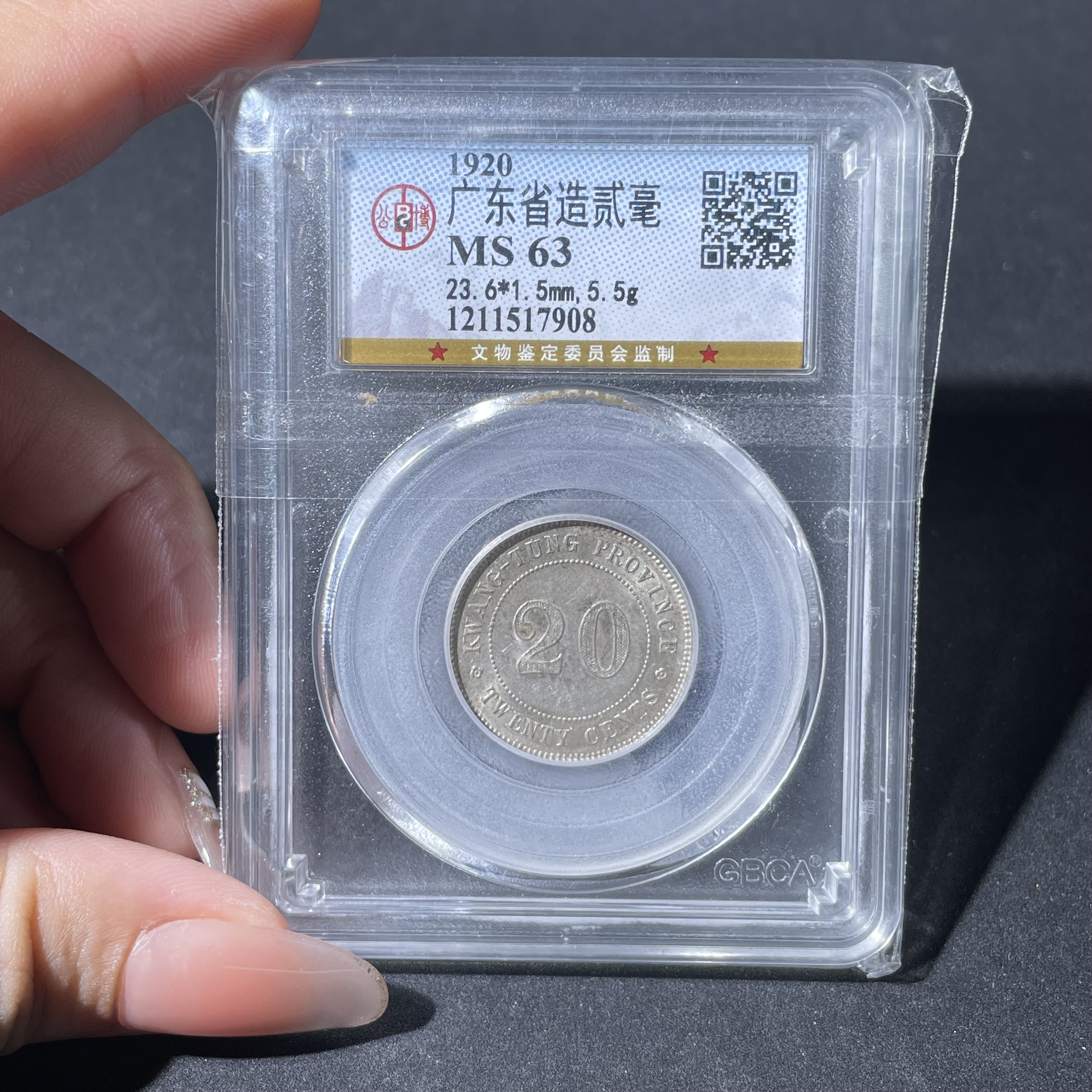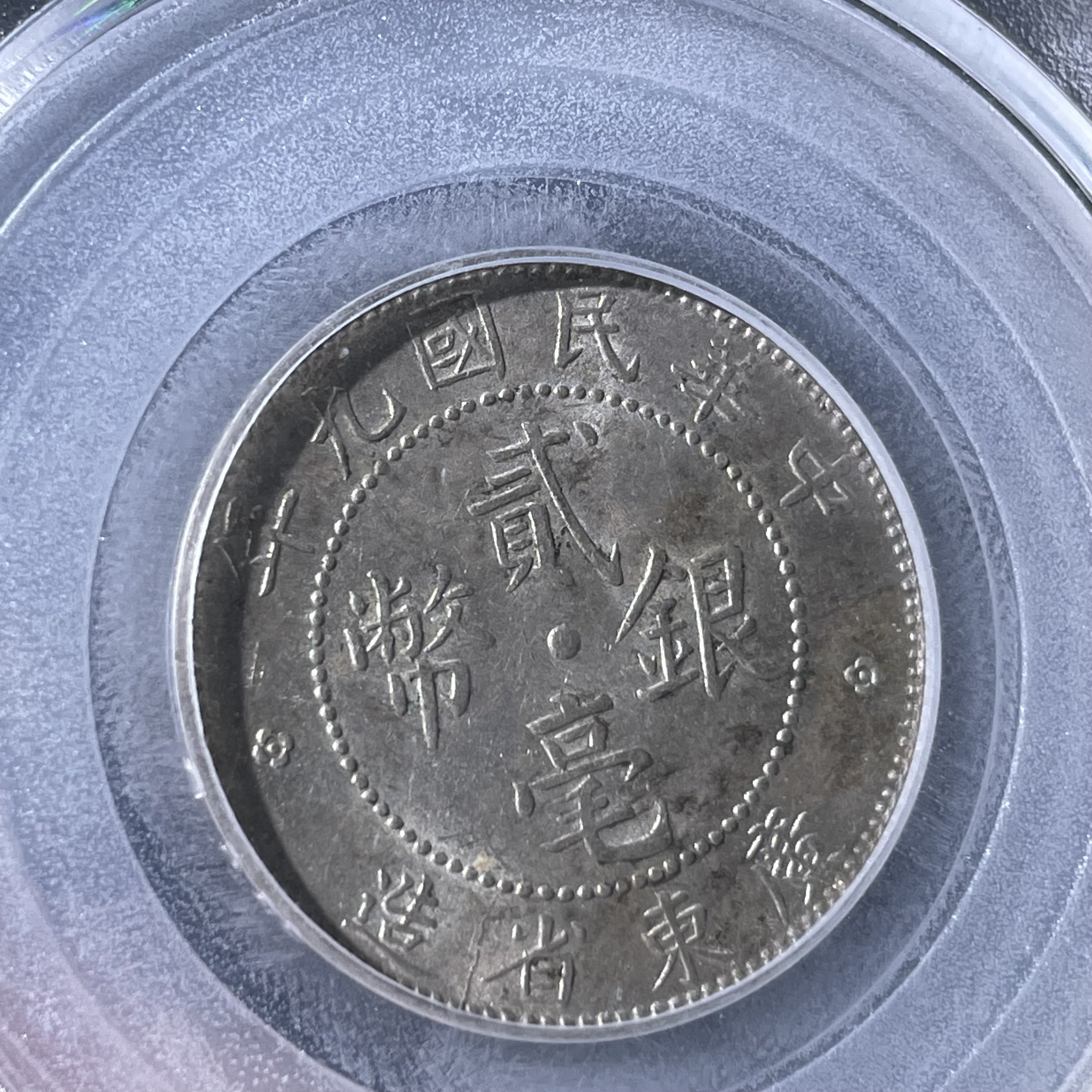 2 Jiao Silver Coin Struck in Guangdong Province in the 9th Year of the Republic of China