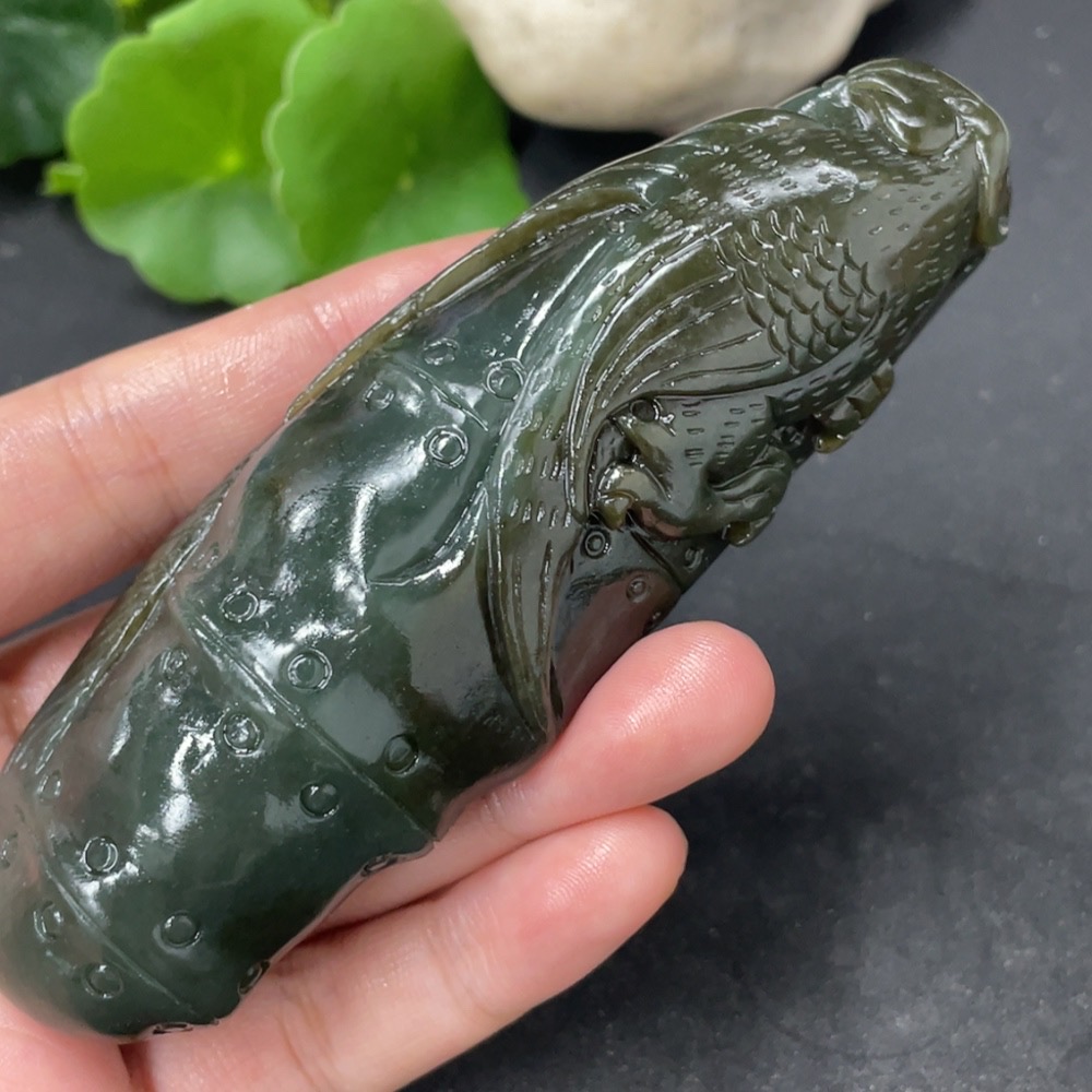 Hetian Jade Handheld Carving Bamboo Joint Total Weight Approx. 182.7g