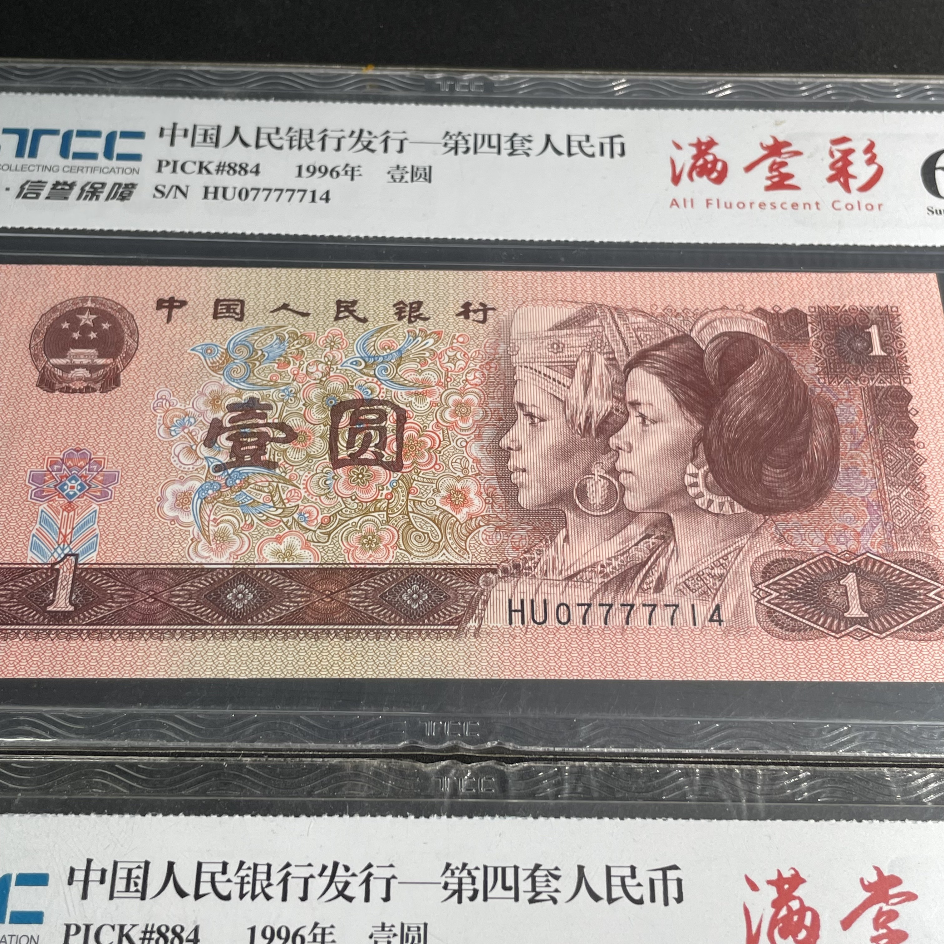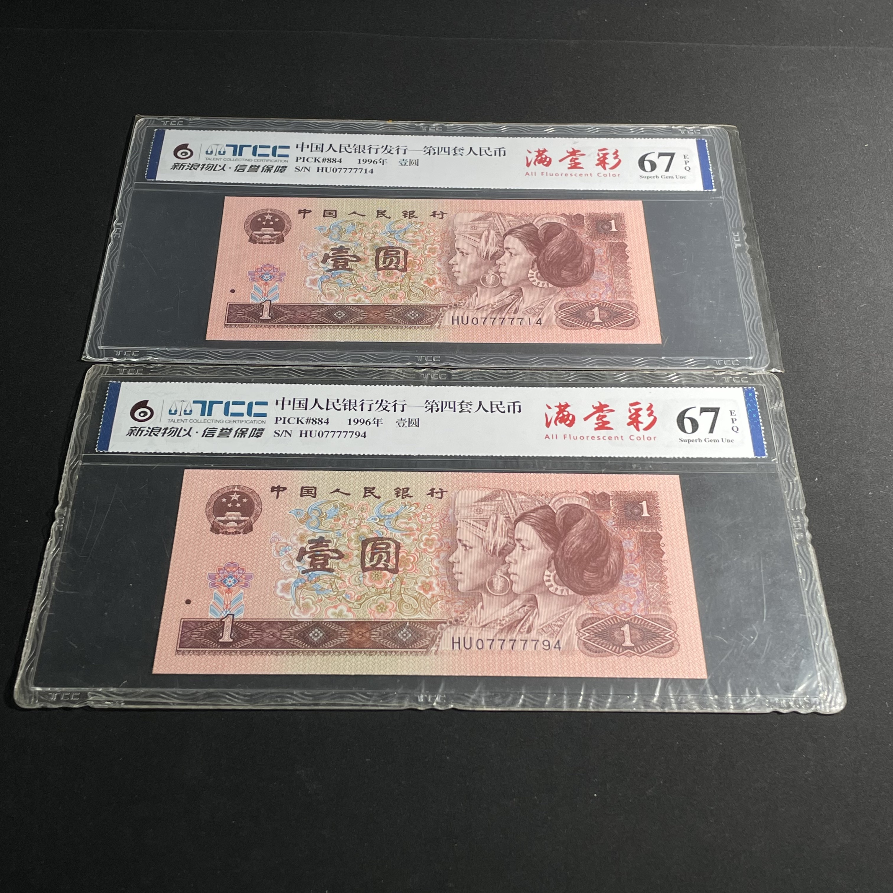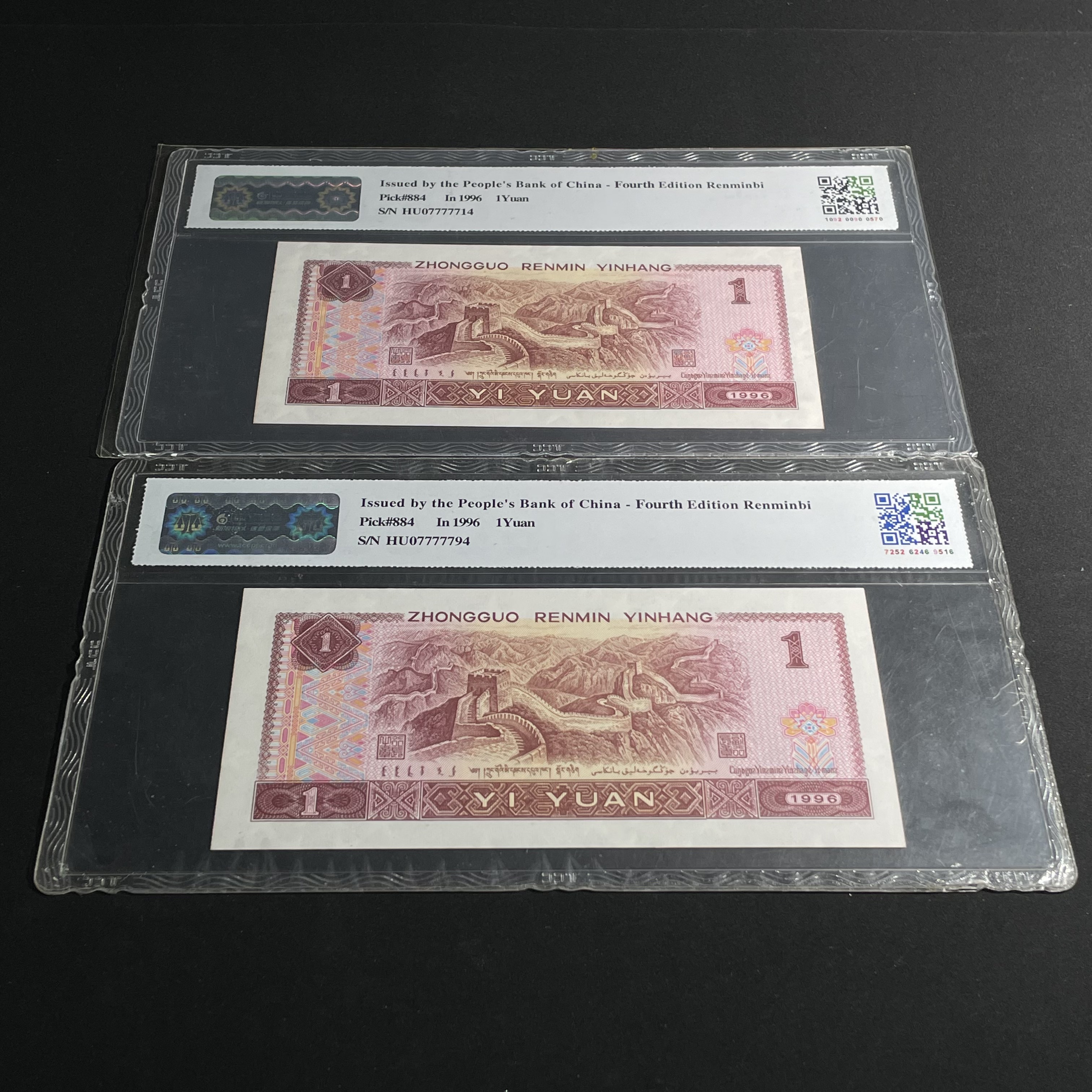 Two 1996 Edition 1-Yuan Banknotes with Tiger Pattern and Fancy Serial Numbers